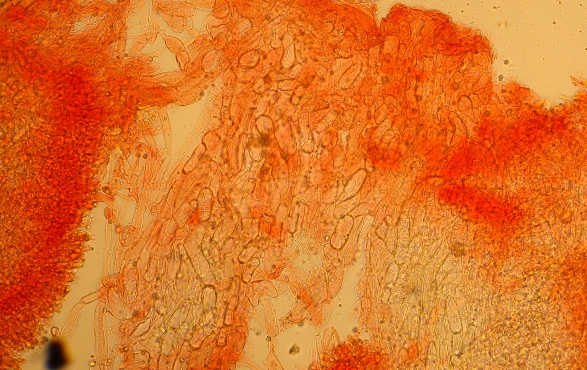 Die Sporen waren leicht amyloid und citriform. Das Lamellentrama war dextrinoid. Cheilozystiden waren wohl vorhanden, aber sie schienen keine Besonderheiten zu haben (weder metuloid noch igelig etc.)
