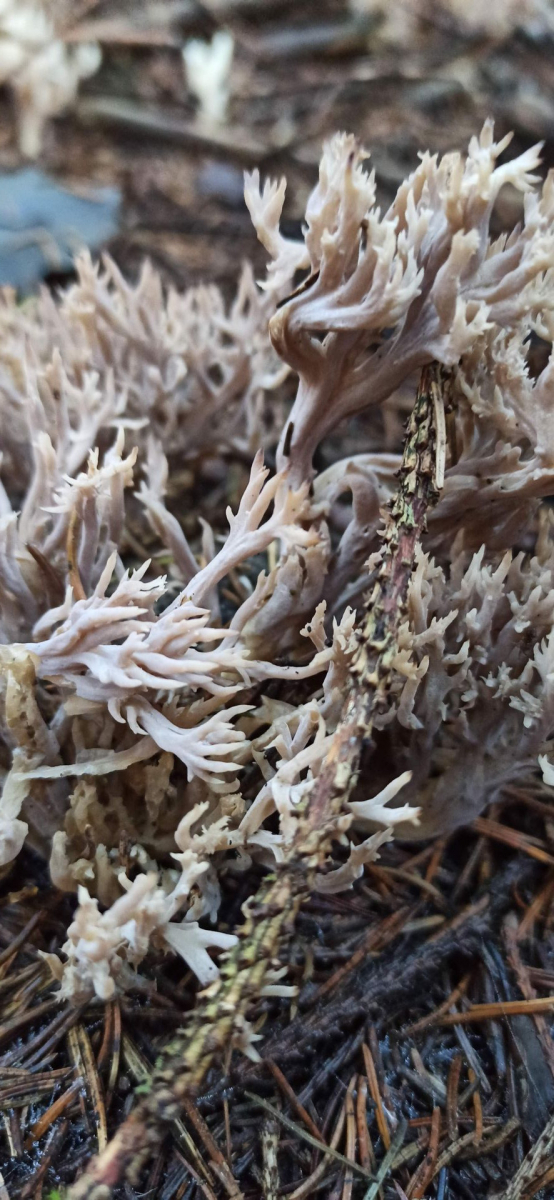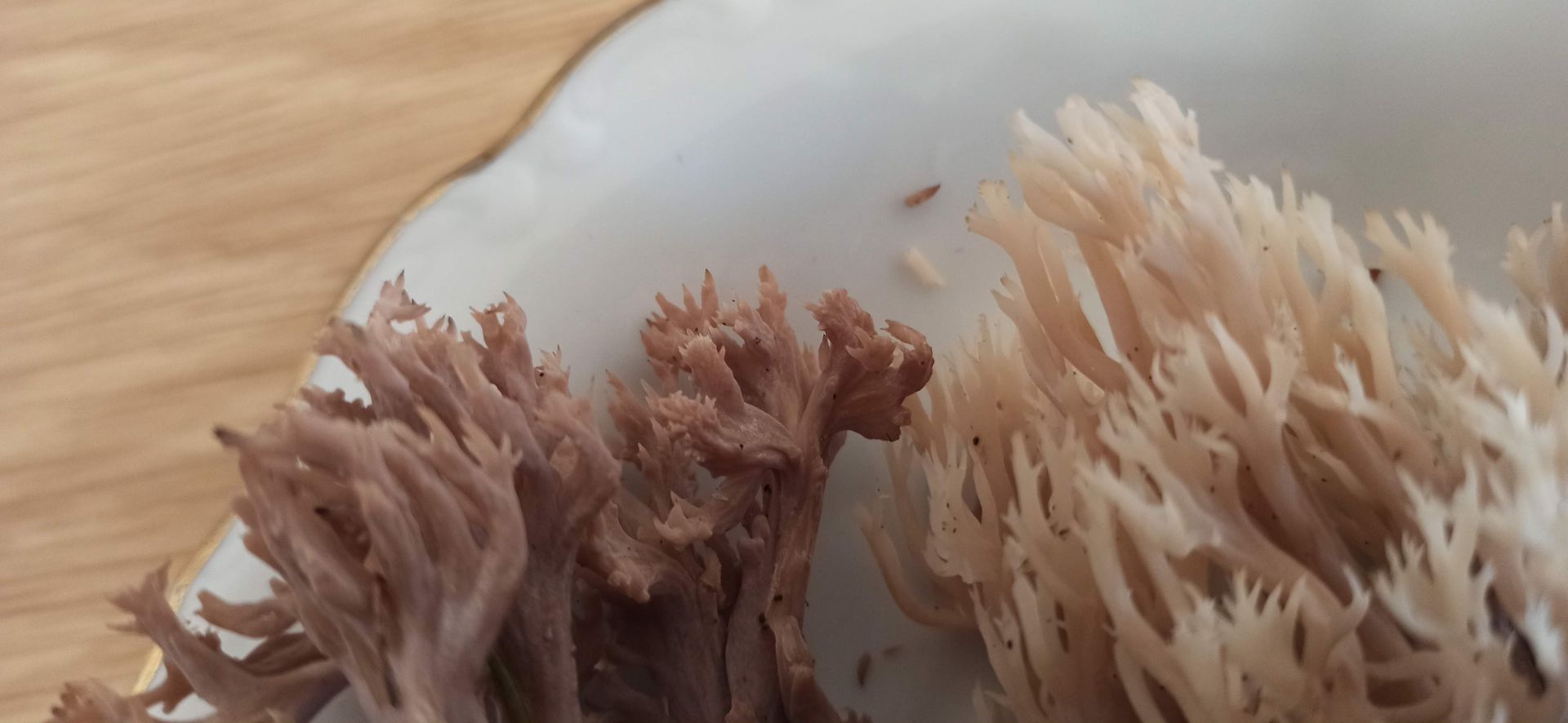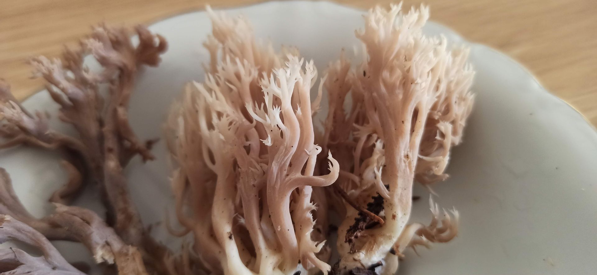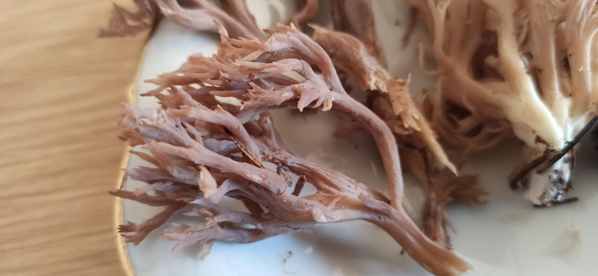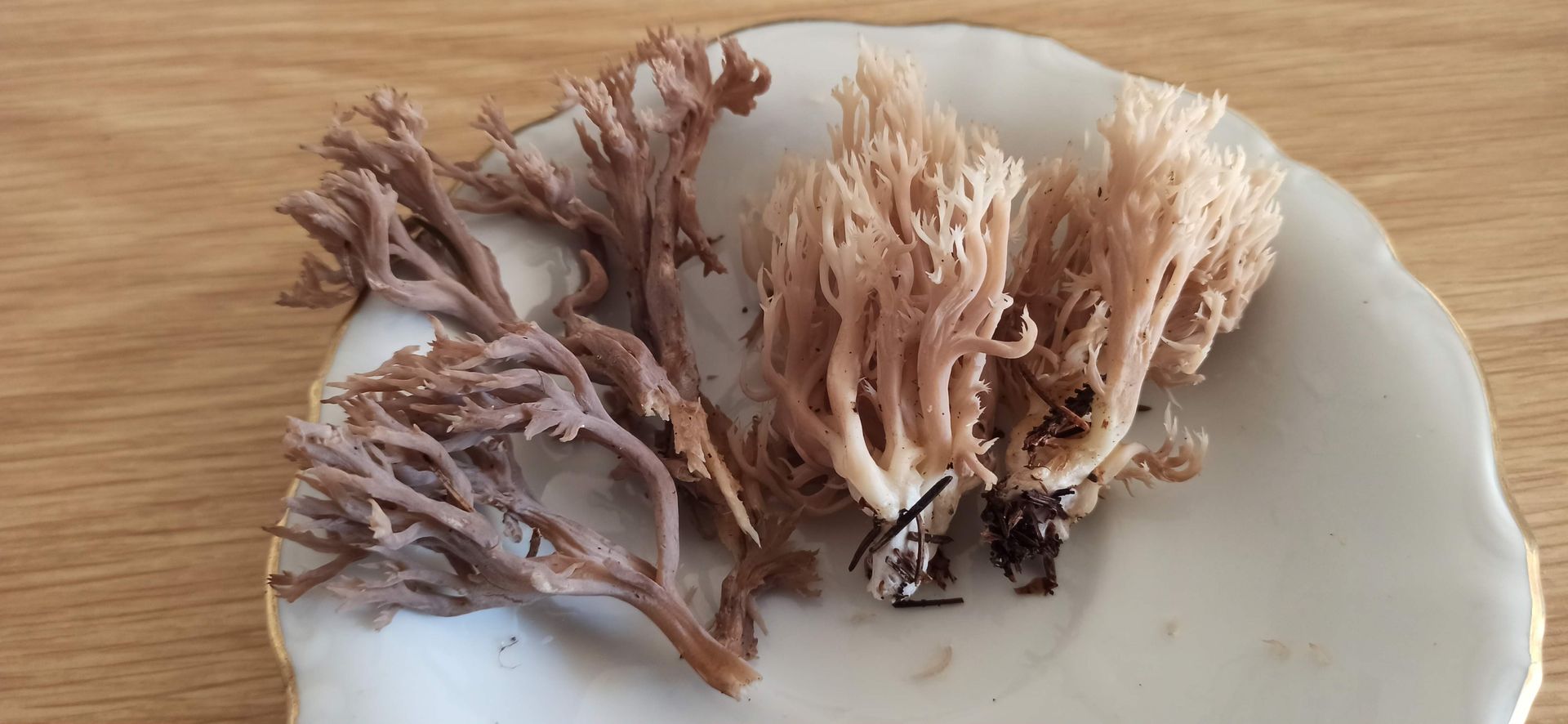 Ich weiß, dass es ein schweres Thema ist, aber vllcht gibt's makroskopische Merkmale, die ich noch nicht kenne. Beide namens gleiche "Korallen" wuchsen großflächig nebeneinander. Ringsrum hauptsächlich lichter Fichtenwald. Bei Fichte und weiße korallenähnliche Pilzchen denke ich zumeist an die Kammkoralle. Der andere war beim Anblick im Wald meiner Meinung nach 3farbig. Stielbasis Ocker, Mitte grau lila, Spitzen aehnlich der Basis, vllcht etwas gelblicher. Geruch neutral, Spitzen aber eher kammartig. Vllcht doch die Graue Koralle? LG Wastl