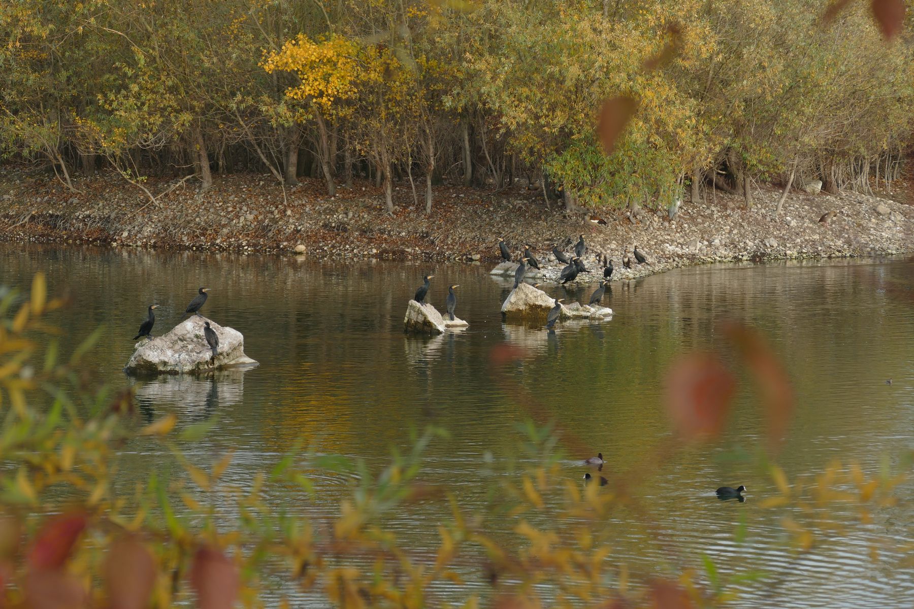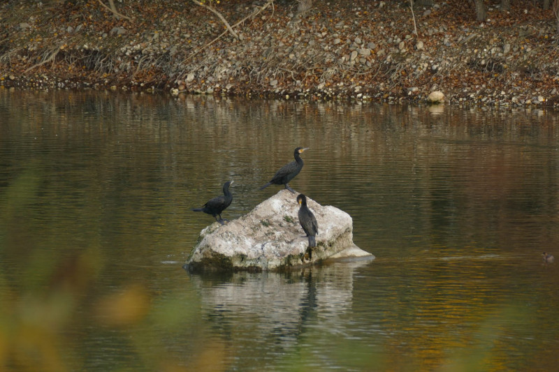 Um zu diesem Bereich zu kommen, muss man schon ein Stückchen laufen, egal von welcher Seite man kommt. Auf dem Weg konnte man beobachten, weshalb das Engerser Feld ein wichtiges Vogelschutz- und Vogelzuggebiet ist. Man konnte beispielsweise aus der Ferne die Kormorankolonie beobachten: