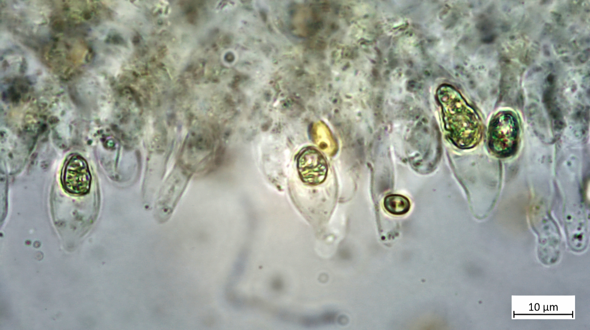 Mit den Zystiden habe ich mich etwas schwer getan, sind aber vorhanden und auch wie beschrieben oft zylindrisch oder auch mal entenkopfförmig: