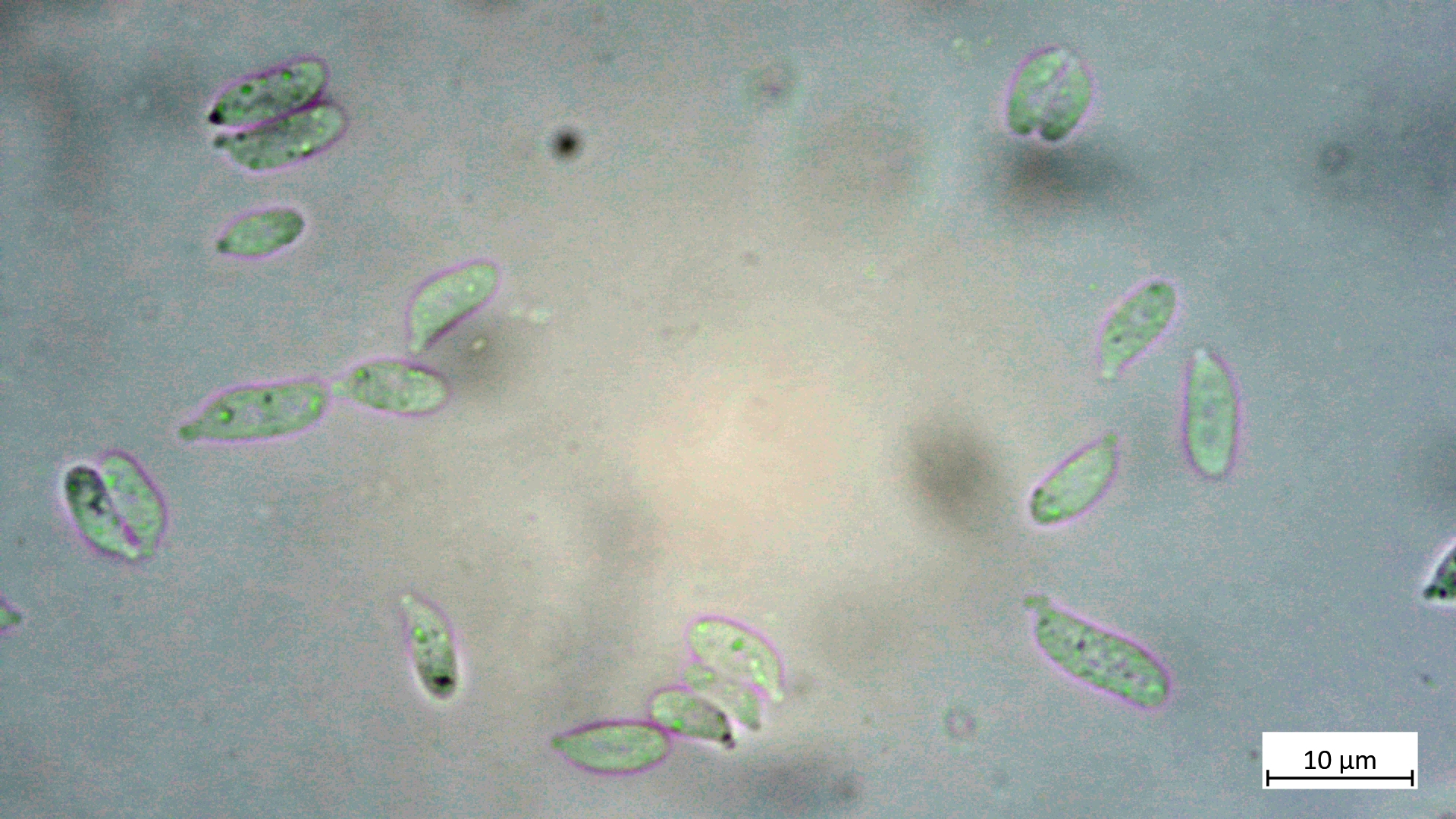 Die Sporen bereiten leider etwas Kopfzerbrechen, da sie nicht recht zu dieser oder auch zu den Nachbararten passen wollen: