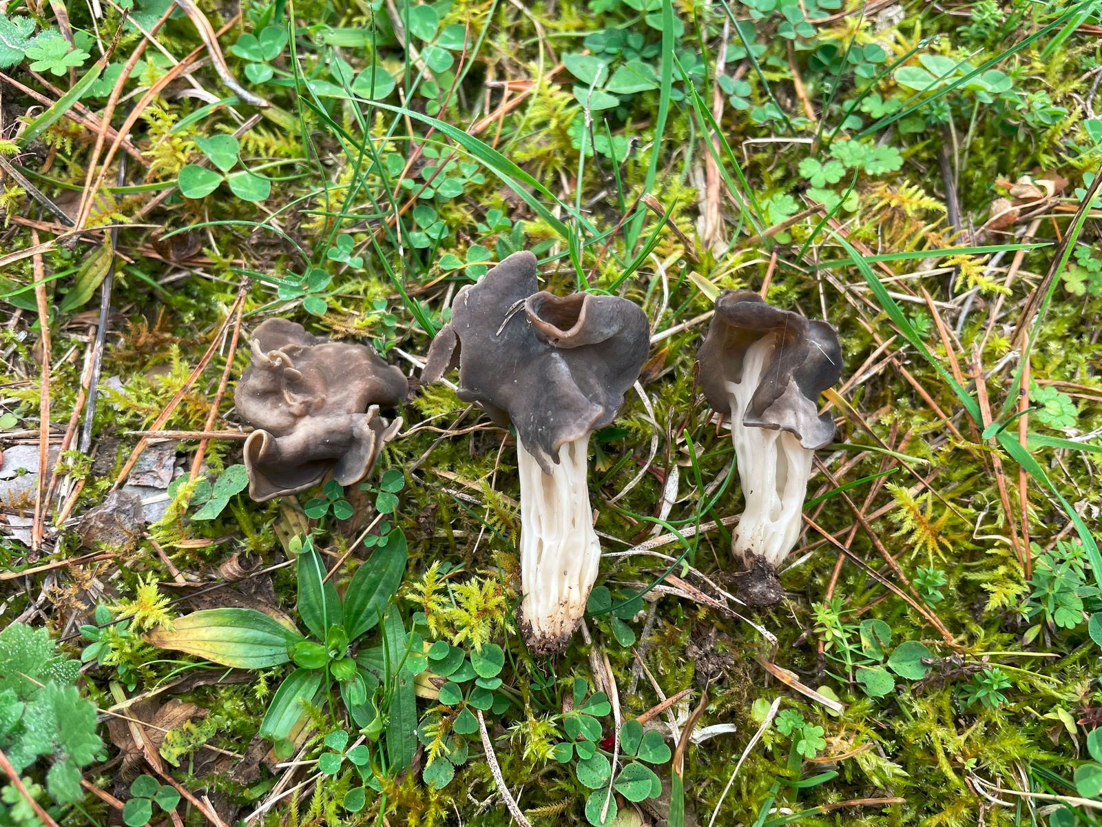 Servus zusammen, ich fand letzte Woche mehrere dieser kleinen Lorcheln am Wegrand eines ehem.Truppenübungsplatzes auf Sand. Nächste Bäume Kiefer und Eiche jeweils ca 40m entfernt. Was mich irritierte war der weisse Stiel, den ich so bei Grubenlorcheln iwS so noch nicht bewusst bemerkt hatte. Nach dem Schlüssel von Skrede, Carlsen und Schumacher (danke an Schupfnudel & Clavaria ) komme ich aber doch bei Helvella lacunosa s.str. heraus (2-3-16-21-22-23-24-29). Der Stiel darf wohl auch "whitish" sein. Könnt ihr das bestätigen?