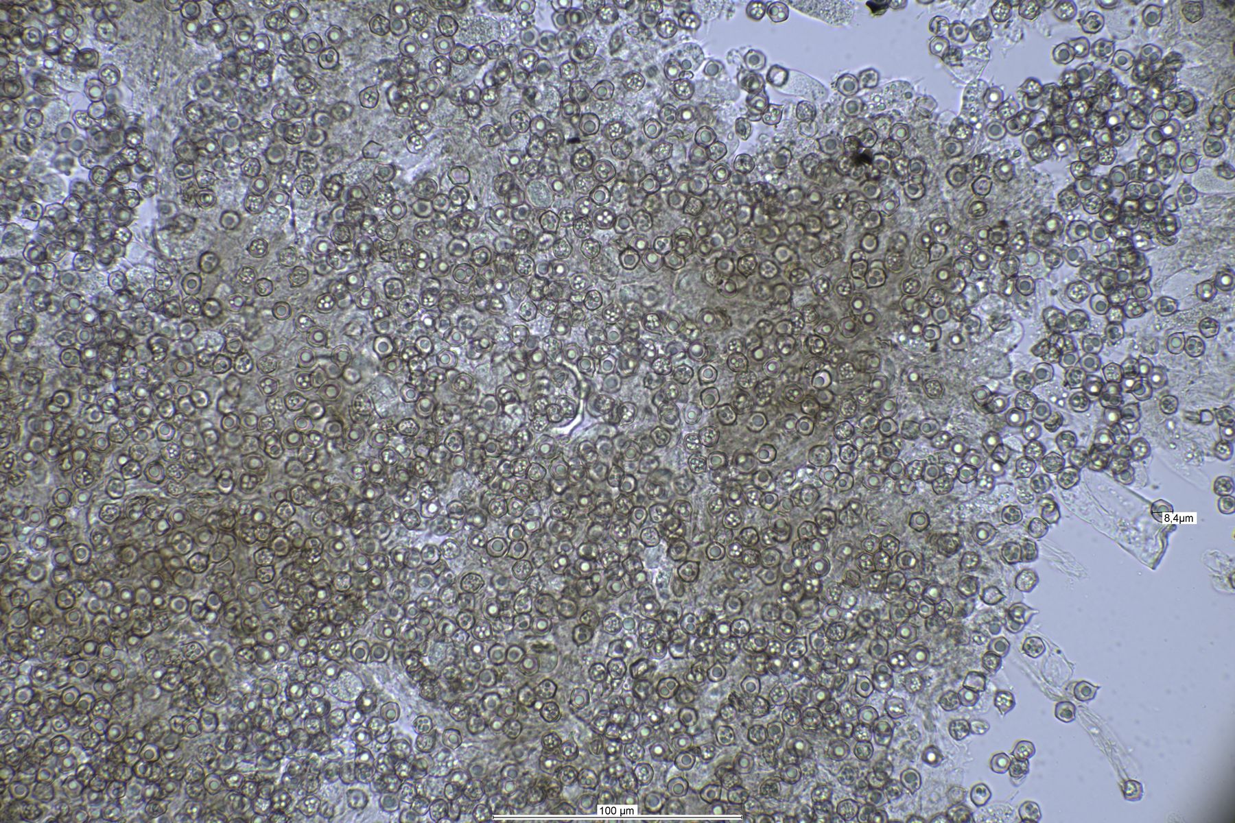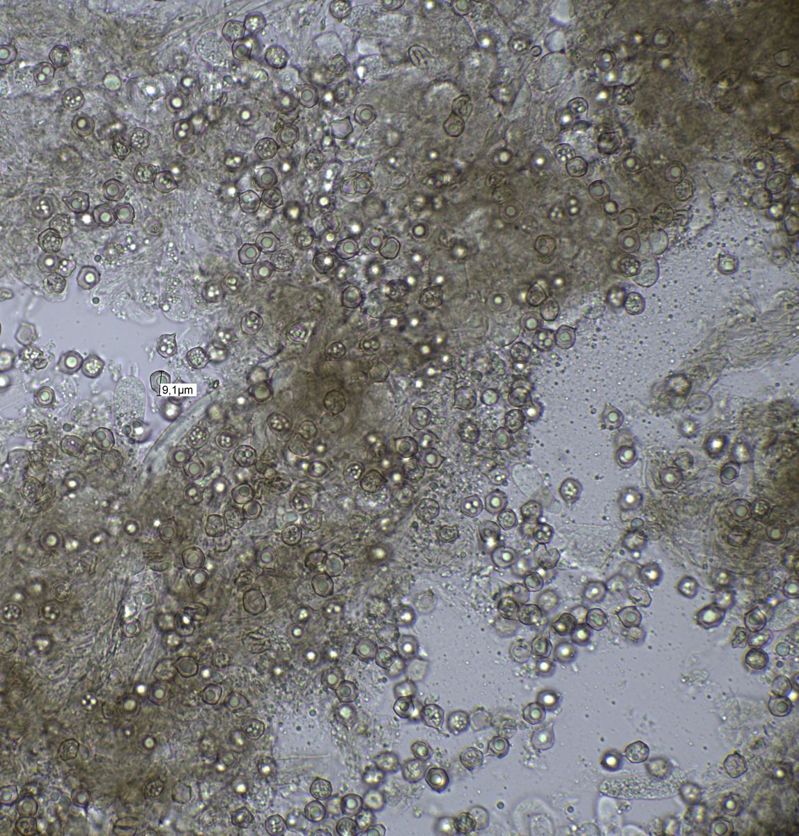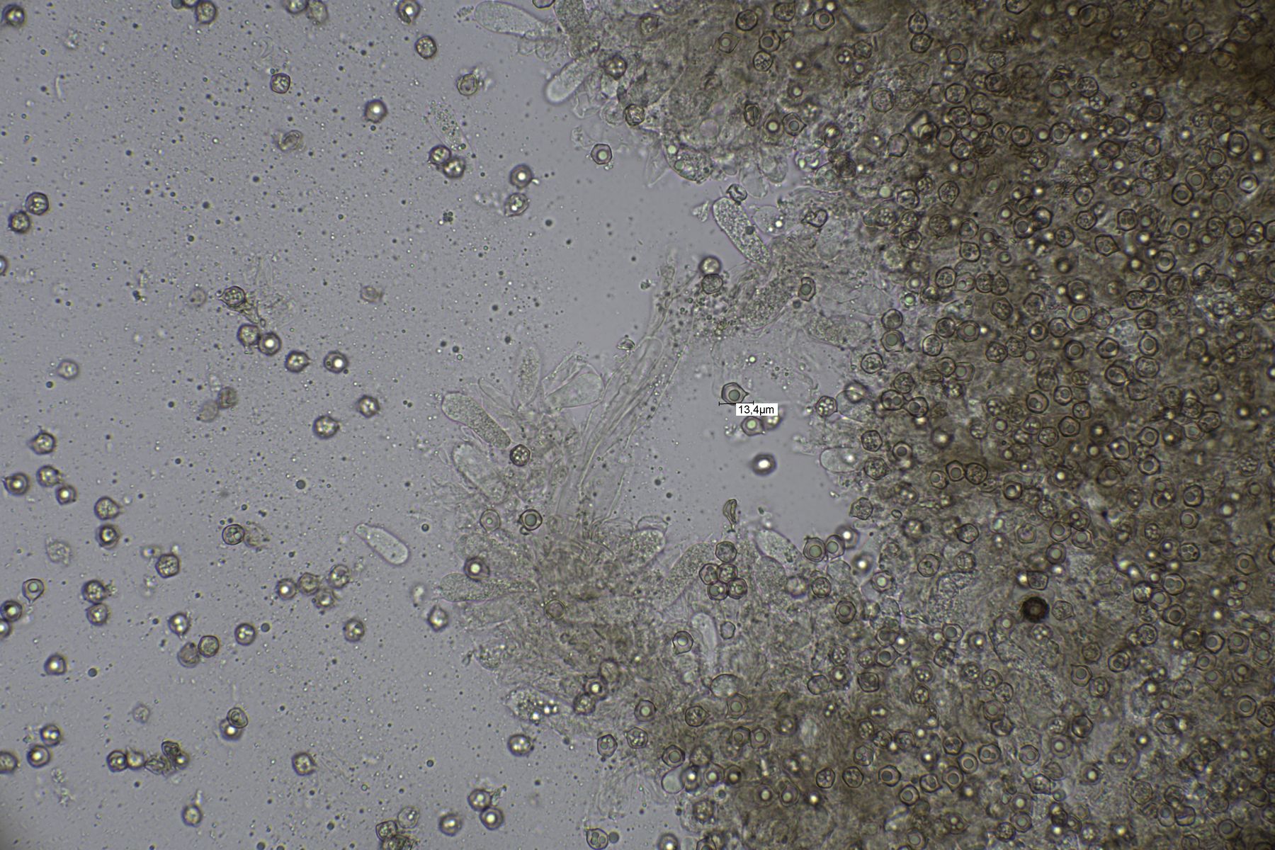 Für den Testlauf habe ich eine Entoloma aus einem Feuchtgebiet in der Umgebung genommen. Da ich jetzt Zugriff auf die Mikrowelt der Pilze habe, eröffnet mir das jetzt ganz neue Möglichkeiten bei der Bestimmung.