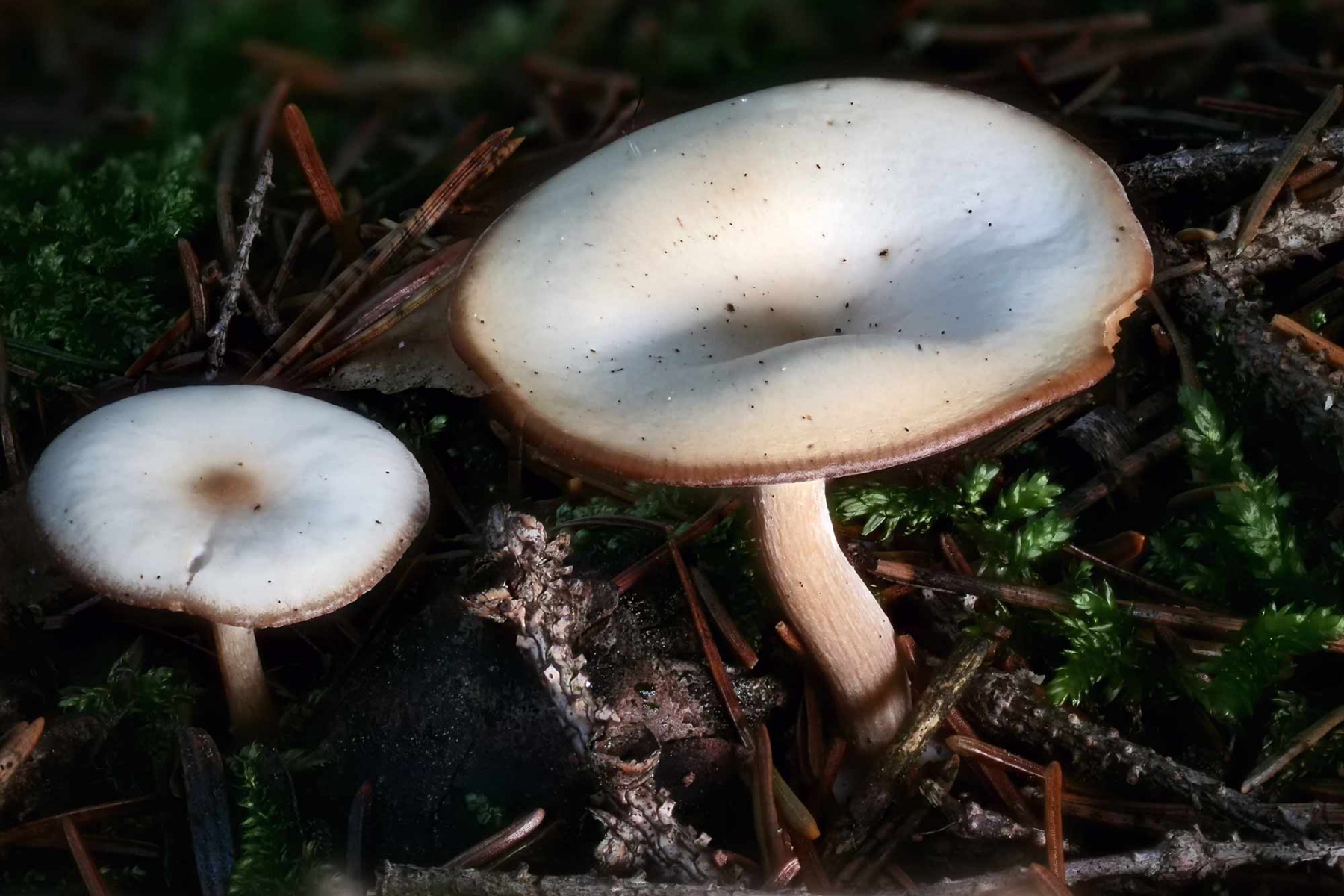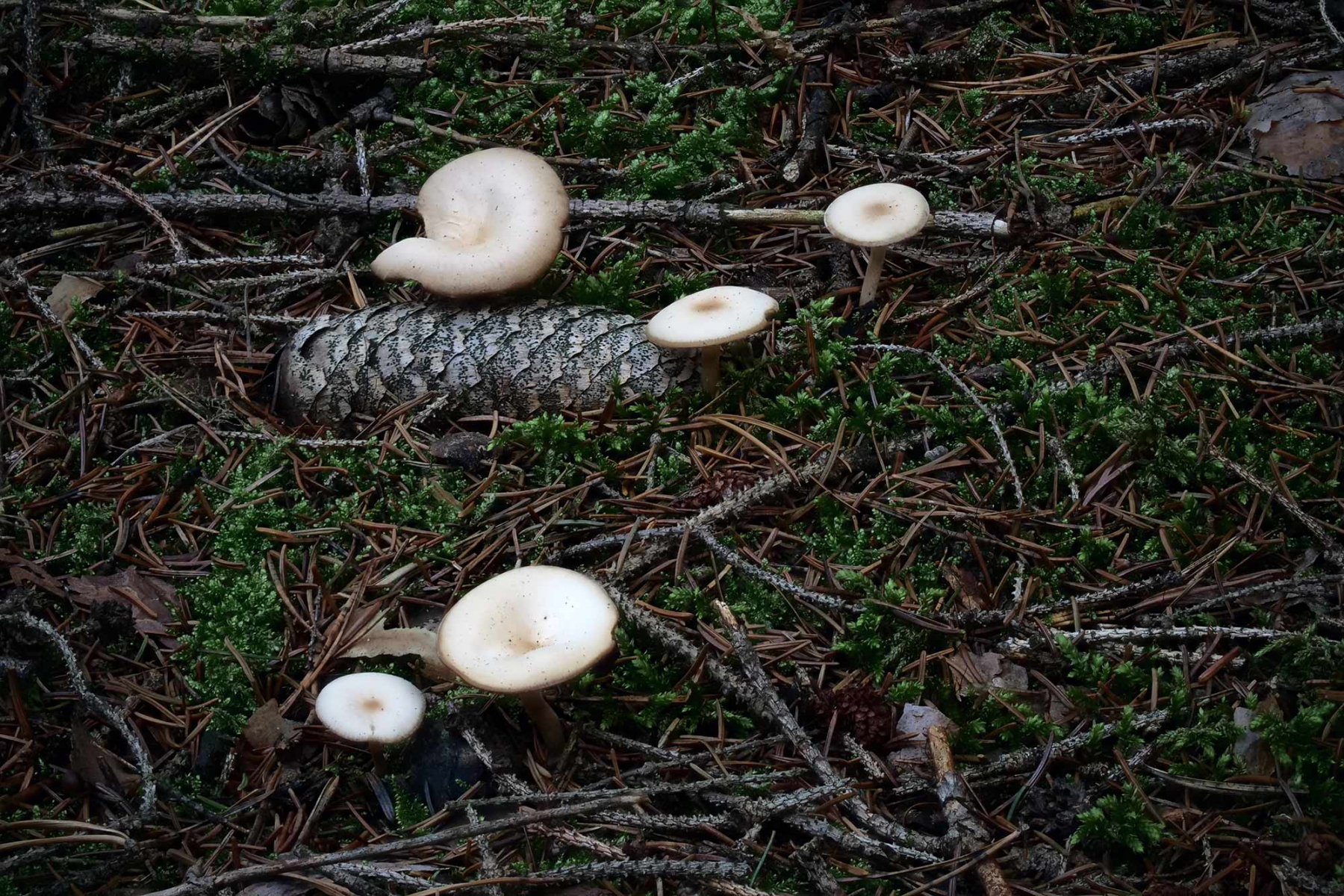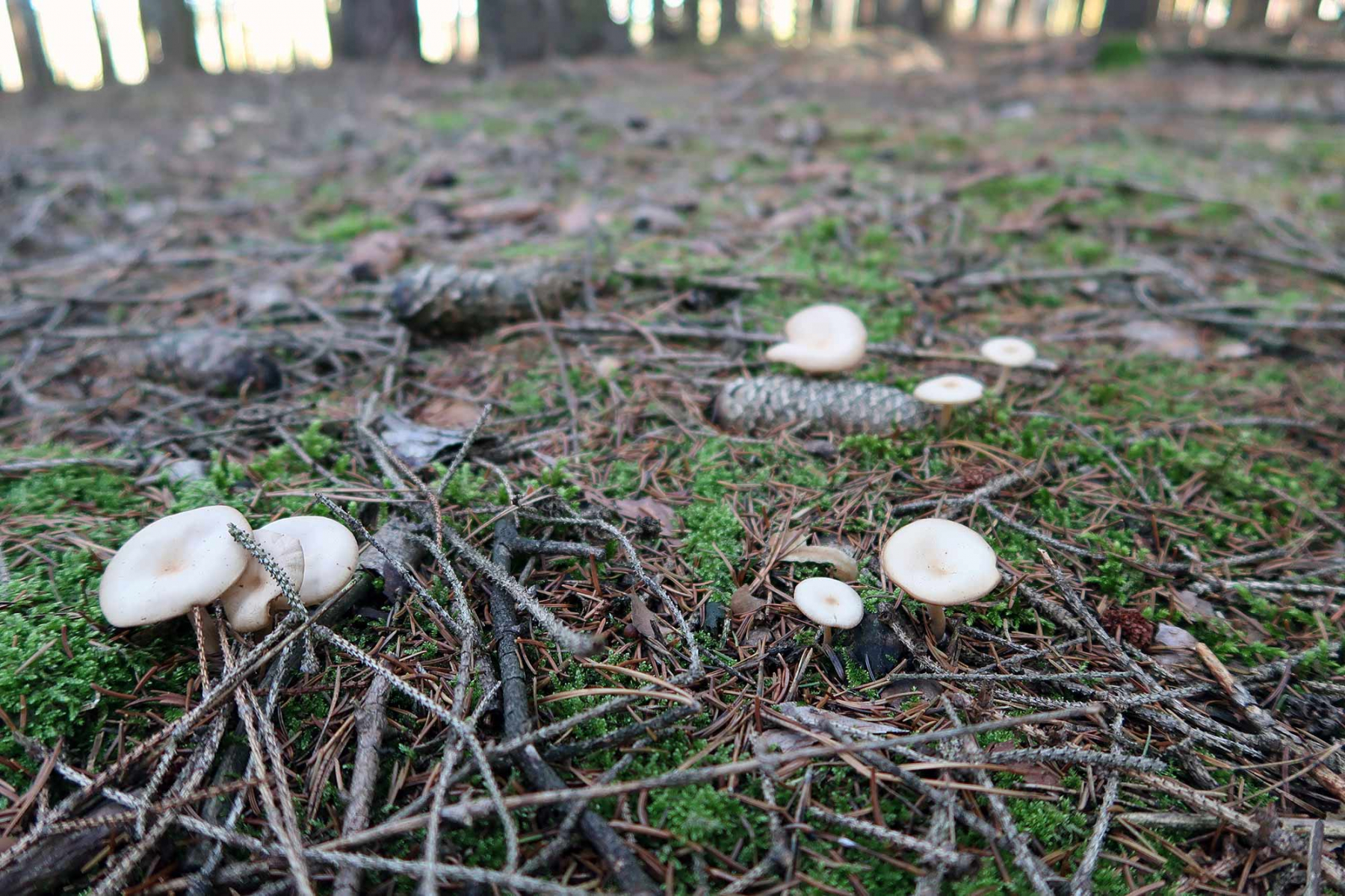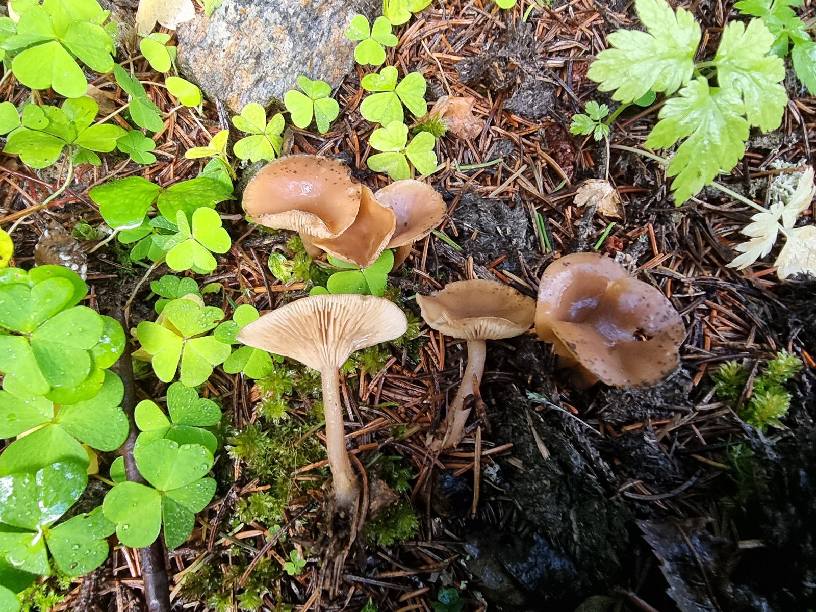 am WE war ich auf Exkursion und habe im Fichtenhochwald jede Menge Gruppen eines kleinen Trichterlings gefunden.