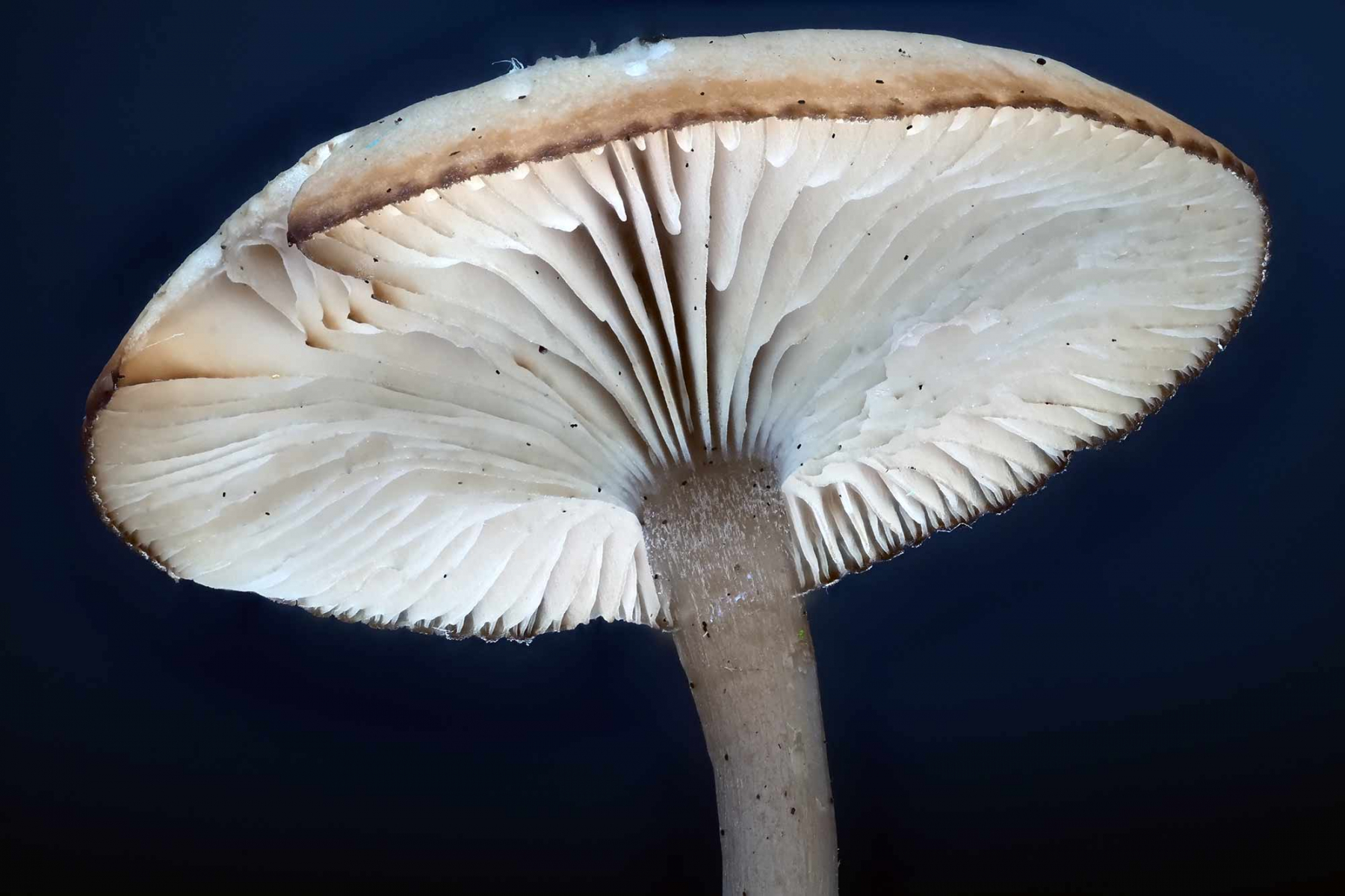 • Hut: hygrophan, am Rand leicht gezahnt, Trichter, Mitte auch oft deutlich dunkler, jung leicht gebuckelt