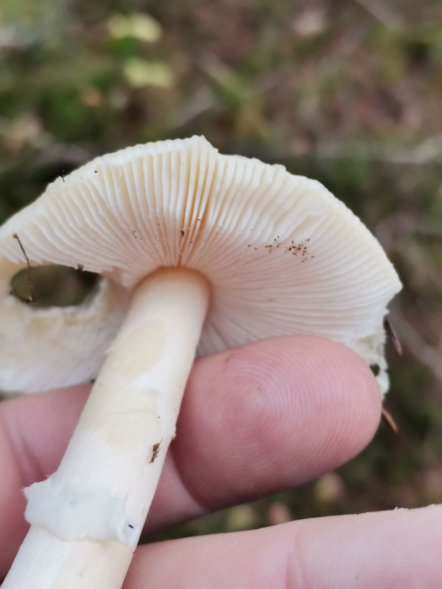 "Wie bei allen Knollenblätterpilzen, Streiflingen und Wulstlingen ist die Huthaut auch bei dieser Art tortenstückförmig bis zur Mitte abziehbar."