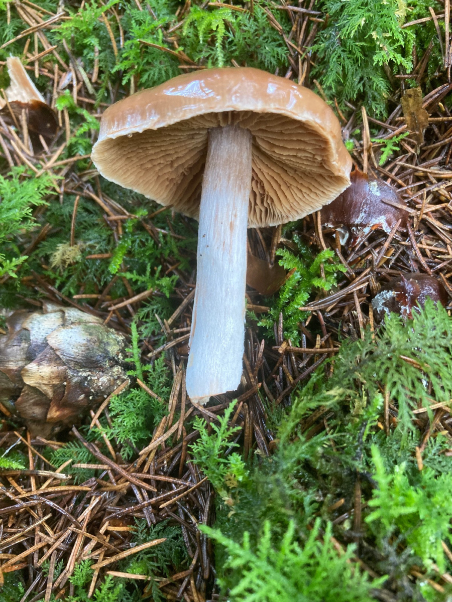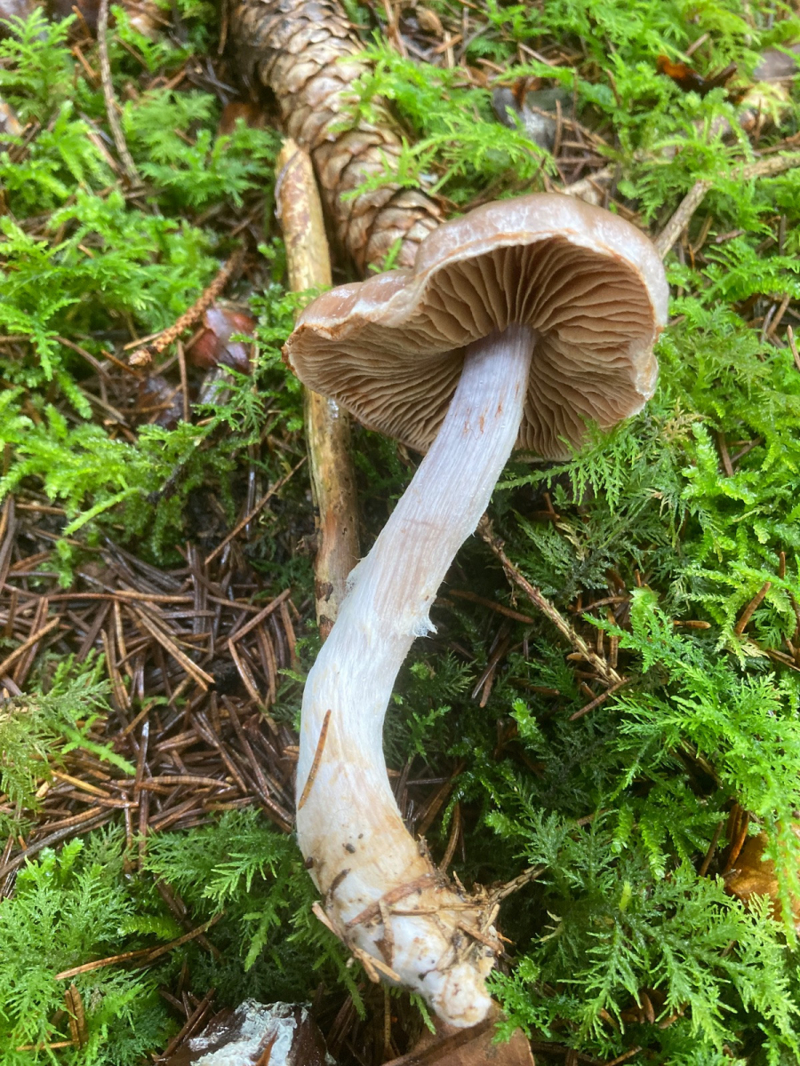 Ich kenne mich bei den Cortinarien nicht aus und ging im Vorfeld aufgrund der Attribute (schleimiger Hut, Stiel nicht schleimig oder klebrig) von einem Schleimkopf und insbesondere von einem Cortinarius variicolor aus. Dieser ist jedoch auszuschliessen (grosser stämmiger FK).