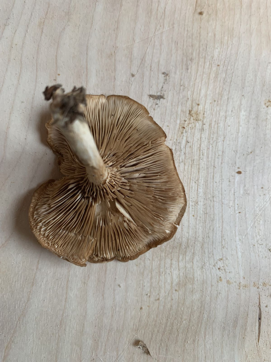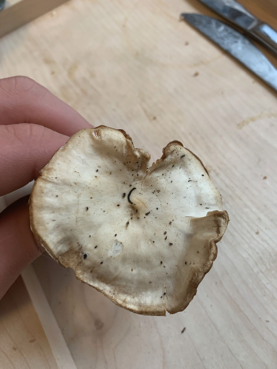 Sieht so aus, als ob die Lamellen sich leicht vom Hut lösen, aber ob dies bei den alten Schlappen noch ein Merkmal ist?
