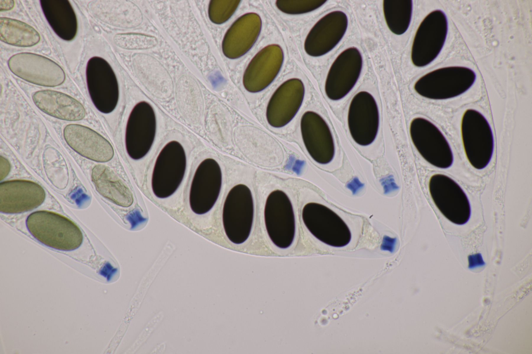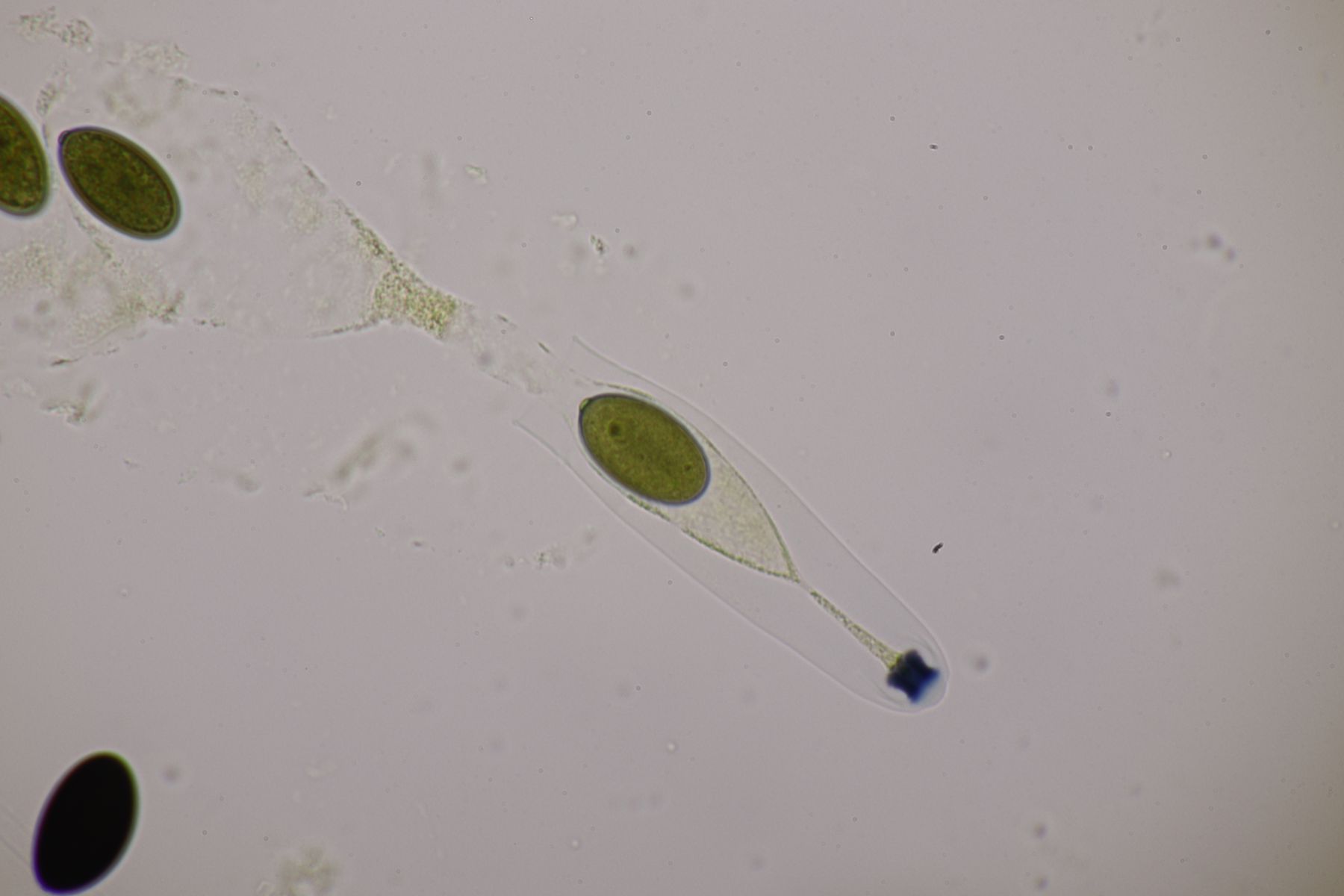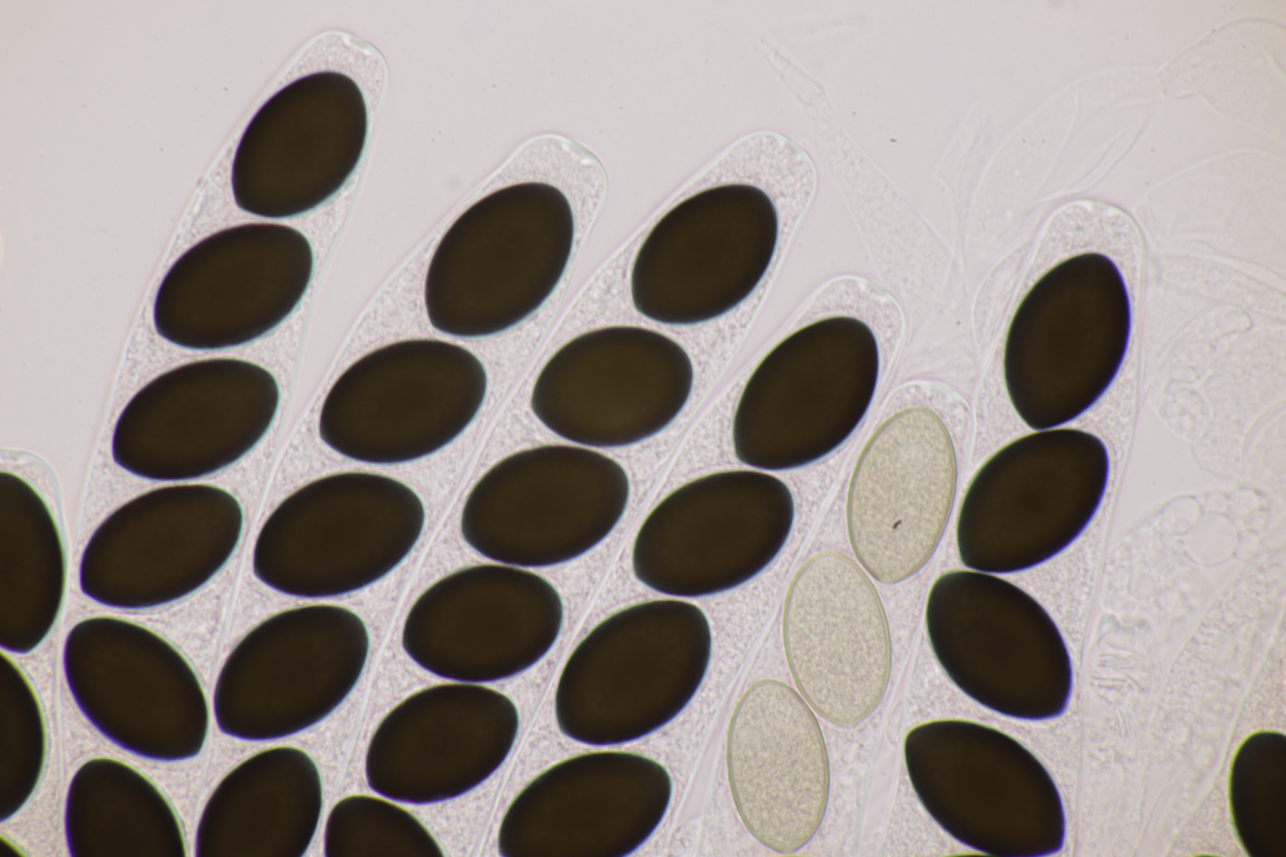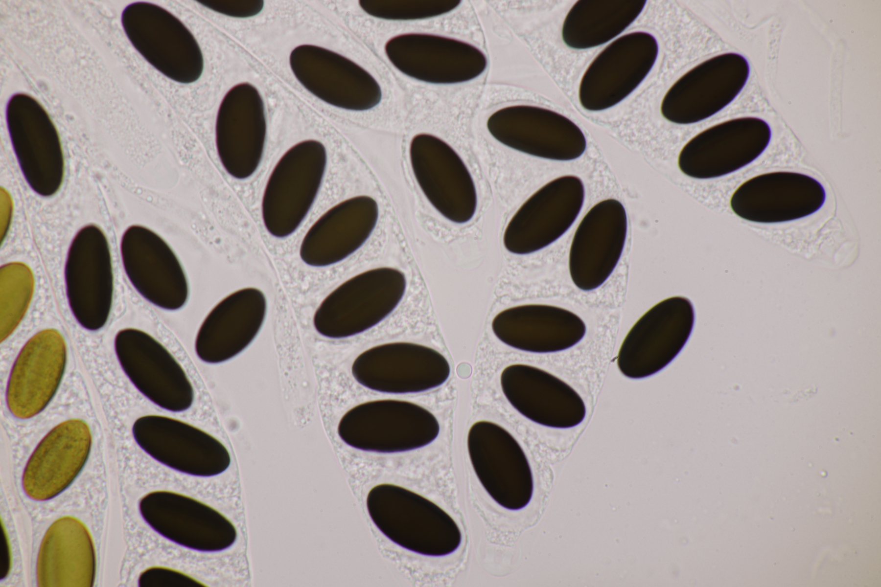 11. Zum Schluß noch eine Sordaria mit Sporen von 31-32 µm x 19-20.5 µm, Q=1.5-1.7, womit ich hier bei Sordaria macrospora rauskomme. Aber bis jetzt bin ich in dieser Gattung fast noch nie bei der richtigen Art rausgekommen.... ![]()