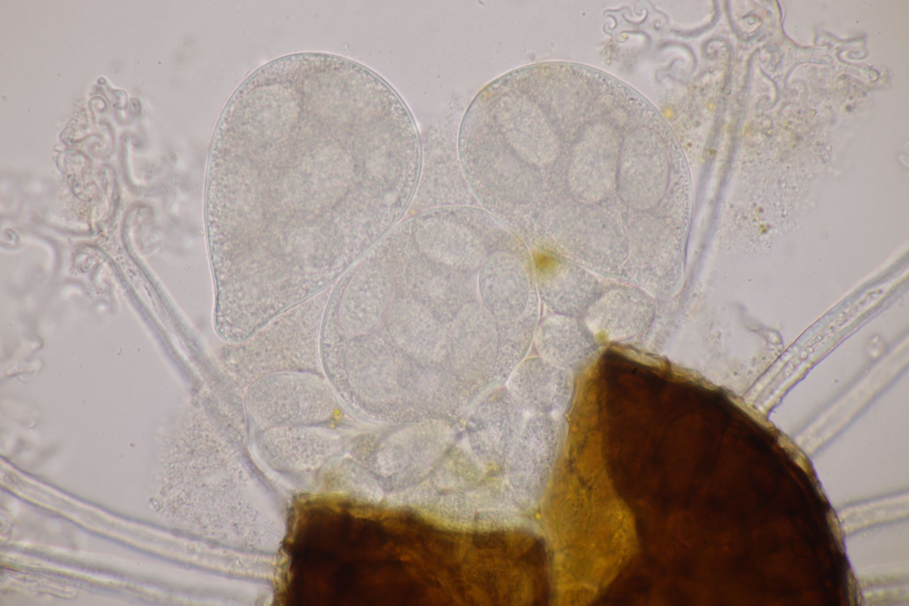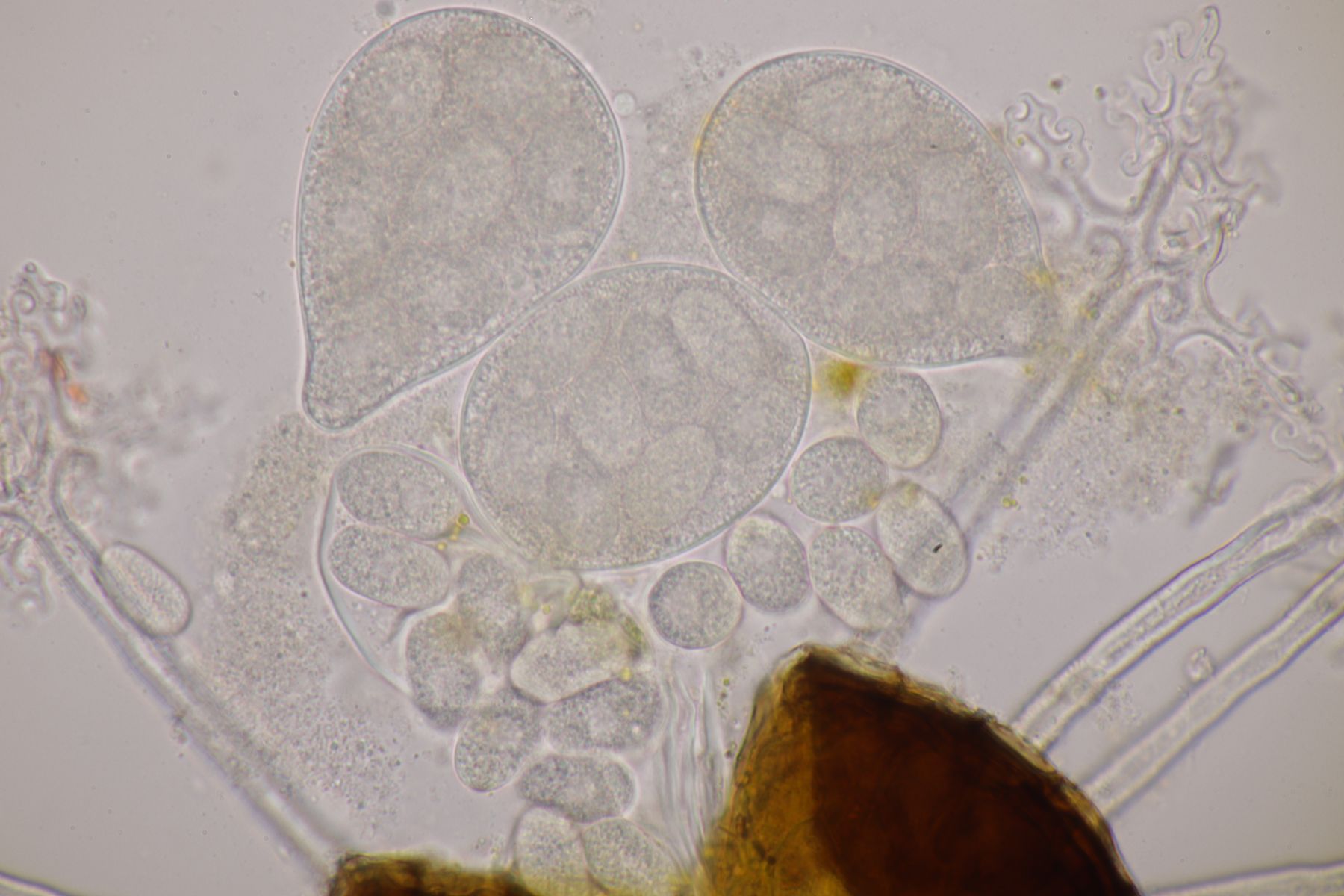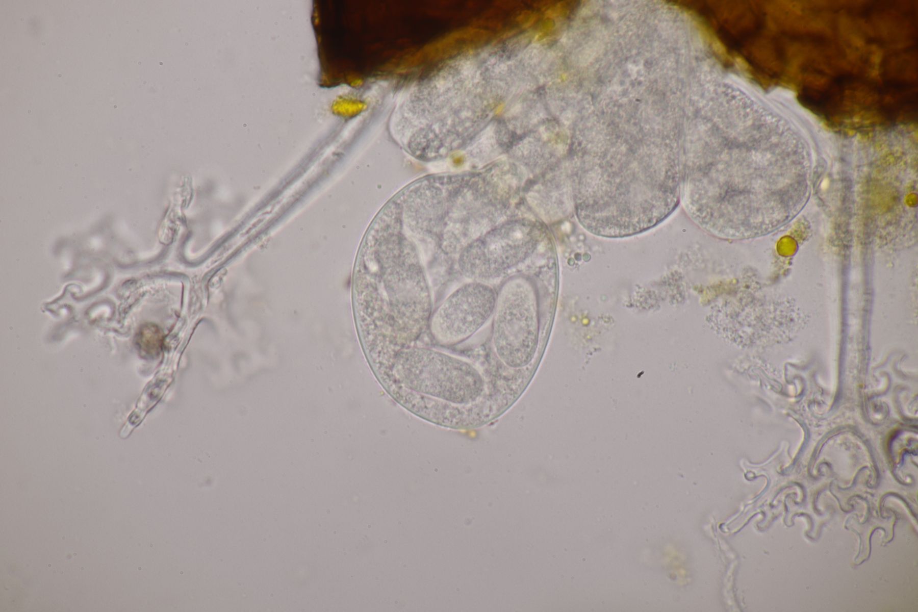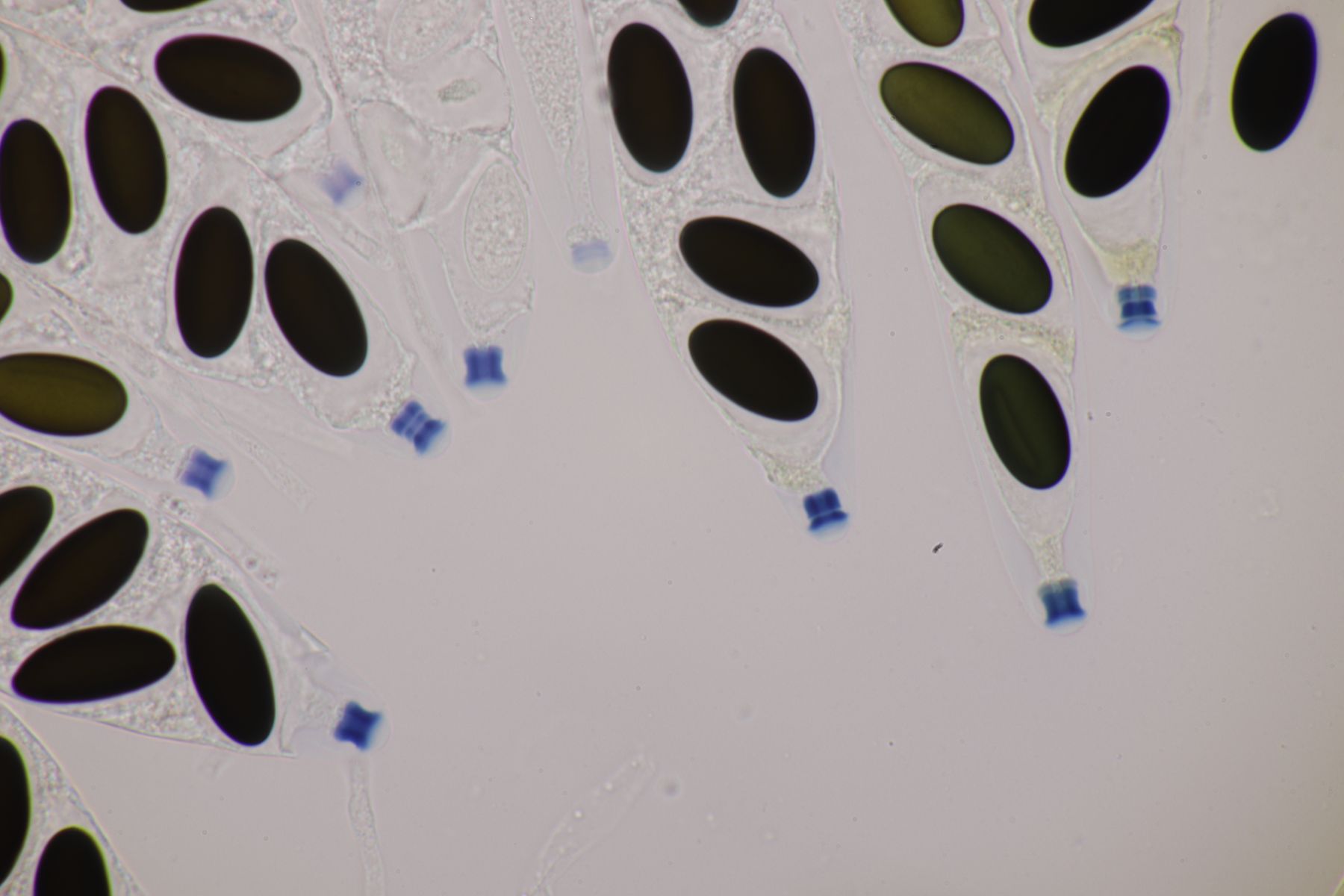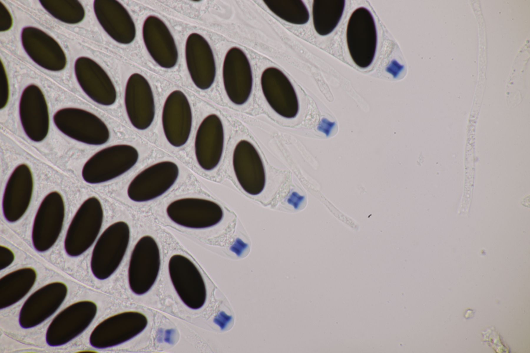 11. Zum Schluß noch eine Sordaria mit Sporen von 31-32 µm x 19-20.5 µm, Q=1.5-1.7, womit ich hier bei Sordaria macrospora rauskomme. Aber bis jetzt bin ich in dieser Gattung fast noch nie bei der richtigen Art rausgekommen.... ![]()