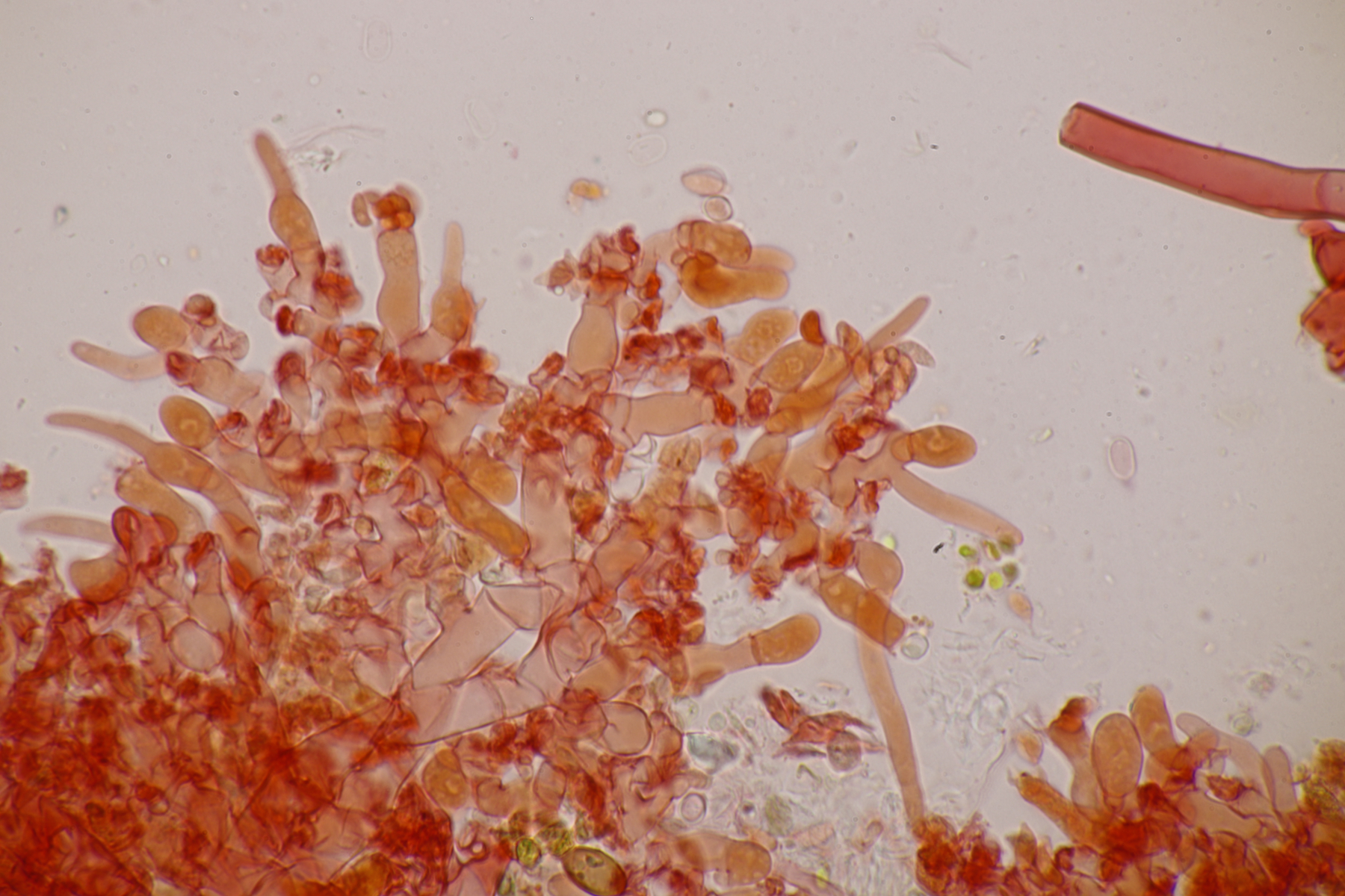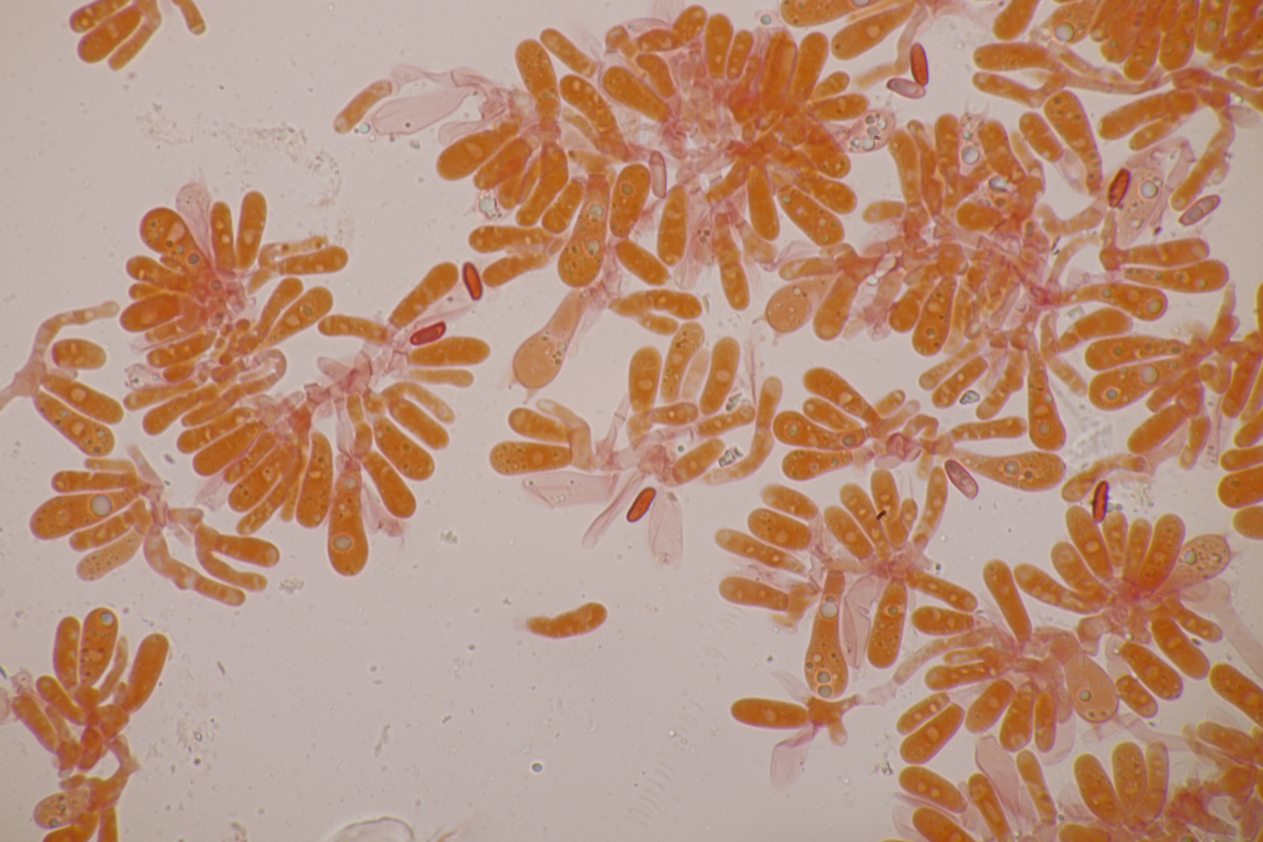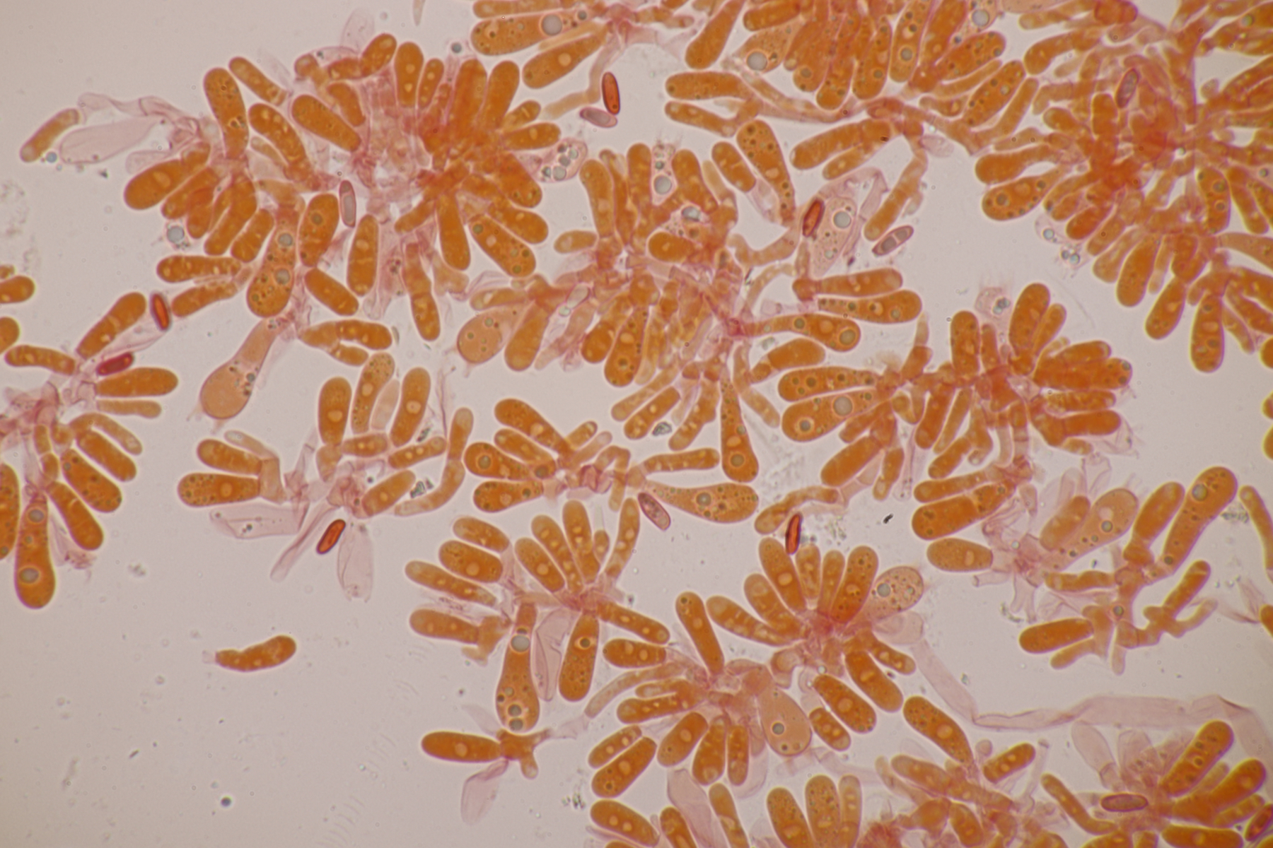6. Botryobasidium subcoronatum, Sporen 7.6+-0.4 x 3.1+-0.2, Q=2.5+-0.2, 6.9-8.2 x 2.7-3.4, Q=2.1-2.7