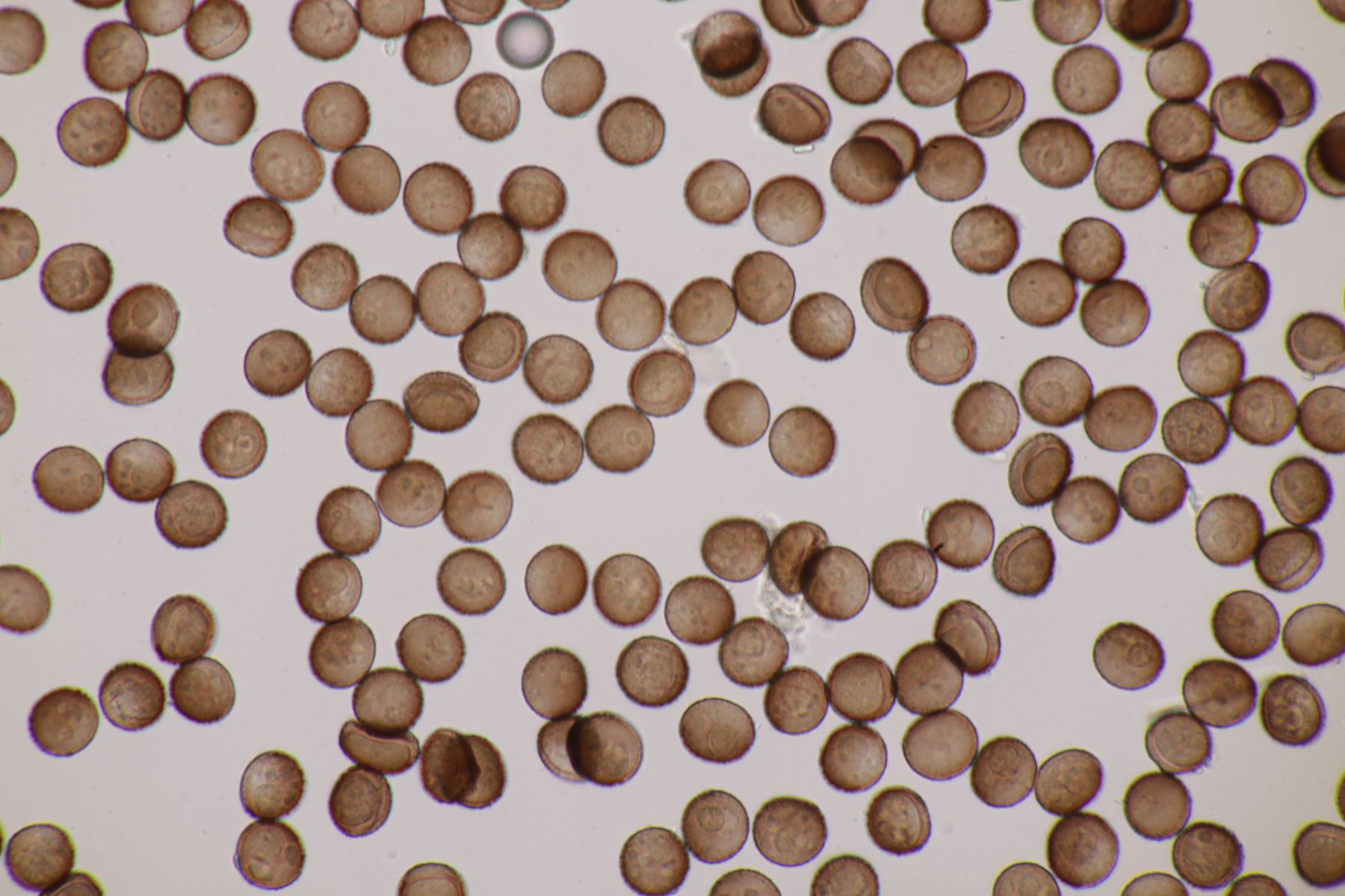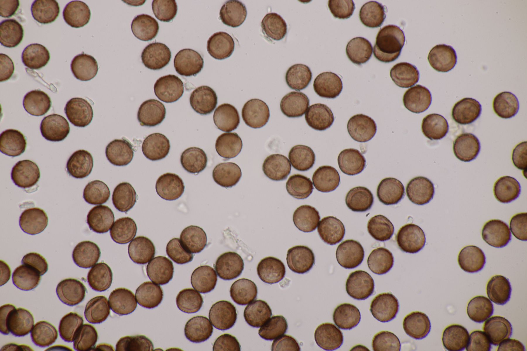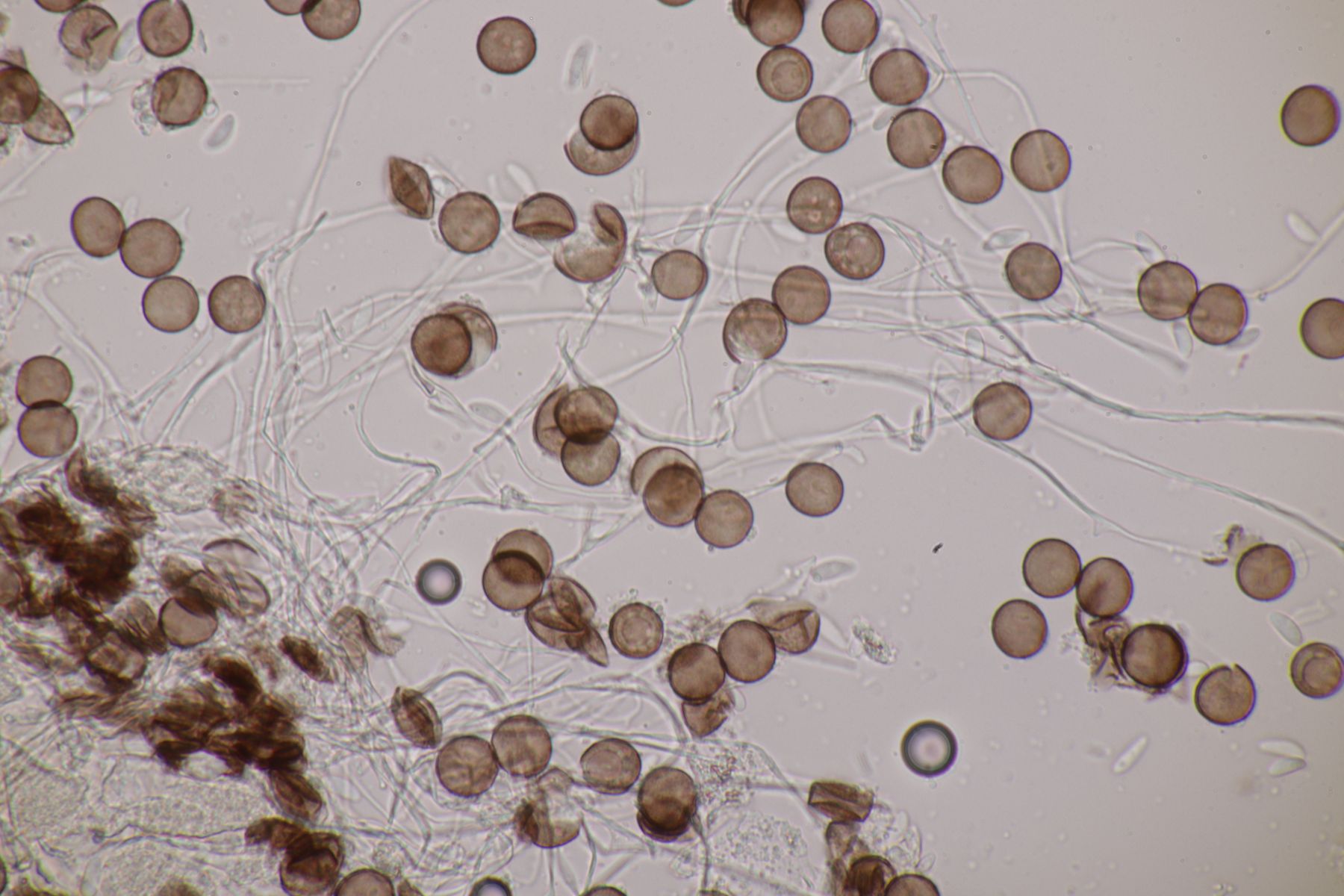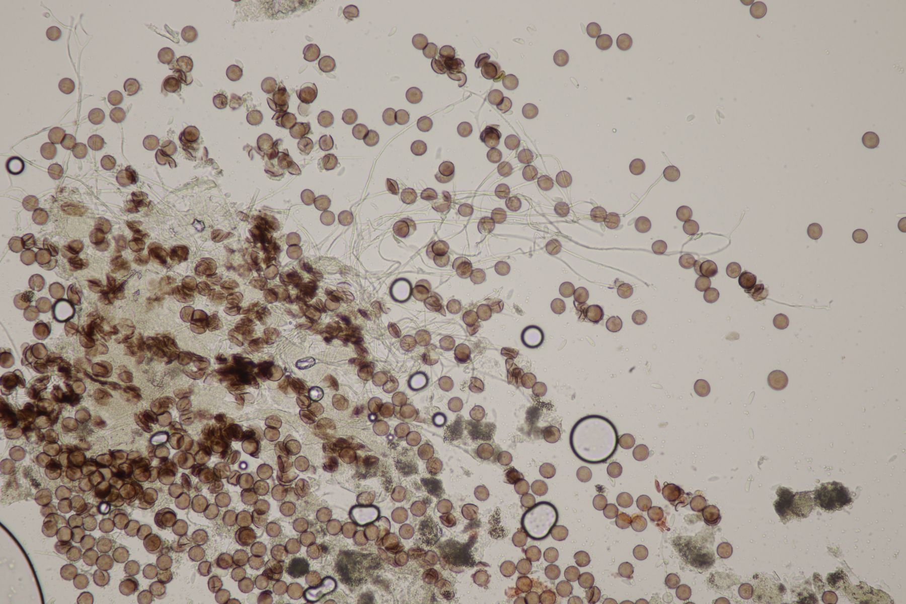 10. Noch ein Schleimpilz mit Sporen von 9-11 µm. Hier fehlt mir allerdings jegliche gute Idee... lamproderma