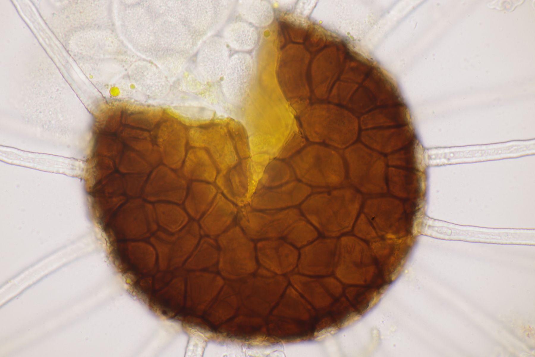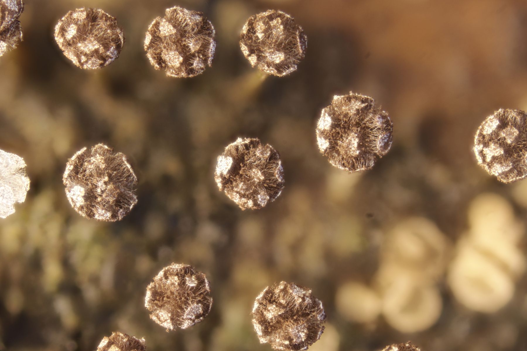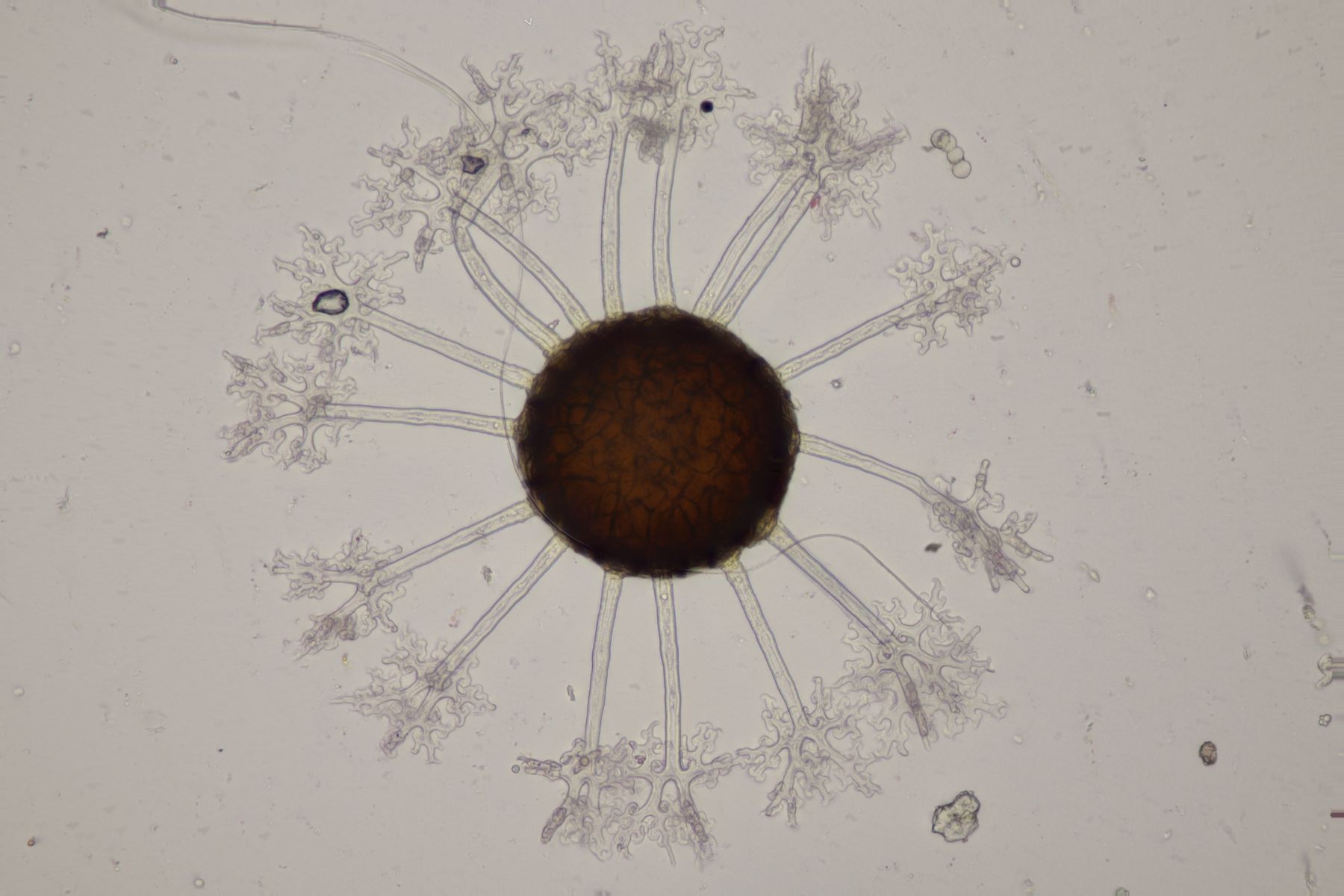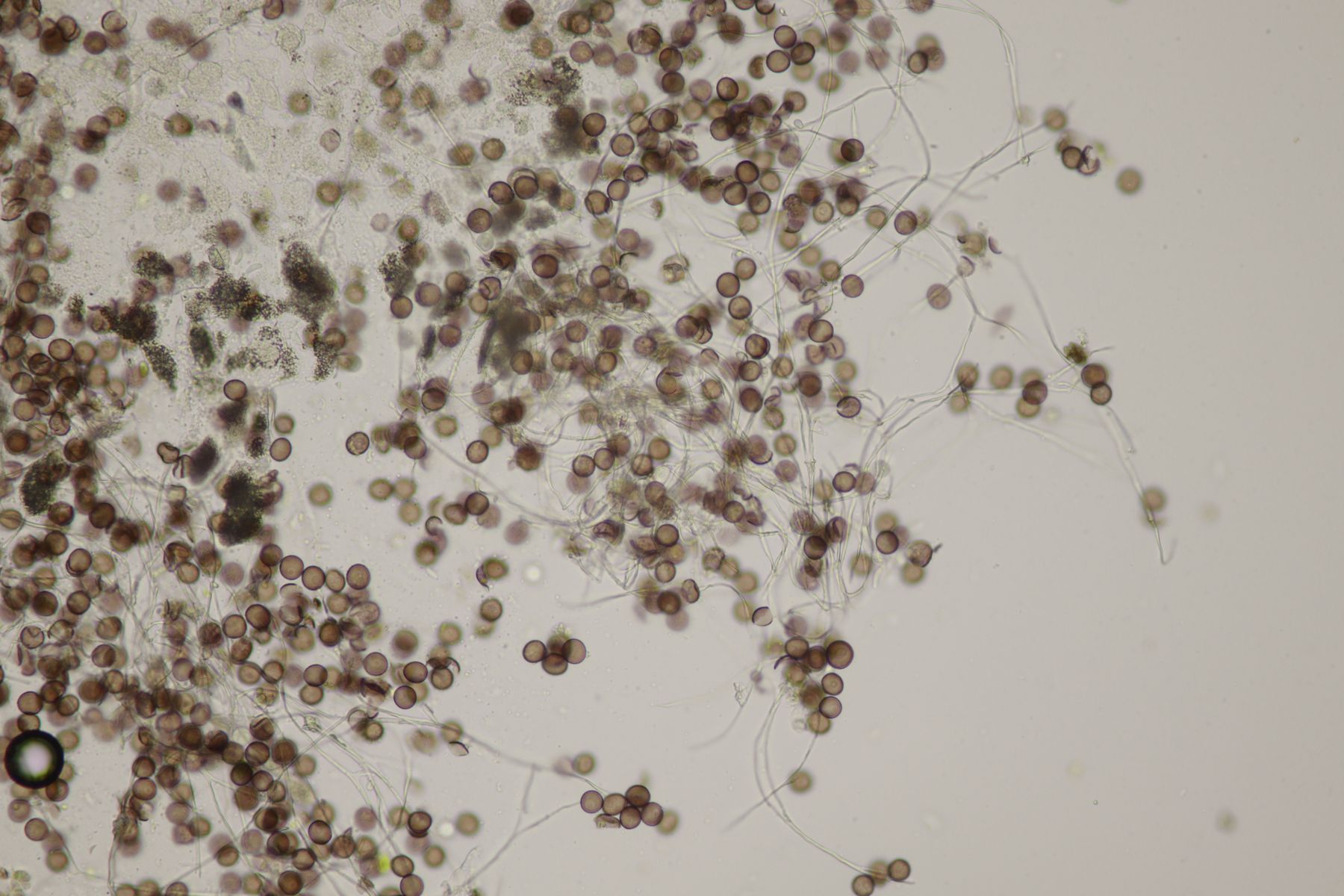 10. Noch ein Schleimpilz mit Sporen von 9-11 µm. Hier fehlt mir allerdings jegliche gute Idee... lamproderma