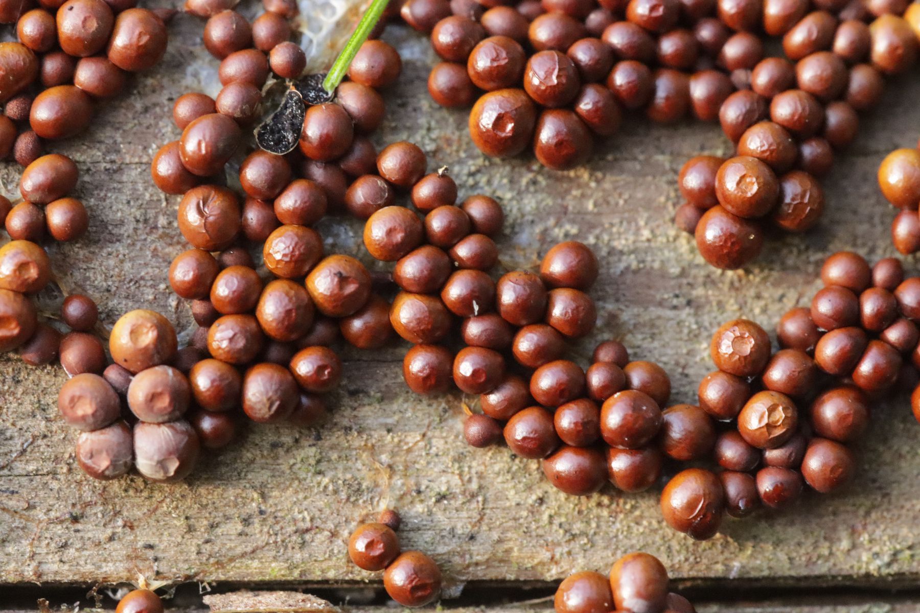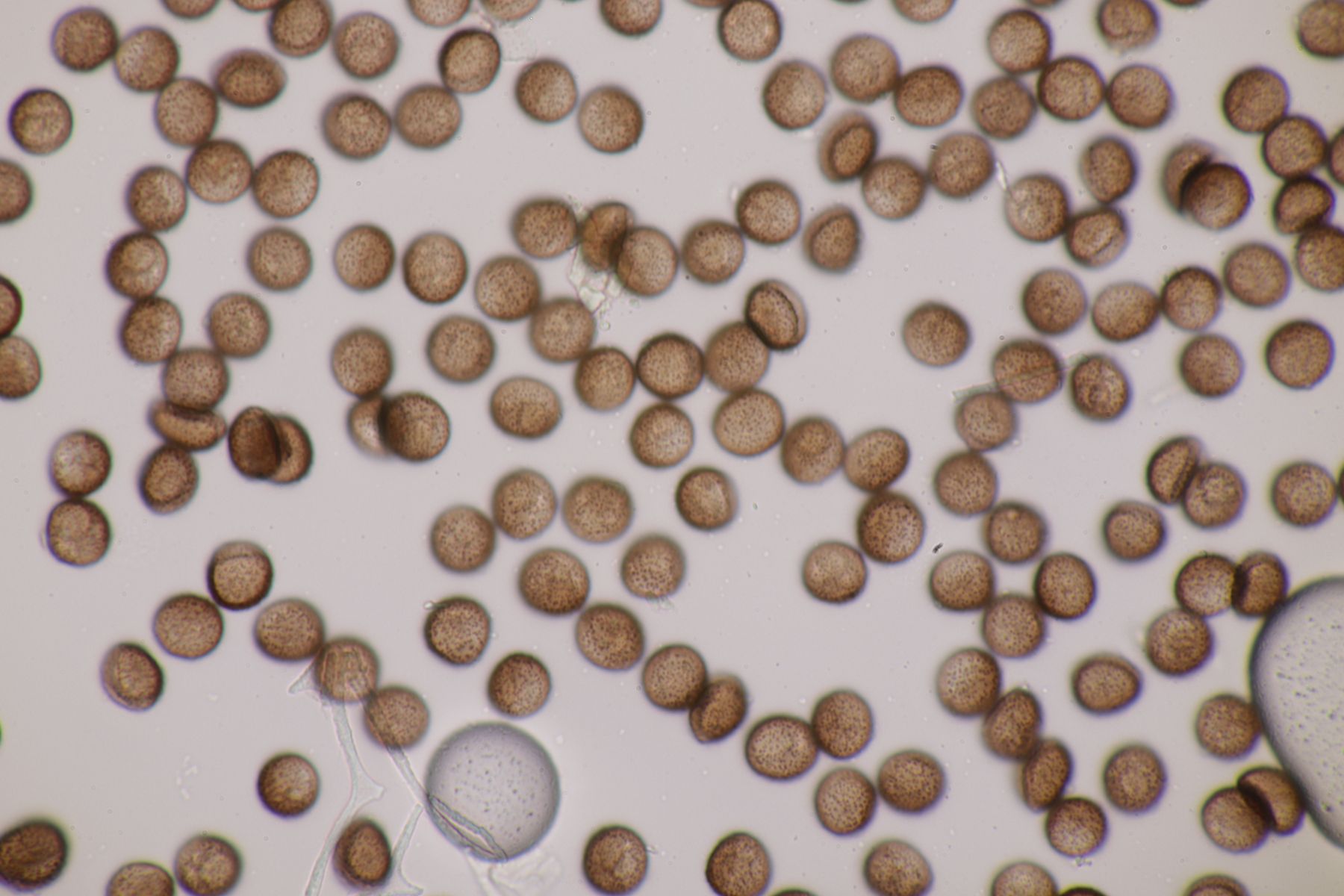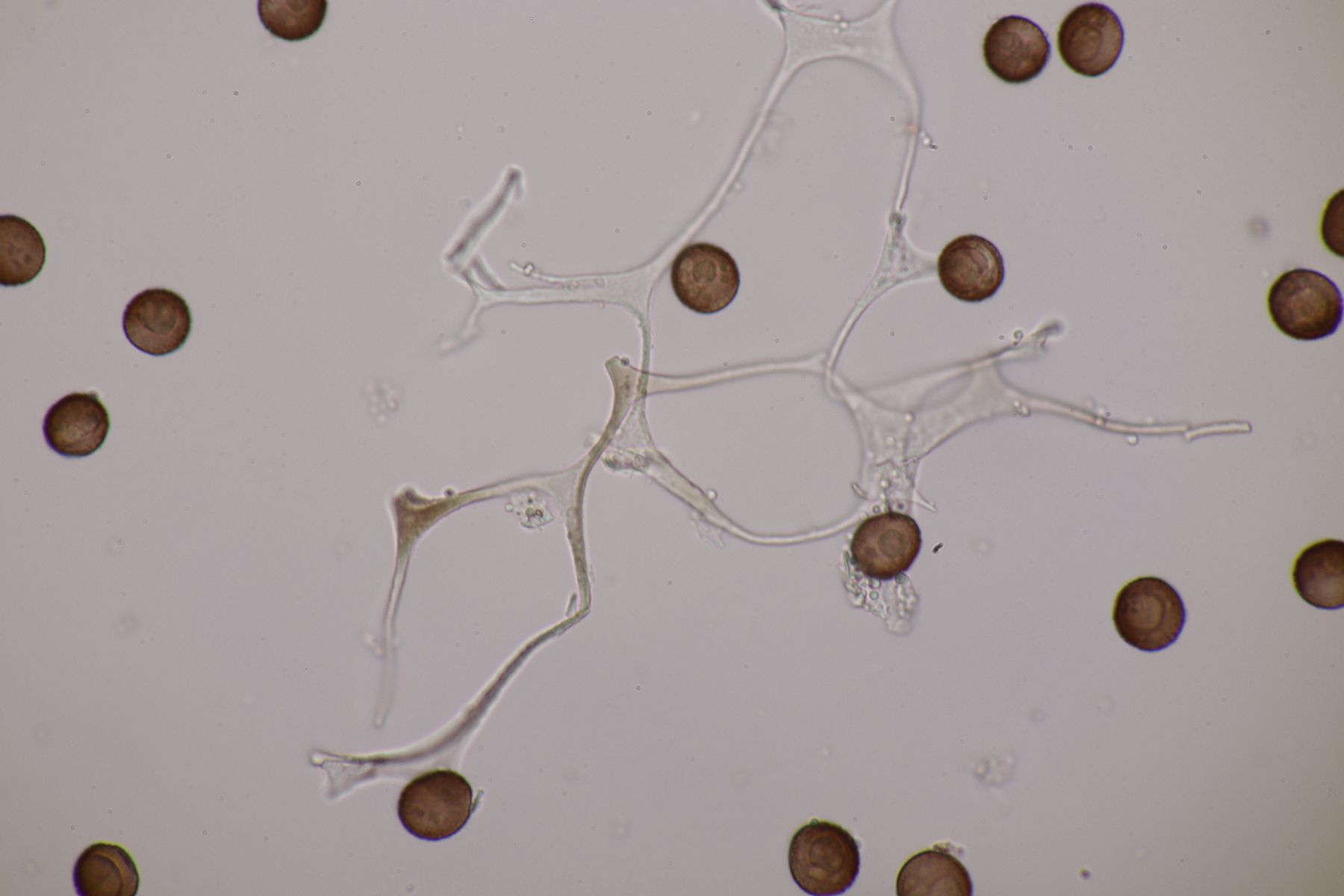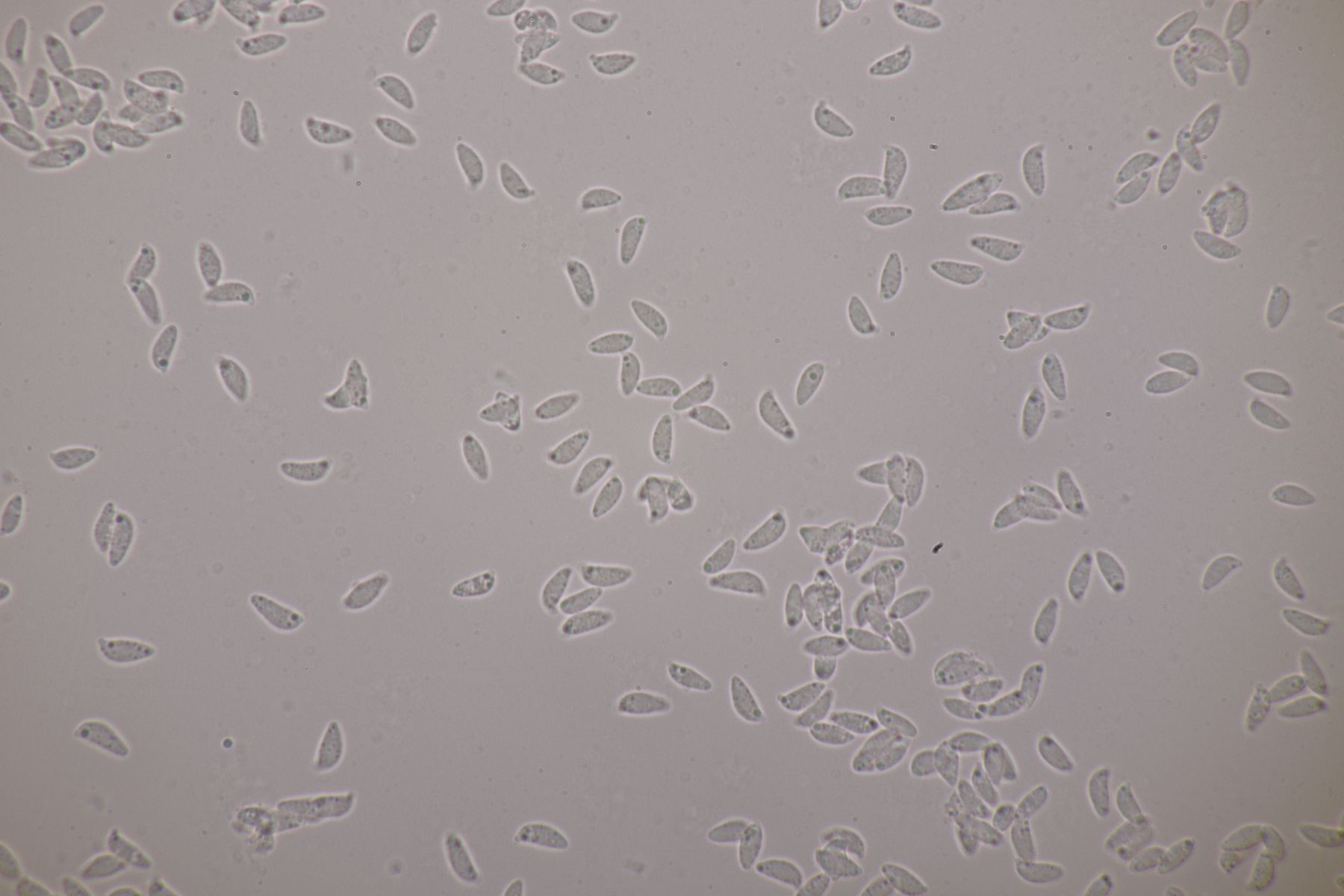 10. Noch ein Schleimpilz mit Sporen von 9-11 µm. Hier fehlt mir allerdings jegliche gute Idee... lamproderma
