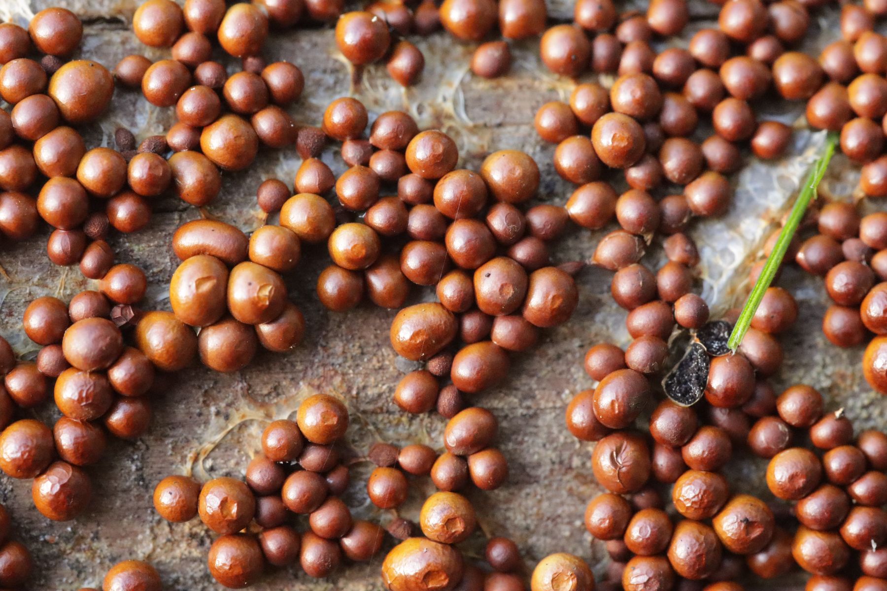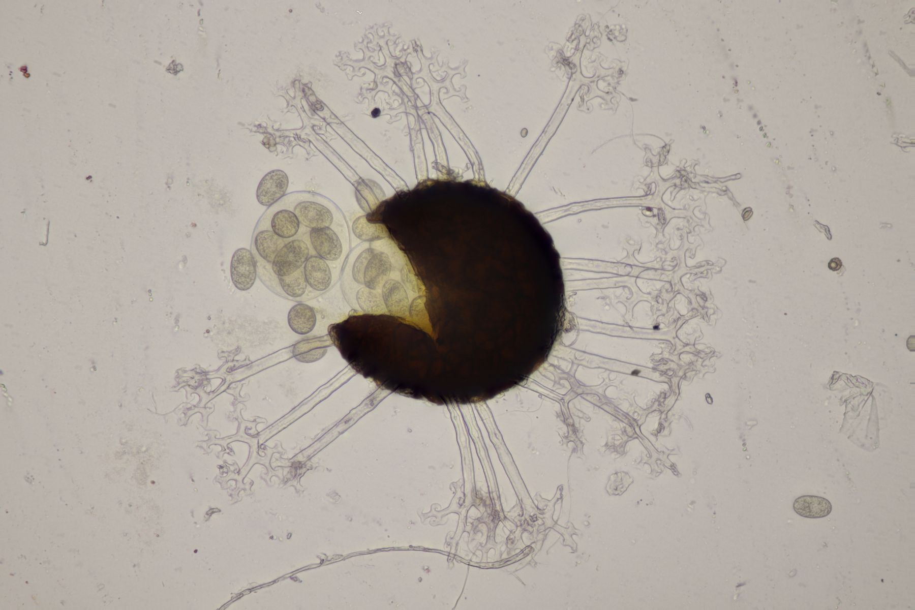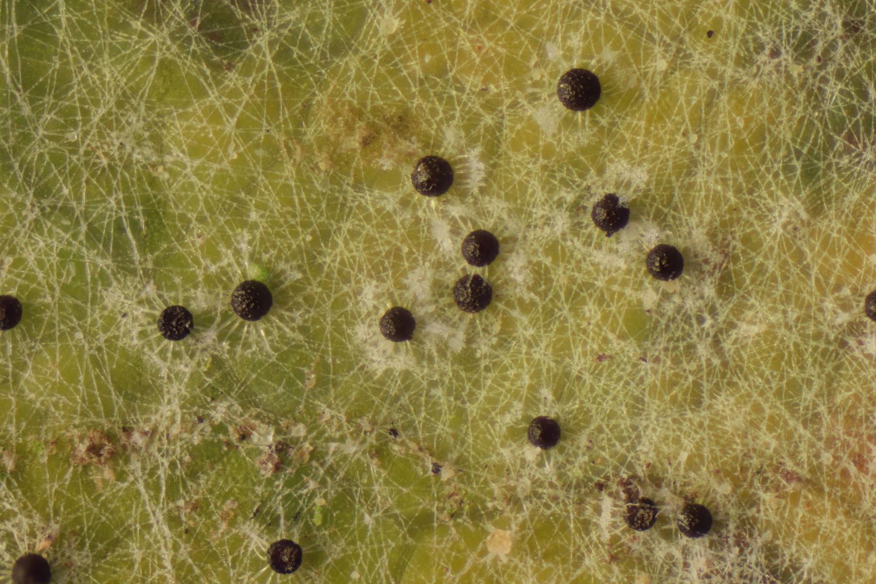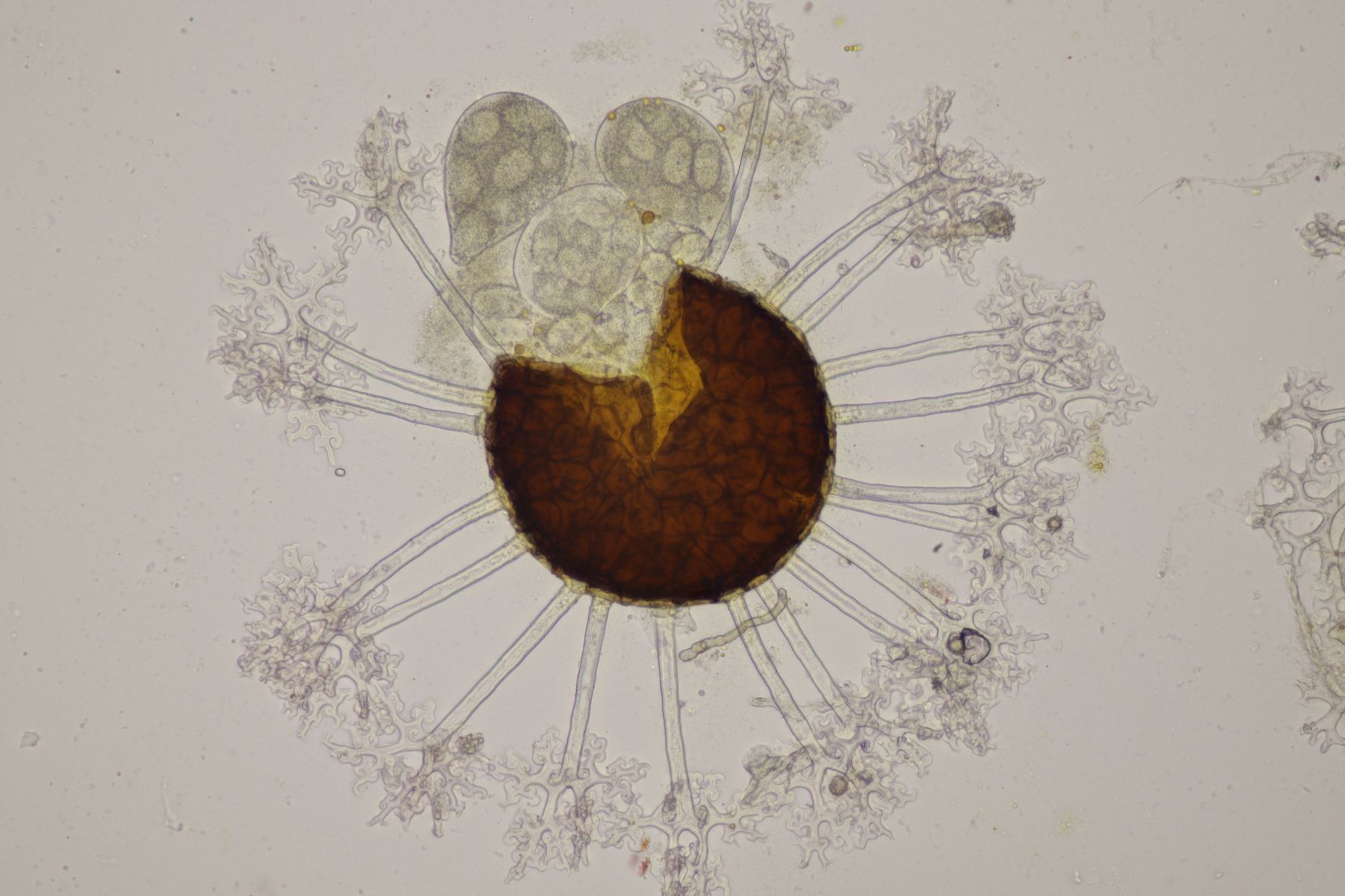 10. Noch ein Schleimpilz mit Sporen von 9-11 µm. Hier fehlt mir allerdings jegliche gute Idee... lamproderma