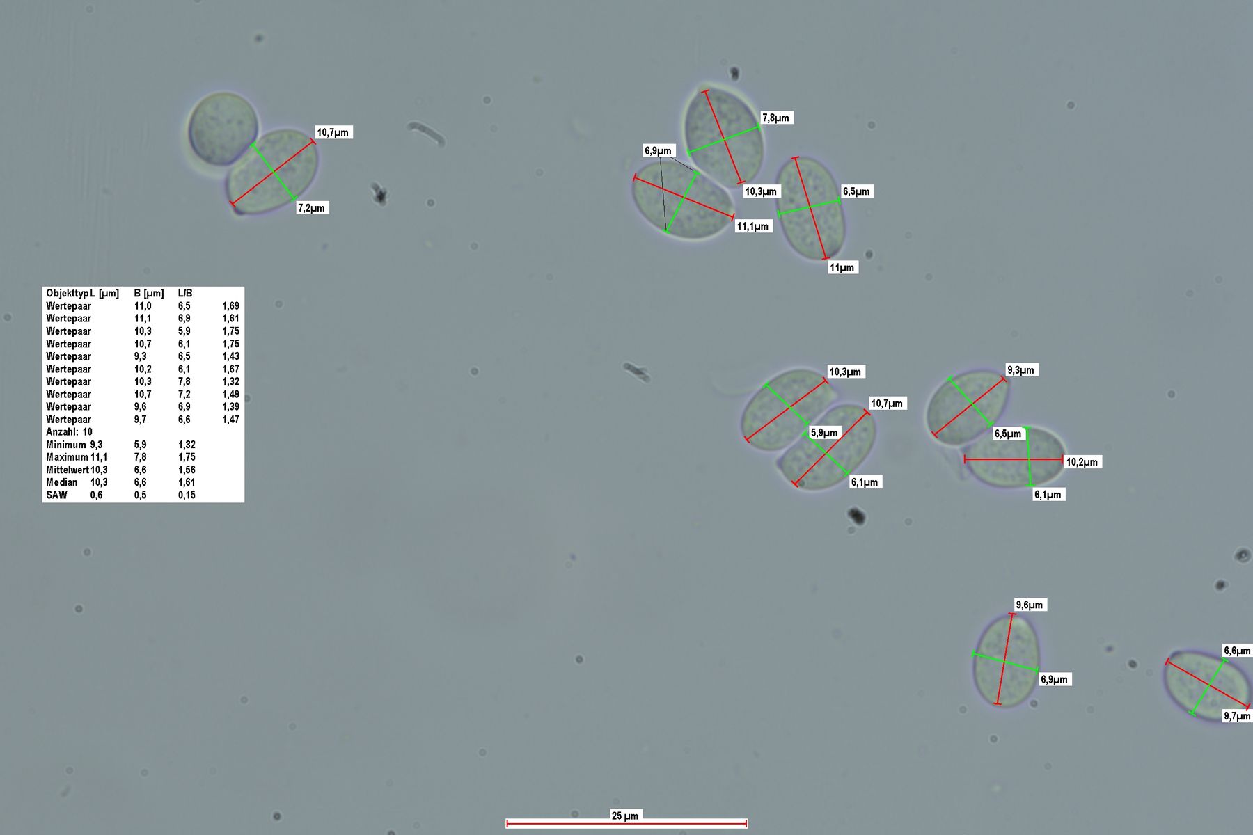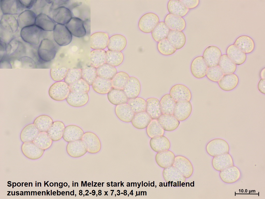 Das SPP ist weiss, die Sporen sind recht groß 9-11 x 6-7 und ellipsoid.