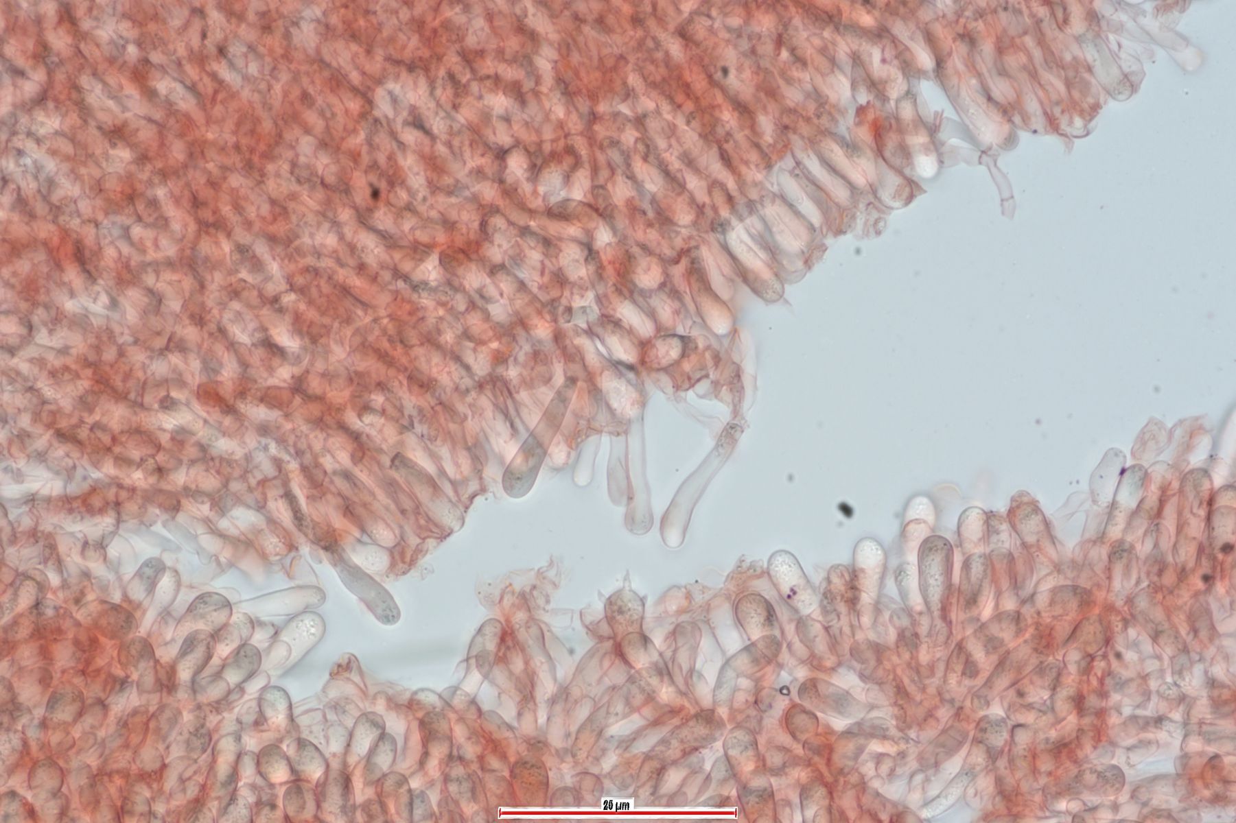 Hier die Basidiolen, Basidien mit Sterigmen sind kaum zufinden