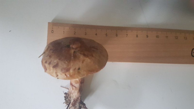 Hutoberfläche war sehr schleimig, Stiel ringlos, Stiel zur Basis hin etwas breiter, Geruch etwas ledrig.