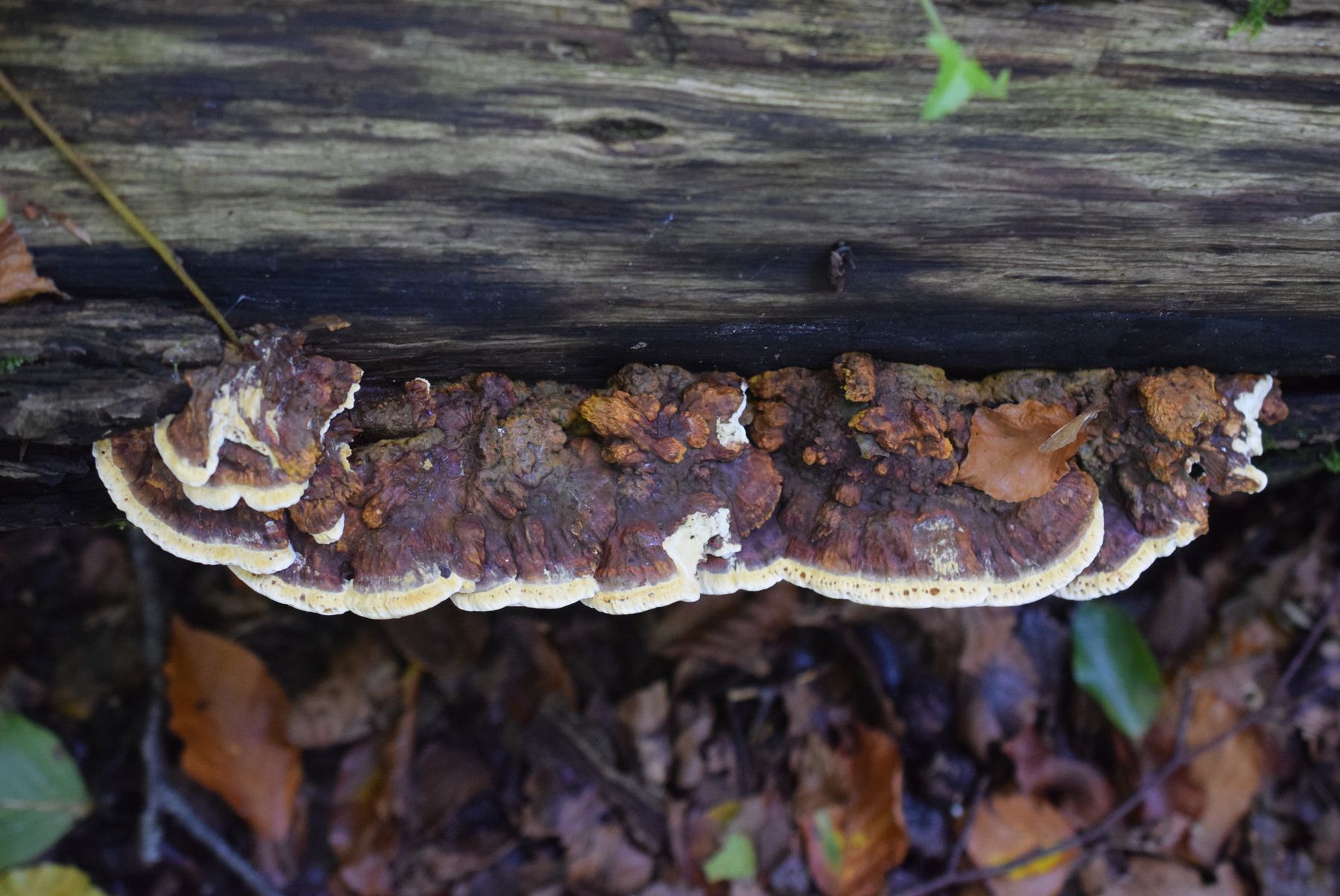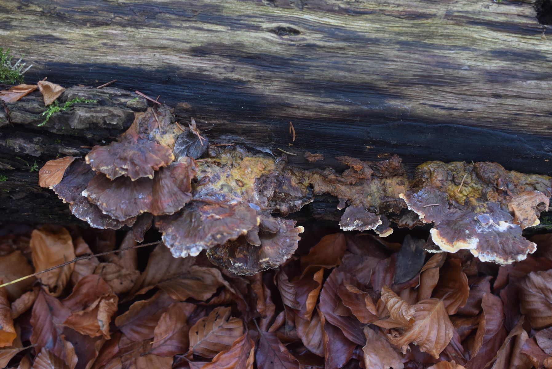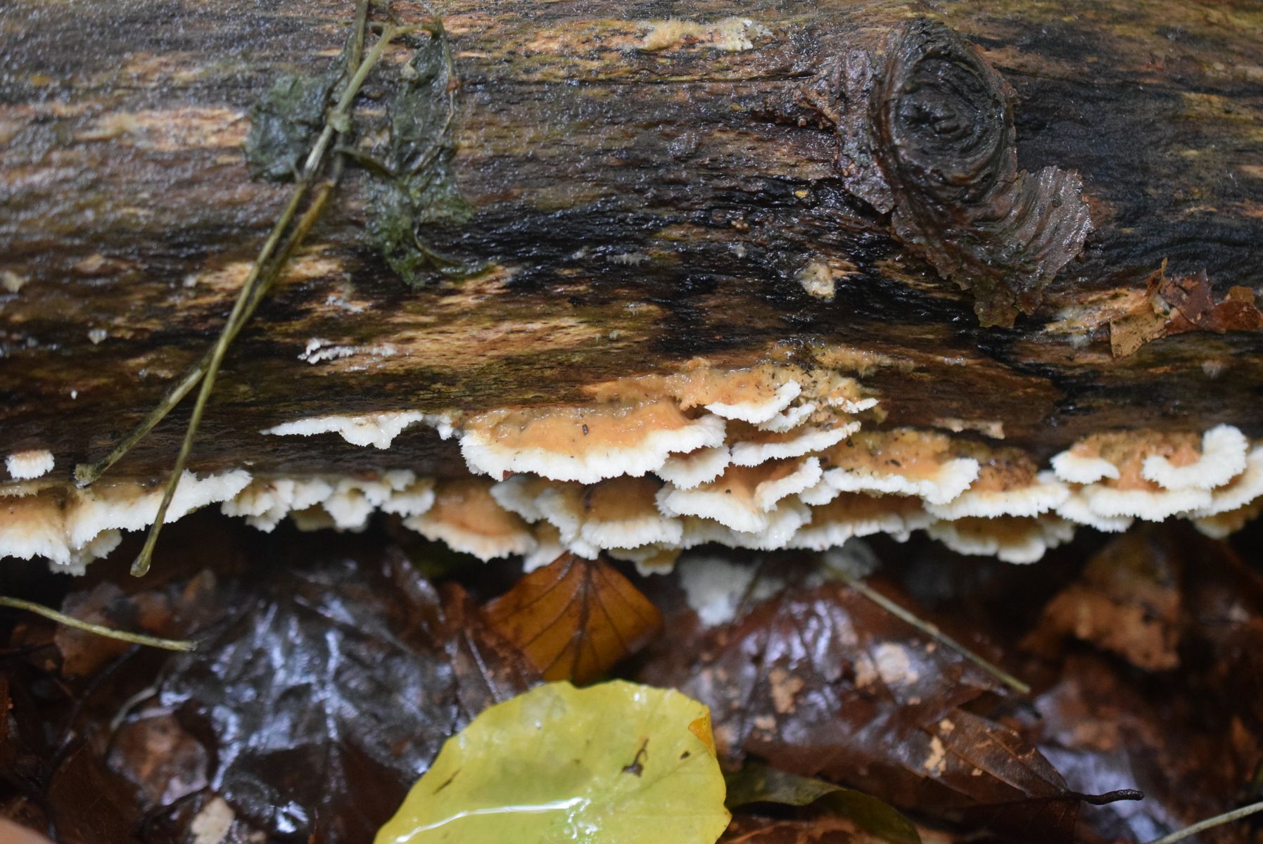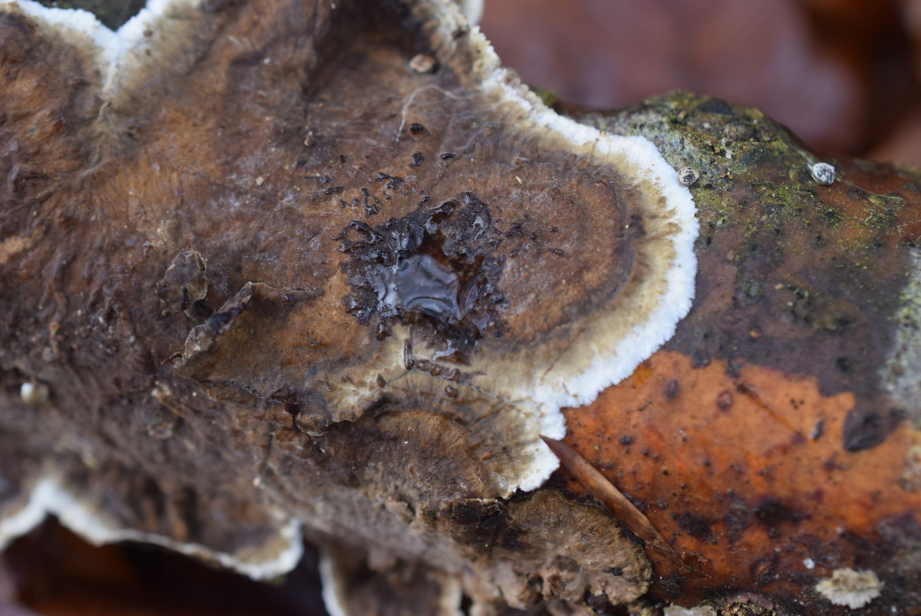 Ich habe an 2 verschiedene Stelle Pilze ( vermutliche Hymenochaete tabacina ) gefunden
