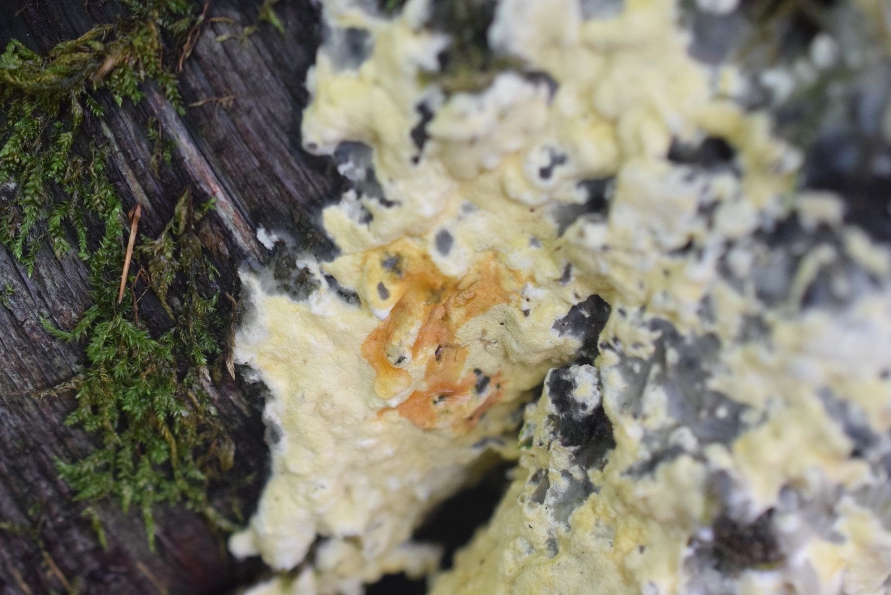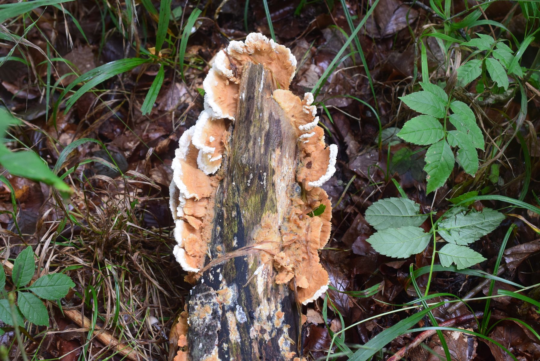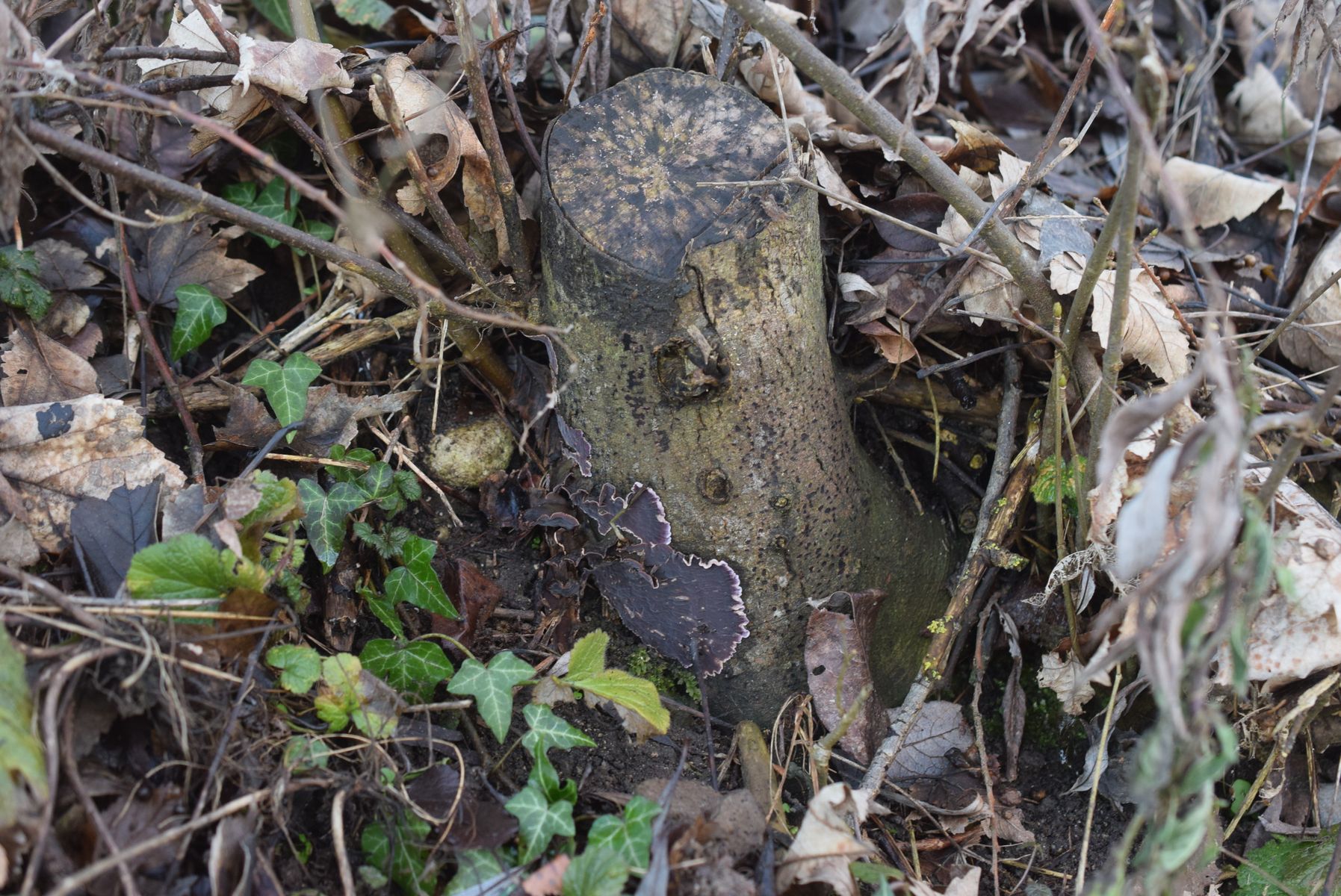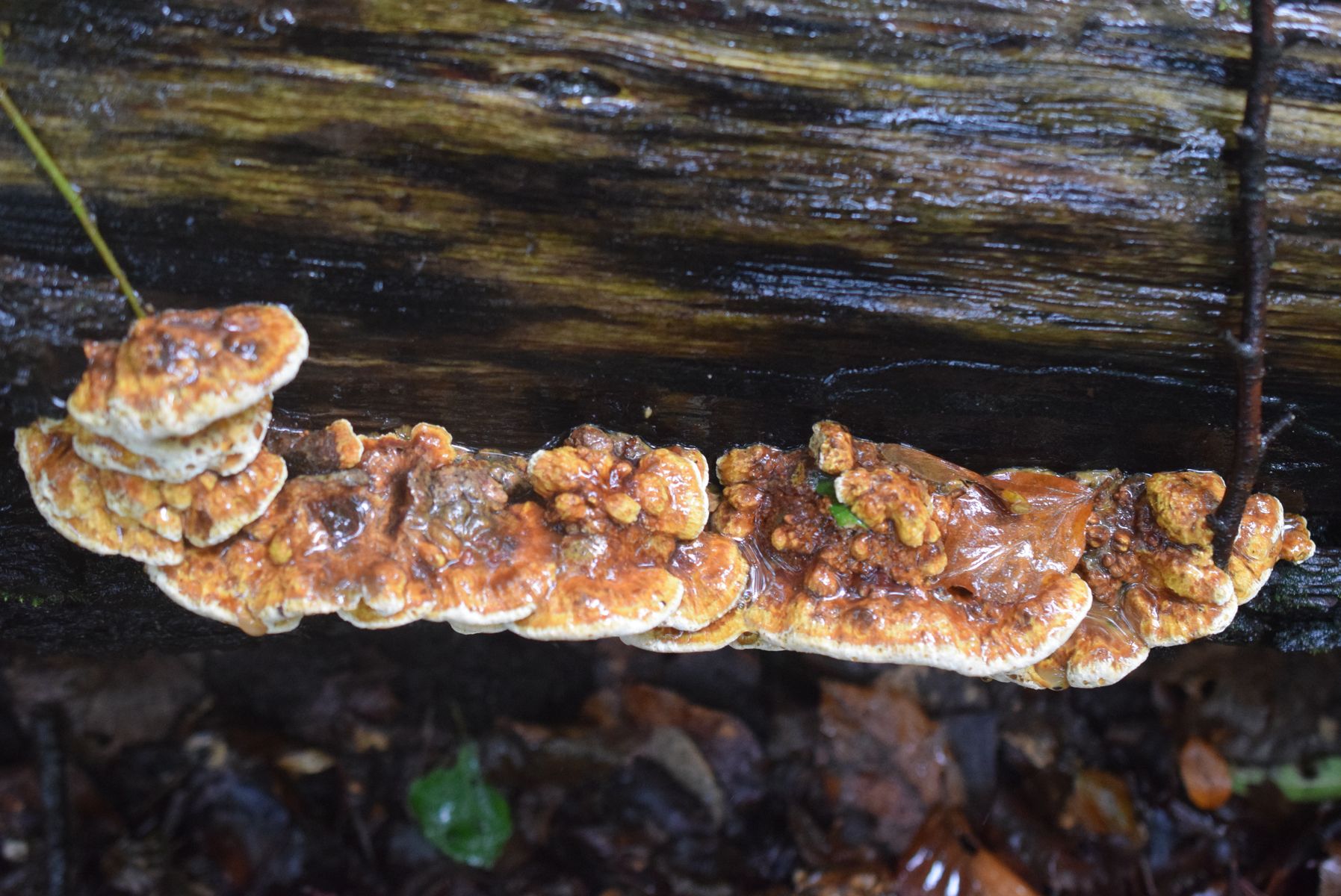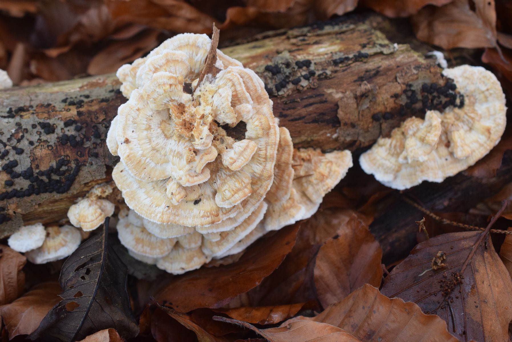 Ich habe an 2 verschiedene Stelle Pilze ( vermutliche Hymenochaete tabacina ) gefunden