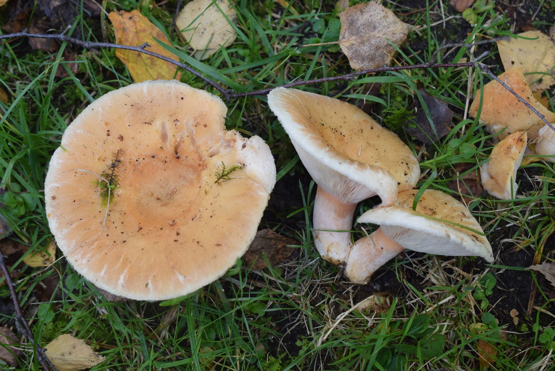Deine weiße Nebelkappe ist bestimmt eine Lepista. Die Lamellen sind deutlich ausgebuchtet. Ich würd L. irina vermuten.