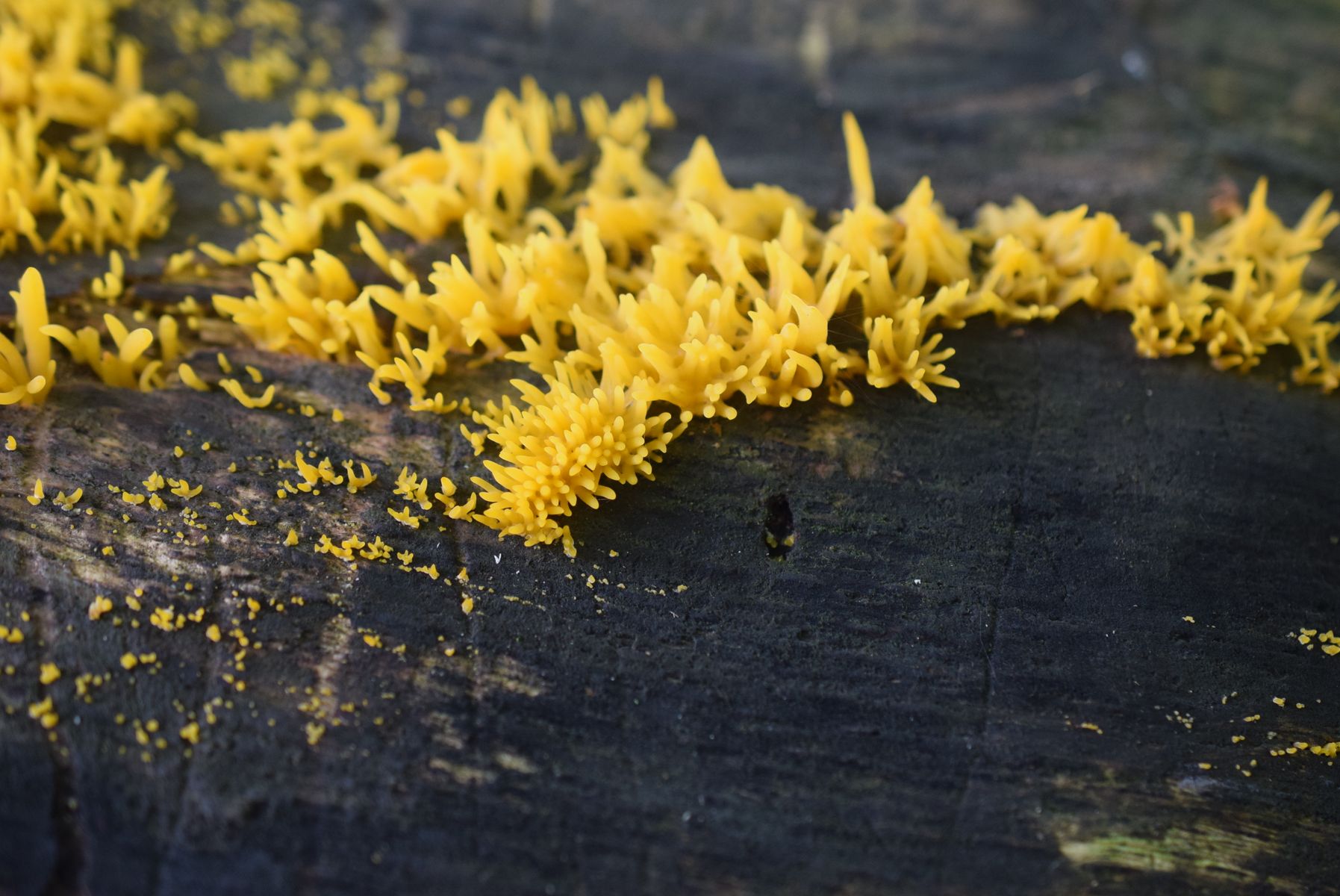 Kann Calocera cornea bildet so viele Fruchtkörper ( für Mucronella zu groß , oder ? ) Hab schon mehrere mal C. cornea gefunden aber so viel in gruppe noch nie gesehen .