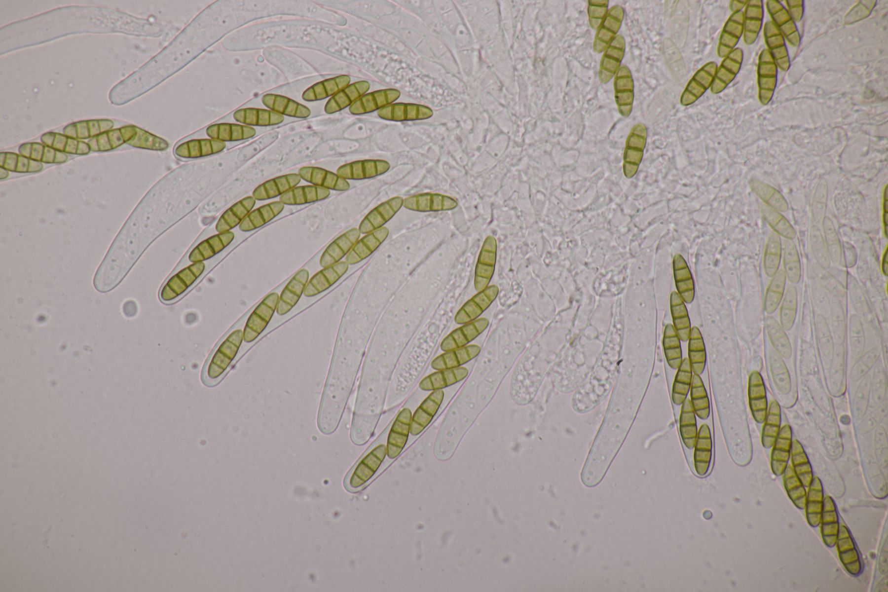 Helvella fuscolacunosa paßt zumindest von der Sporengröße her ganz gut. Aber irgendwie werde ich mit den Helvellas nicht so richtig warm...