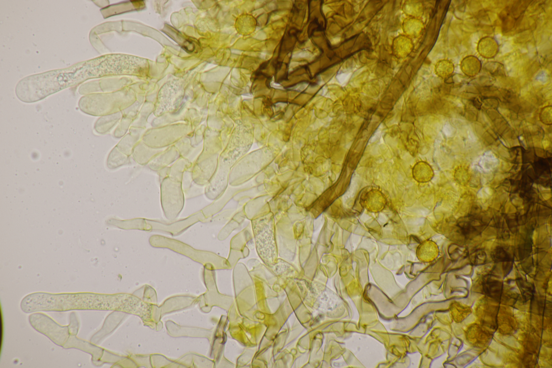 10. Hier haben wir im Feld gerätselt, was das für seltsame Stäublinge sein mögen. Mikroskopisch zeigte sich dann ein Capillitium ohne Poren und Septen, mit Paracapillitium untermischt, dazu praktisch glatte Sporen ohne Pedicel von 3,1-3,8 µm Durchmesser. Also Apioperdon pyriforme.