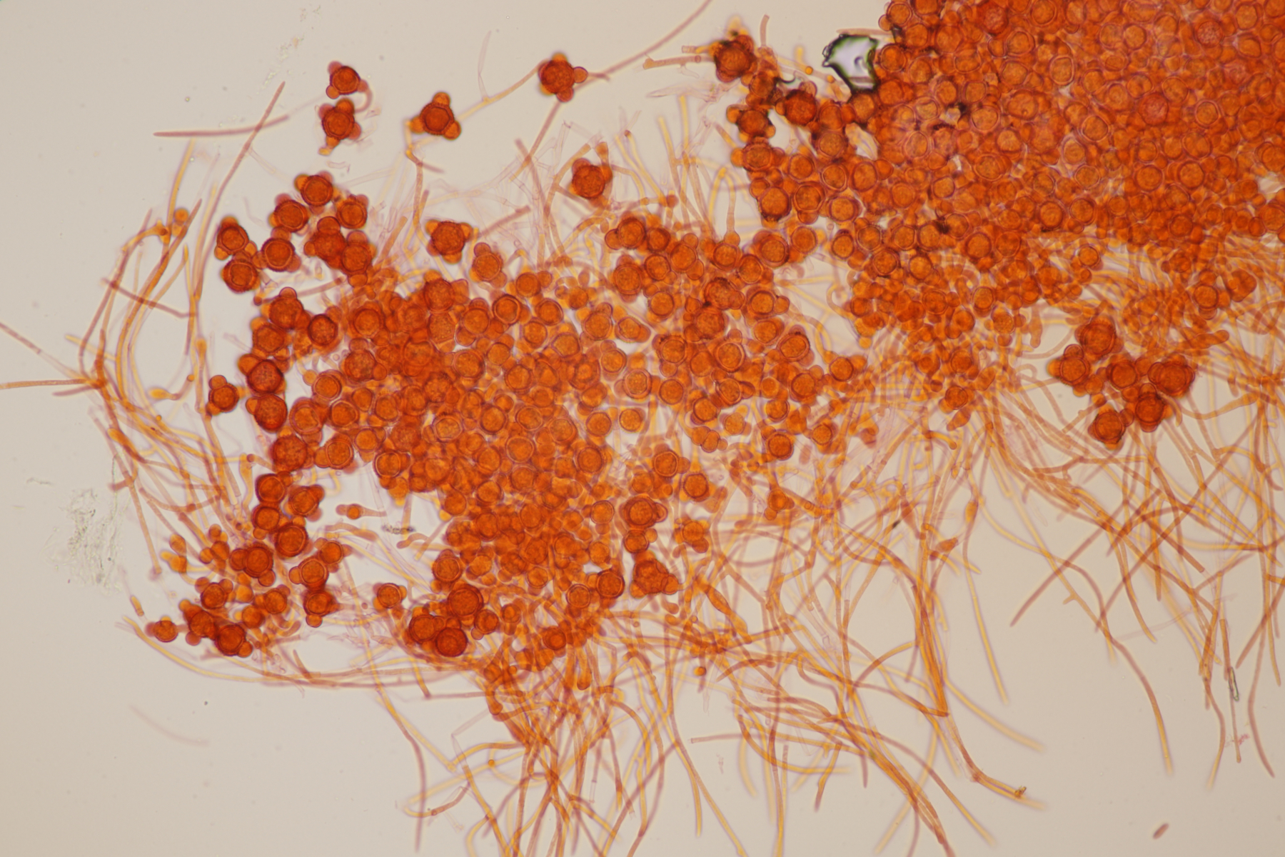 1. Puccinia phyllostachydis ex Phyllostachys sp. Der einzige bekannte Fundort dieses Pilzes, der an den septierten Paraphysen der Uredien gut erkennbar ist.