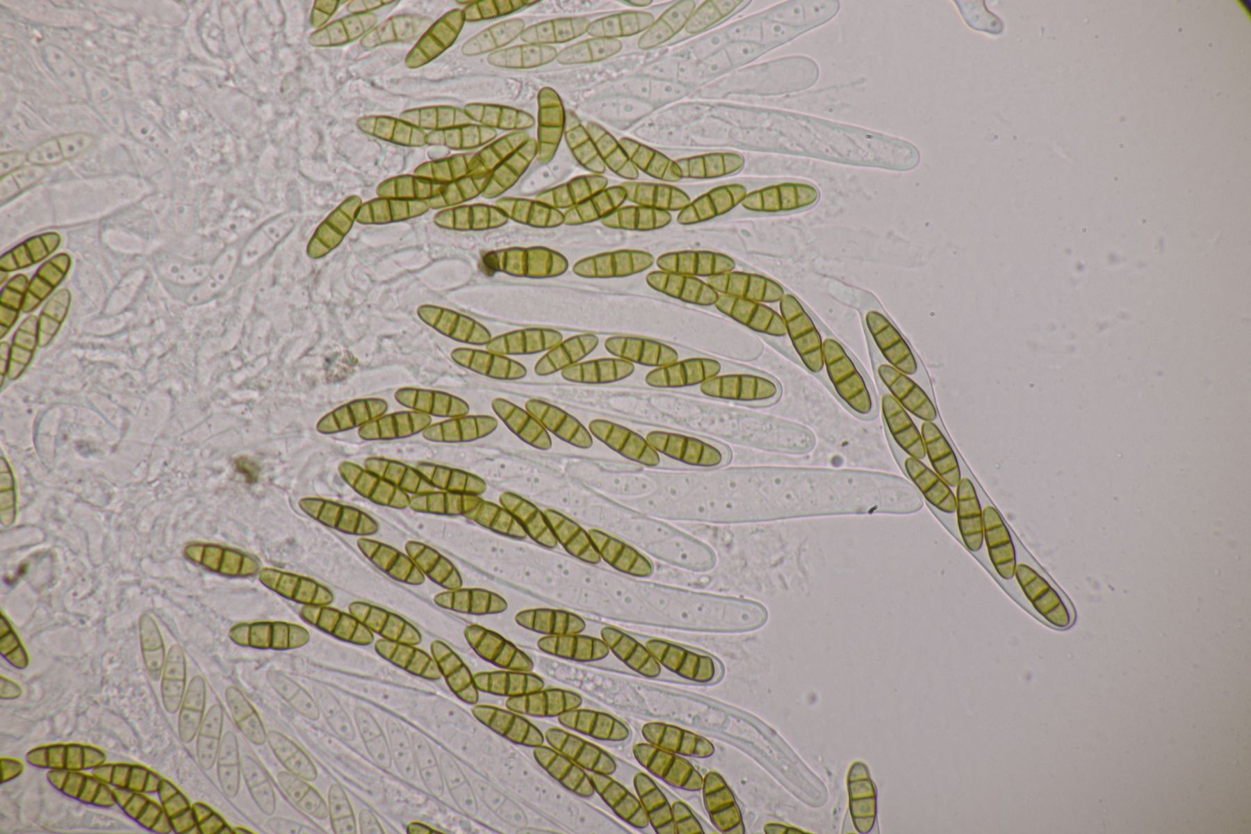 Helvella fuscolacunosa paßt zumindest von der Sporengröße her ganz gut. Aber irgendwie werde ich mit den Helvellas nicht so richtig warm...