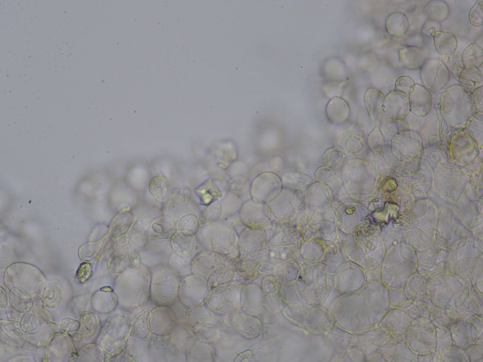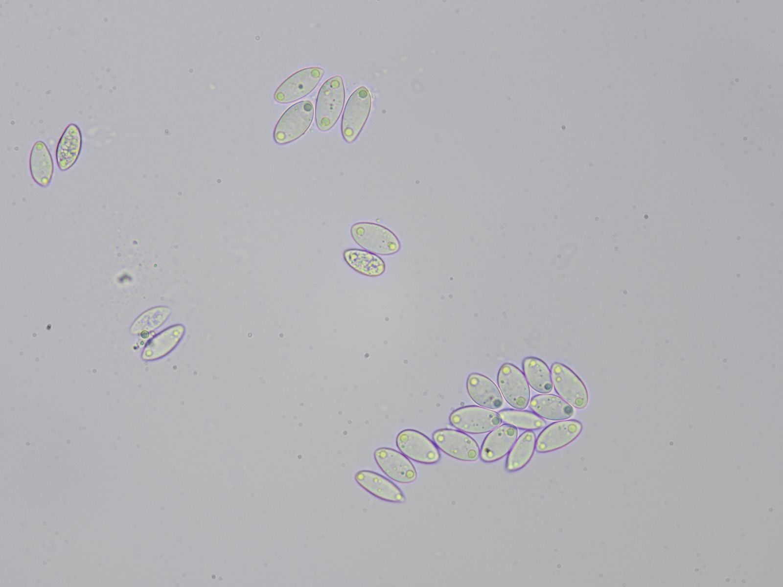 Sporen mit zwei Öltropfen und einem Kern. Nach zwei erfolglosen Abwurfversuchen hab ich den Becher einfach gefüllt, wie einen Whiskey geschwenkt um ihn dann auf einem Objektträger auszuschütten- das hat schließlich geklappt. Warum bin ich nicht gleich drauf gekommen.