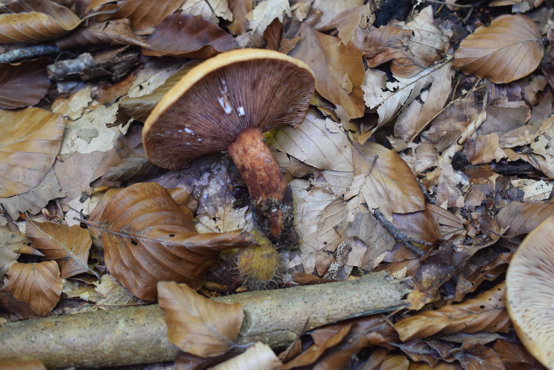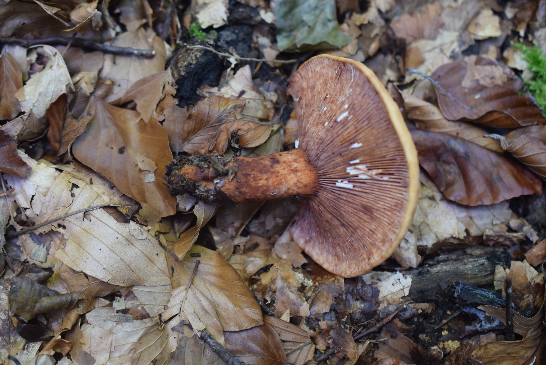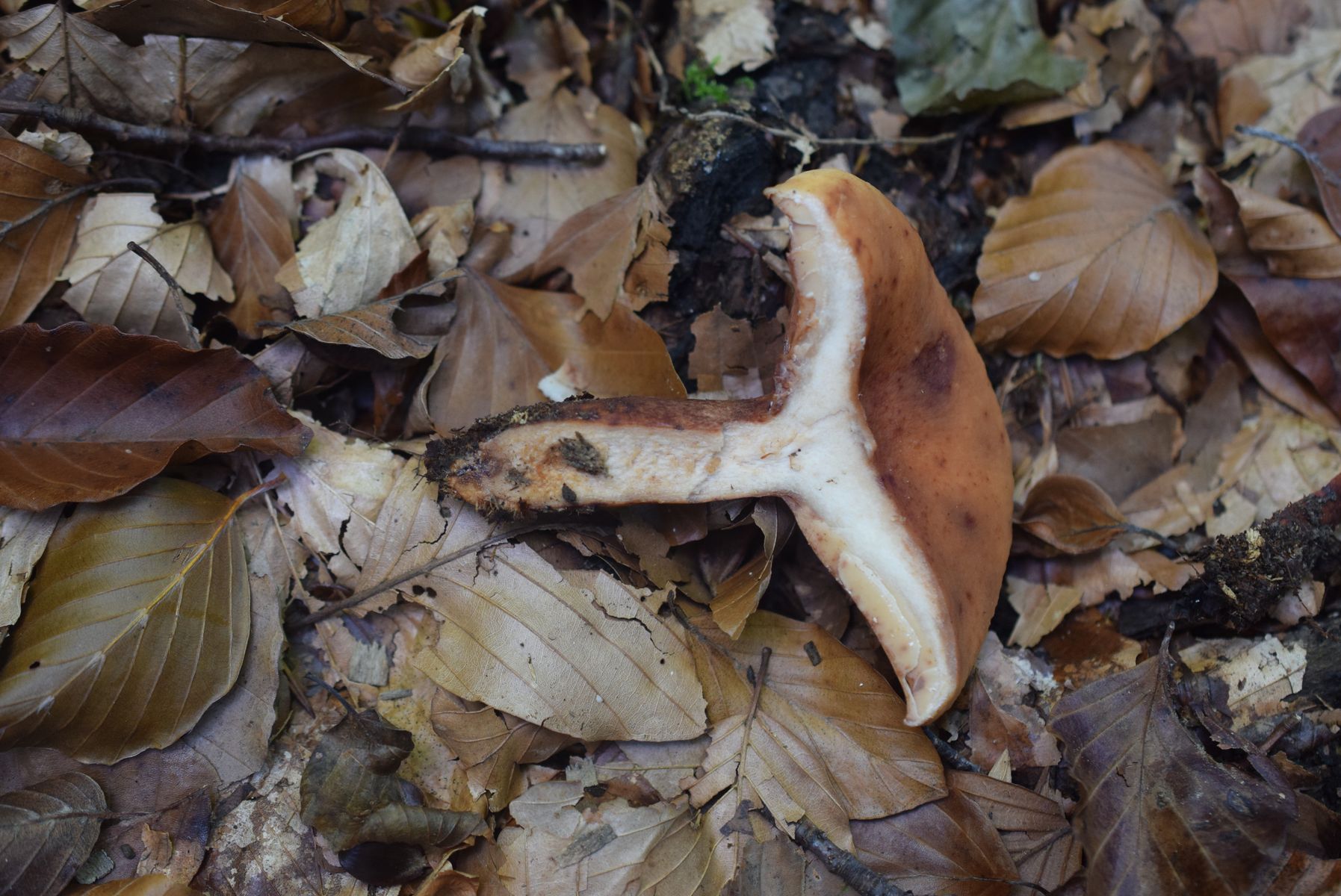 Fundort Bayern , dominiert dicke alte Buche , ein paar ( 2- 3 ) Tannen und etwas weiter ( unten 50 Meter ) dicke alte Fichte , auch noch andere Laubbäume . Boden kalkig , gleich in nähe ich finde jahreslang Cortinarius praestans - Tricholoma filamentosum und Rubroboletus satanas , also Kalkreiche Boden .