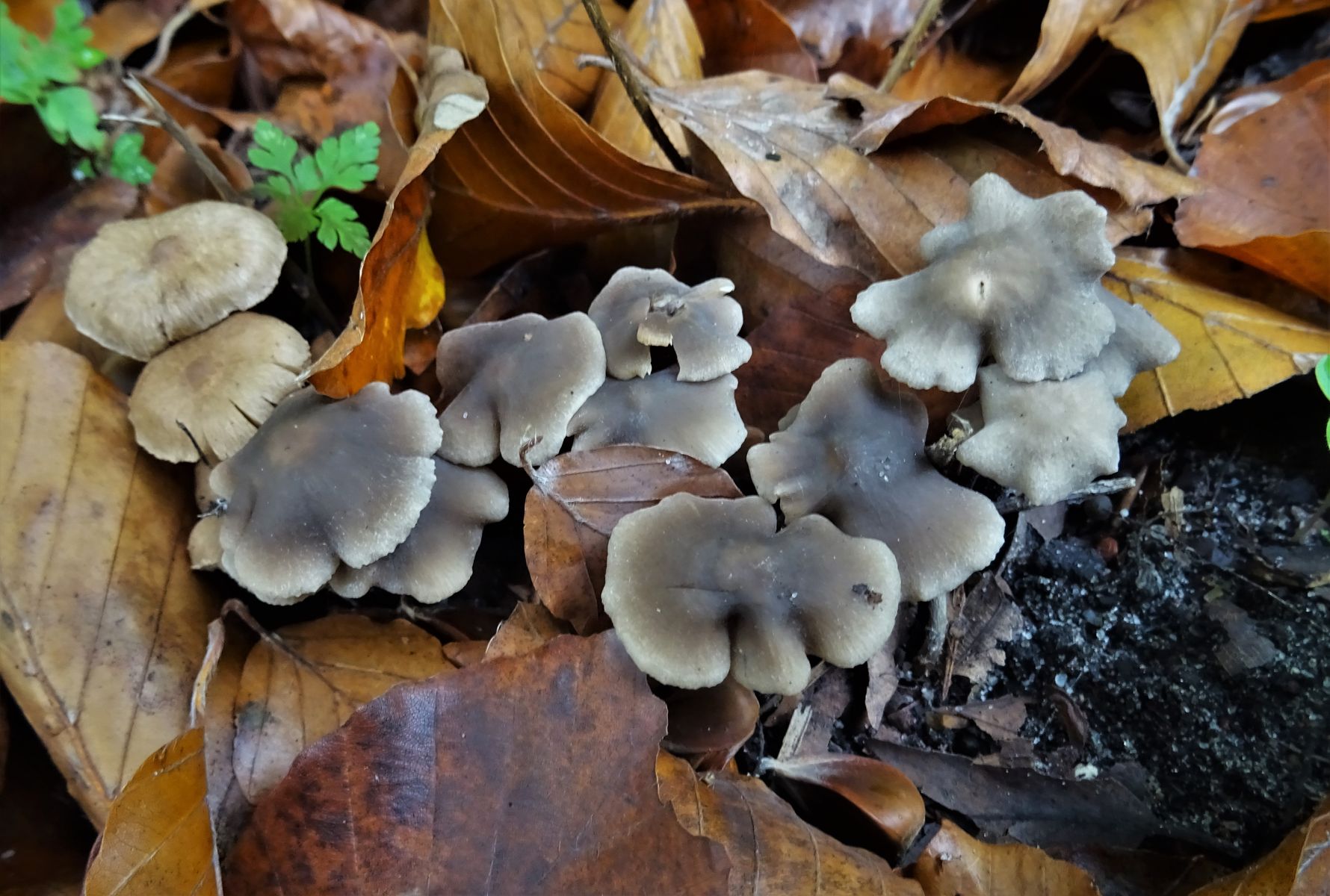 Die beiden Hüte oben links auf dem ersten Bild gehören aber zu einer anderen Pilzart, nicht zu Lyophyllum / Tephrocybe, sondern das könnte zB ein Risspilz sein.Lg; Pablo.