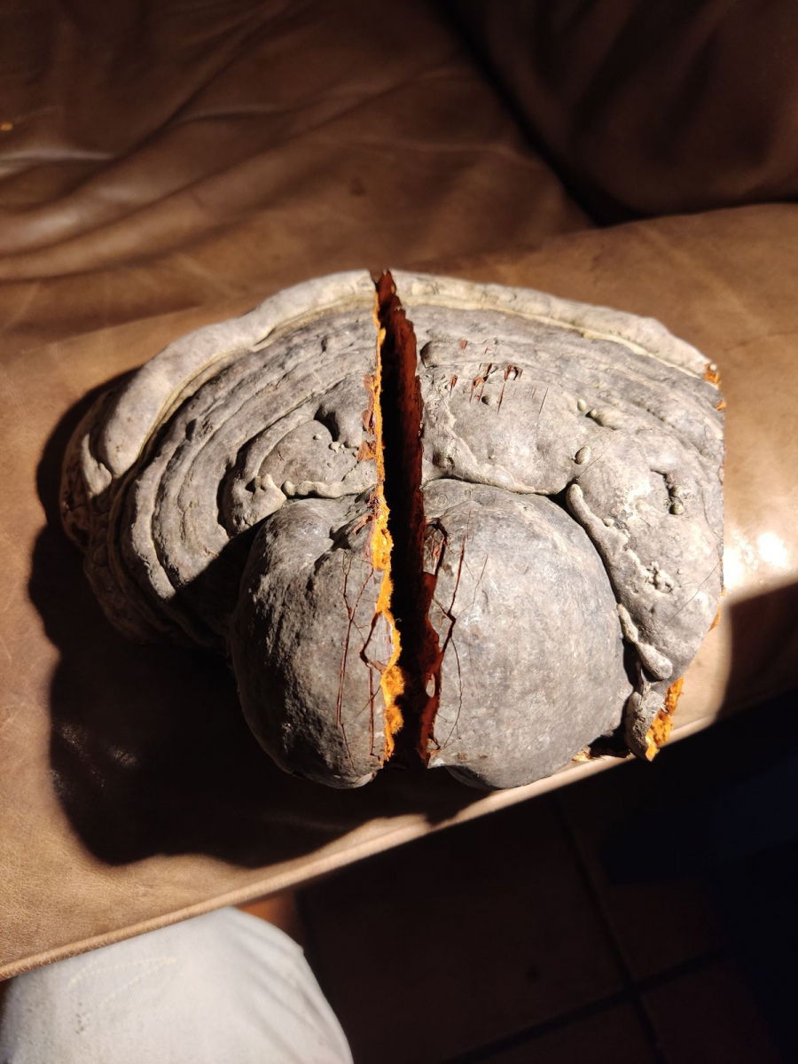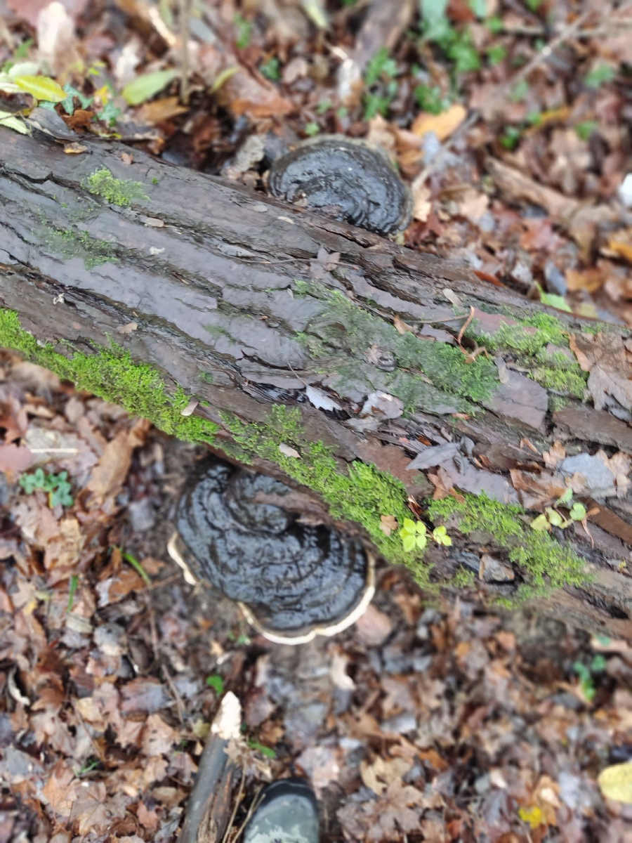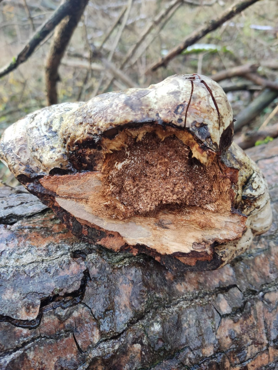 Fundort Bzchen - Eichenmischwald, Substrat tote Eiche denk ich. Vor zwei Wochen waren alle Pilze steingrau, etwas dunkler als der Aufgeschnittene, jetzt sind sie schwarz glänzend, Wetter ist nass, Regen. Poren sind beschreibbar! Danke!