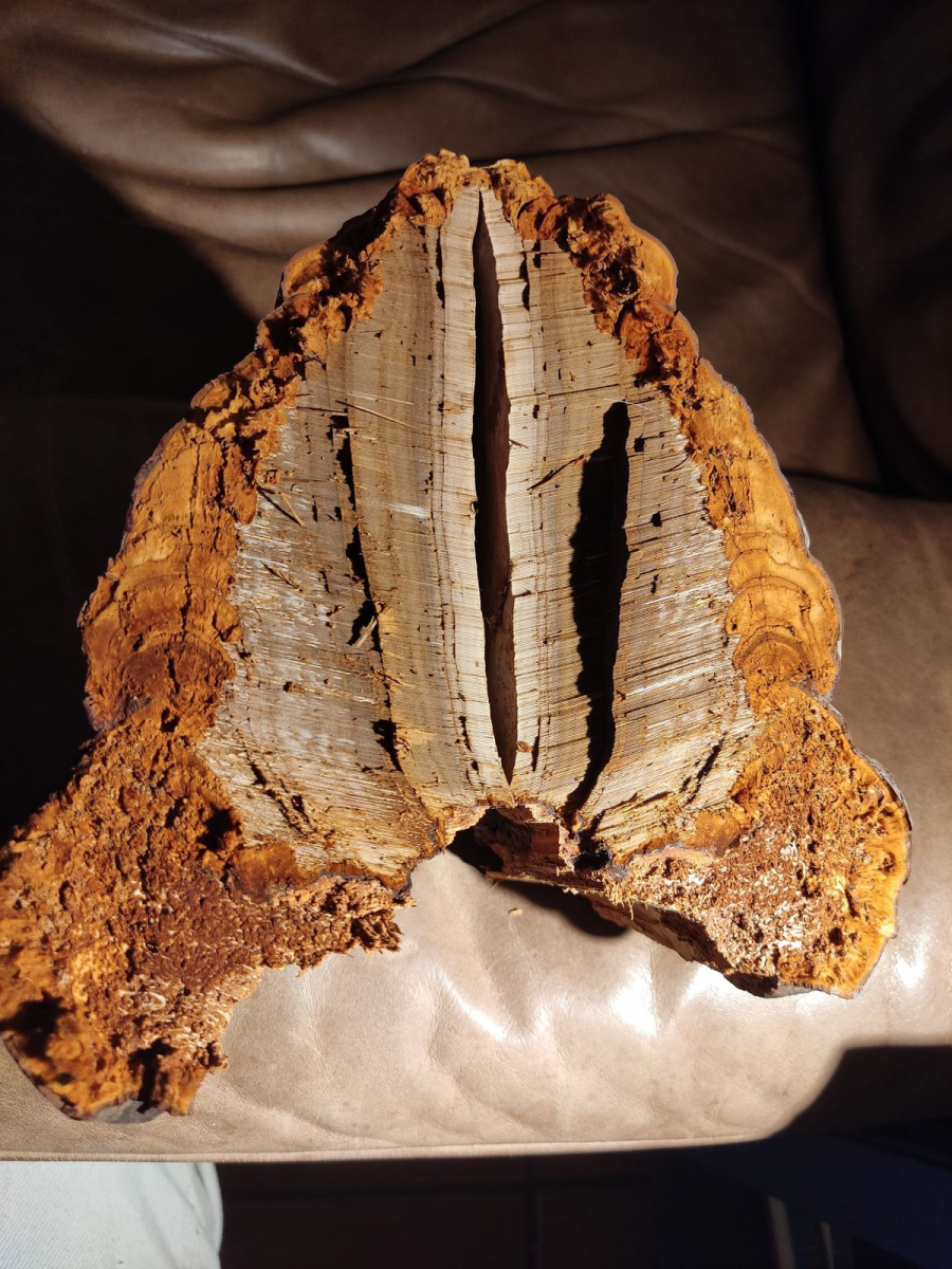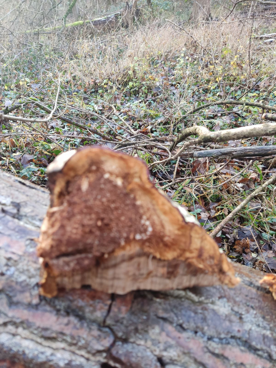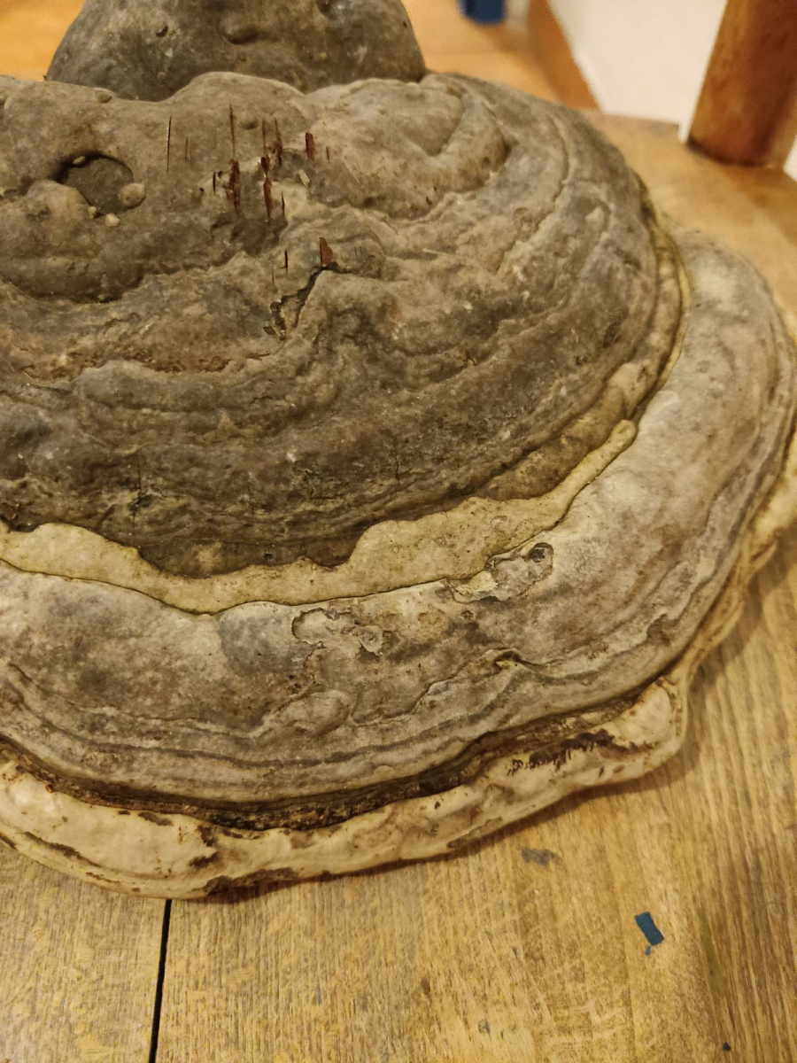 Fundort Bzchen - Eichenmischwald, Substrat tote Eiche denk ich. Vor zwei Wochen waren alle Pilze steingrau, etwas dunkler als der Aufgeschnittene, jetzt sind sie schwarz glänzend, Wetter ist nass, Regen. Poren sind beschreibbar! Danke!