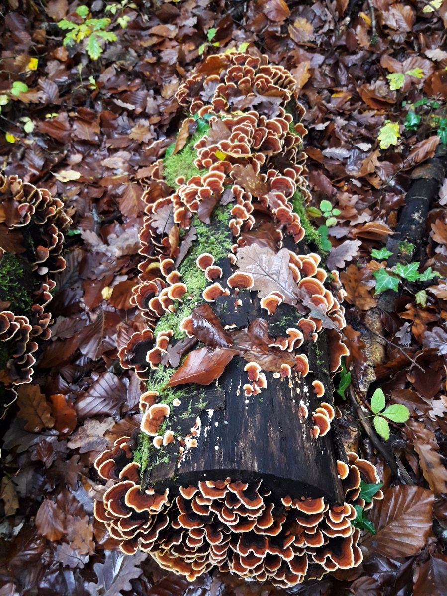 • Diese alte Buche steht schon lange so im Wald, ganz oben sieht man ein paar Pilze, kann man aber nicht genau erkennen.