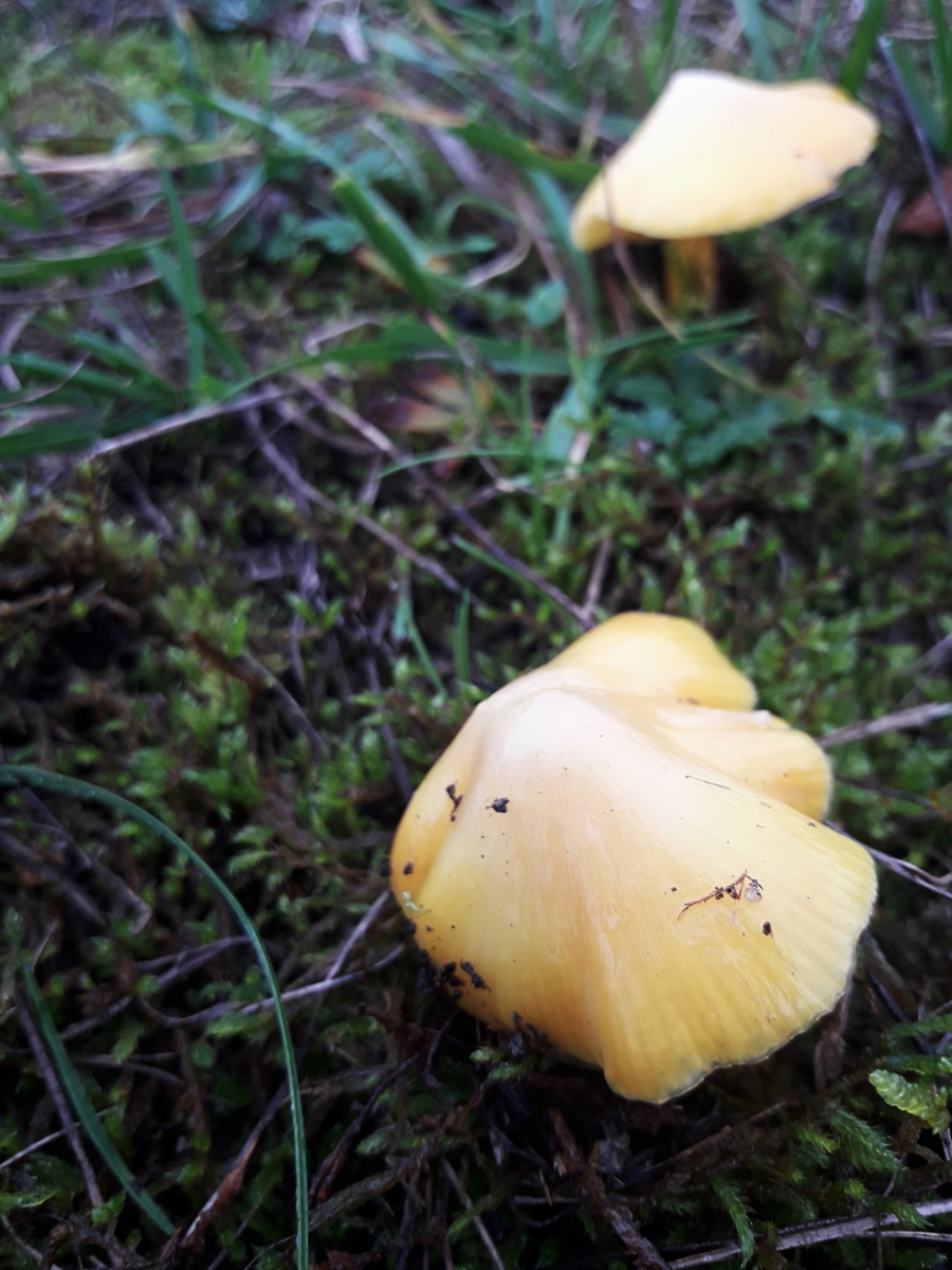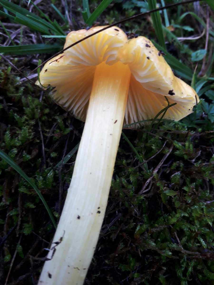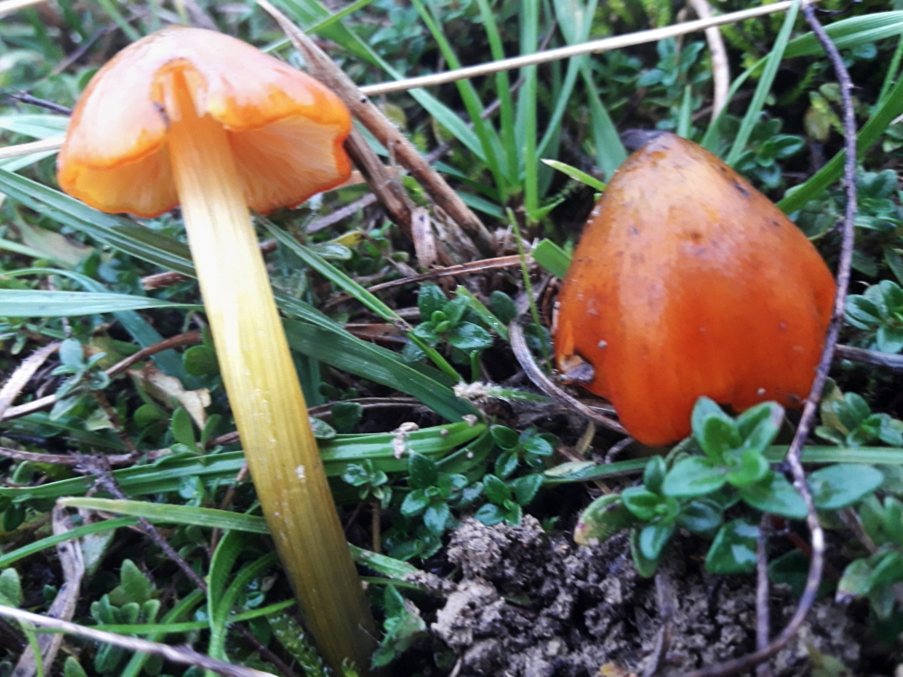 Nr. 7 auch auf der Kalkwiese gefunden, Hut und Stiel schleimig, vielleicht safrangelber Saftling
