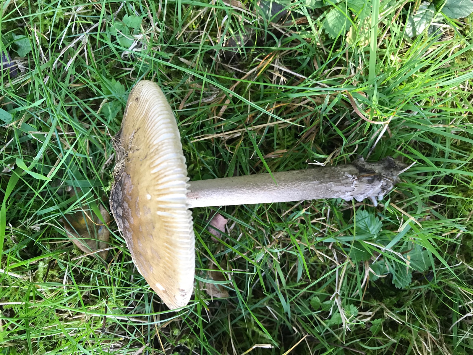 Anfang Oktober auf einer Wiese am Rande eines Laubwaldes gefunden. Er war stattlich, aber nicht riesig. Auffallend waren die kleinteiligen Velumflocken auf dem Hut, die ich so von Scheidenstreiflingen nicht kenne. Hab jetzt mal geblättert und lande bei Ananita ceciliae. Könnt ihr das bestätigen oder gibt’s noch andere Möglichkeiten?