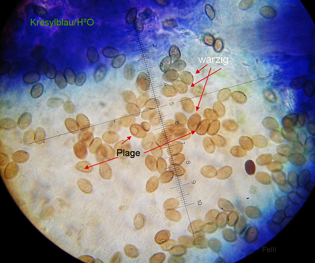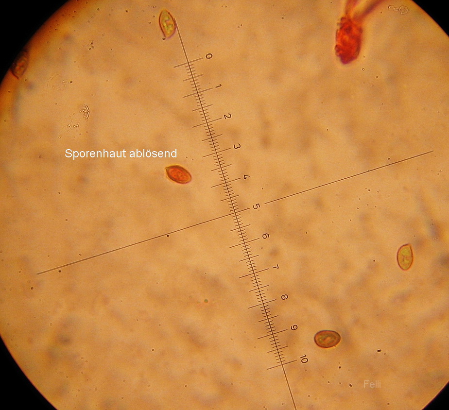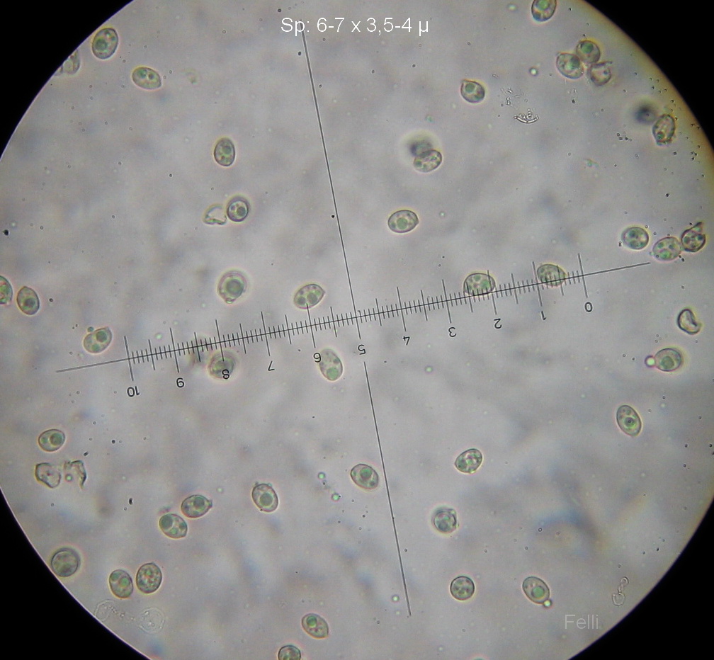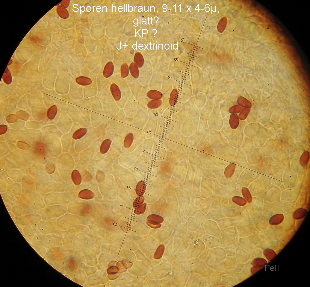 Sporen 9-11 x 4-6µ, glatt, ( evtl ganz fein rau) und deutlich dextrinoid