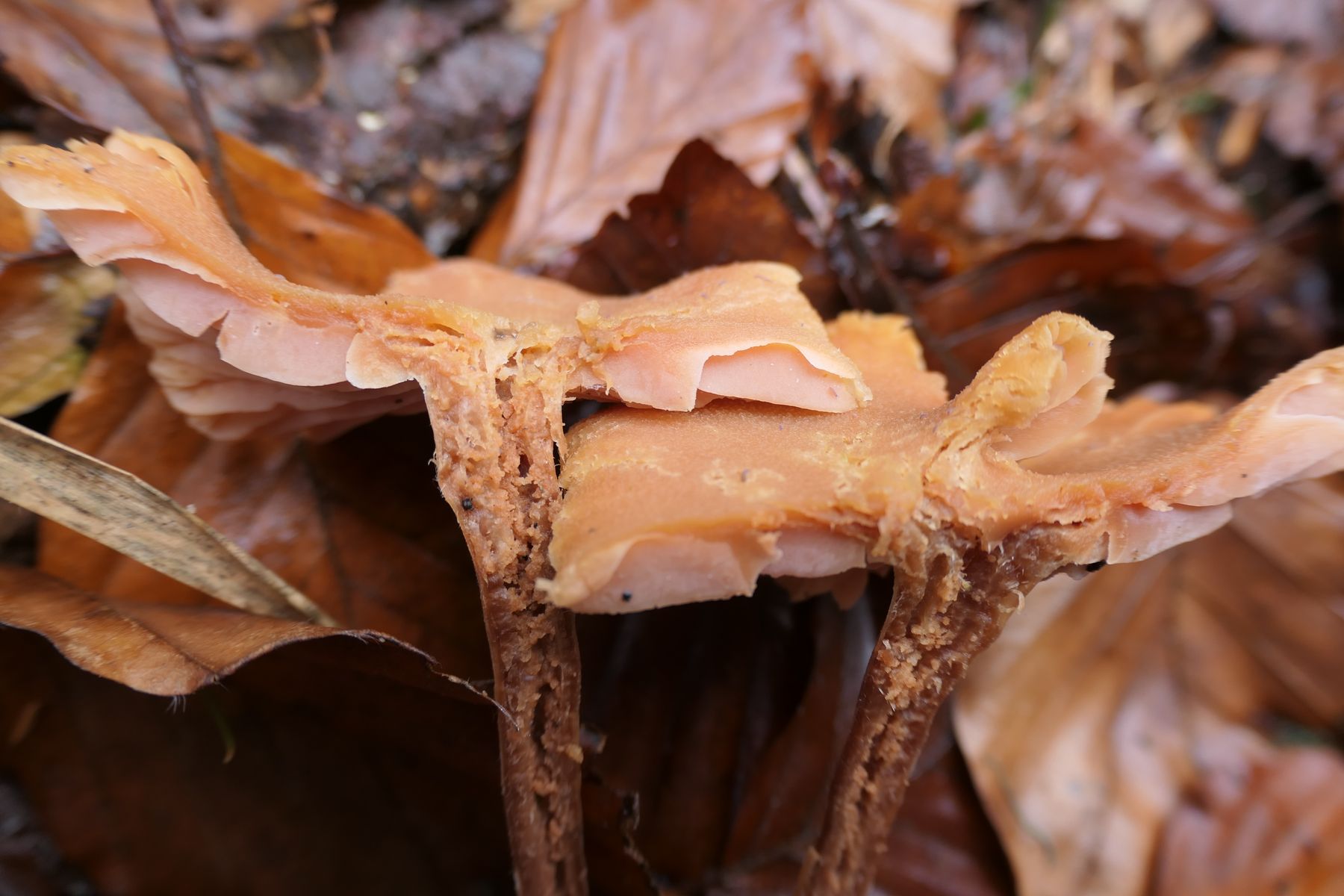 Das ist einer der rötlichen Lacktrichterlingen. Gibt ja ein paar davon.