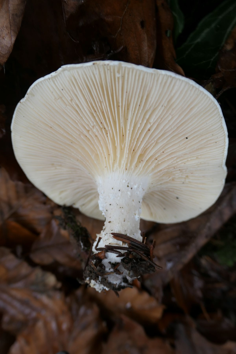 der Habitus, die Hutoberfläche und Lamellenhaltung bringen mich zum Mehlräsling, Clitopilus prunulus
