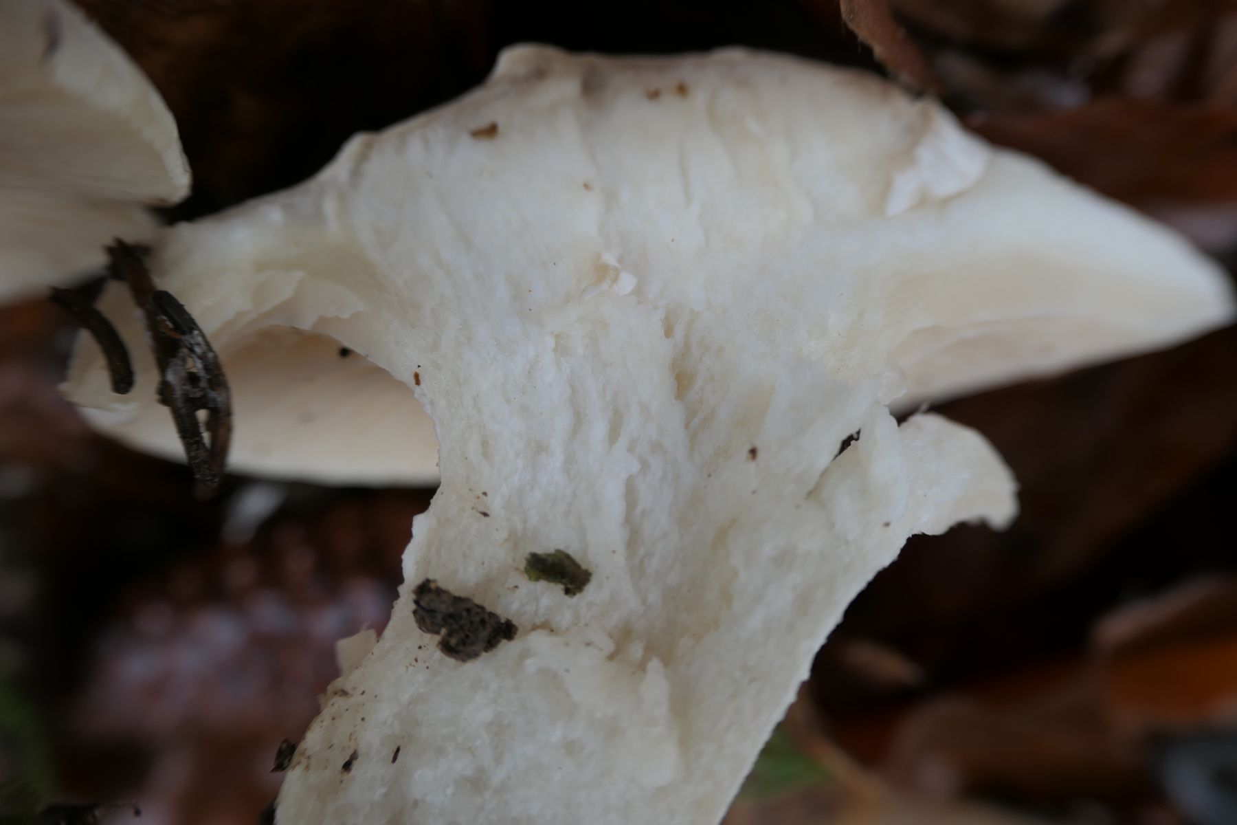 war heute nochmals bei diesem Pilz, am Standort sind mehrere +/- in einer Reihe, die Lamellen liessen sich sehr leicht vom Fruchtfleisch ablösen,