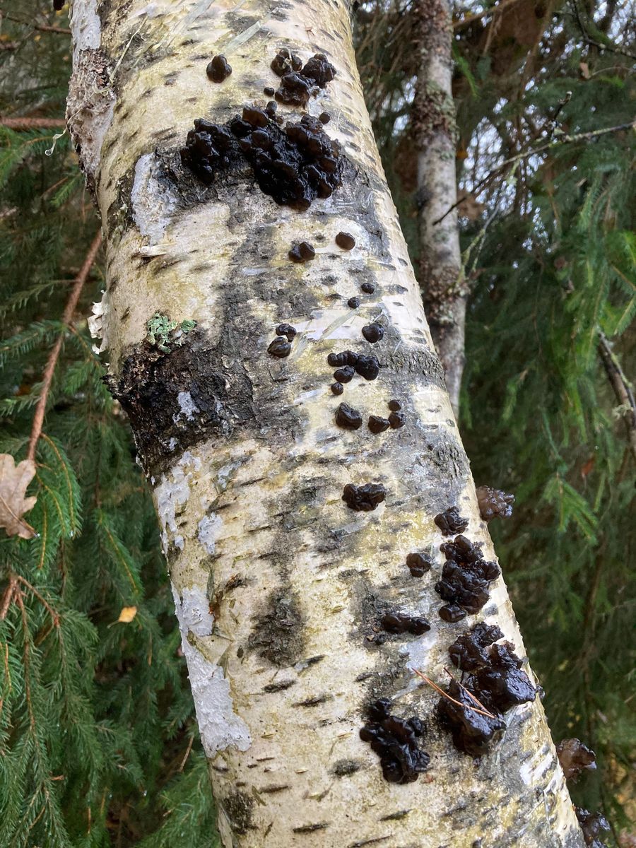Pilz 6: Sicherlich kein Chaga-Pilz, oder? Die Konsistenz der schwarzen "Fruchtkörper" war glibberig, gelartig. Wahrscheinlich überhaupt kein Pilz. Aber was ist es dann?