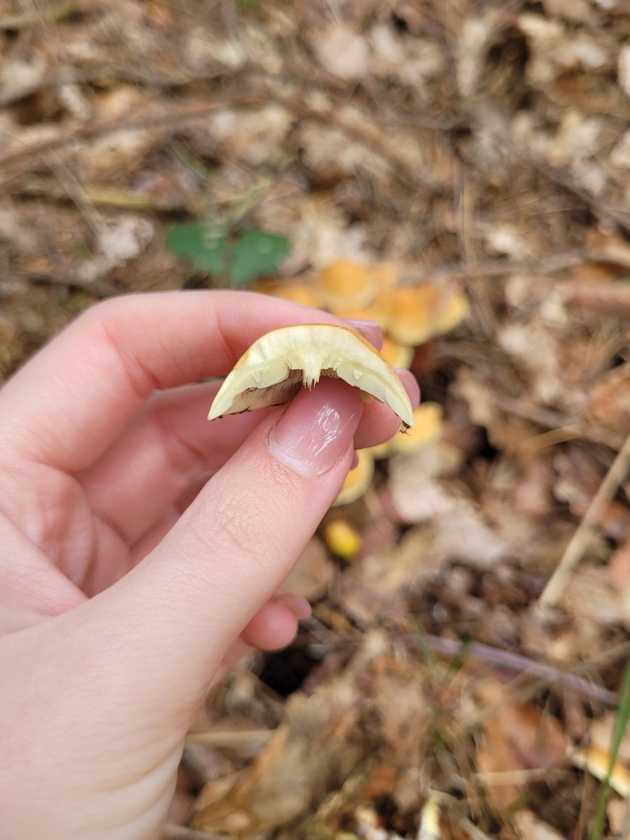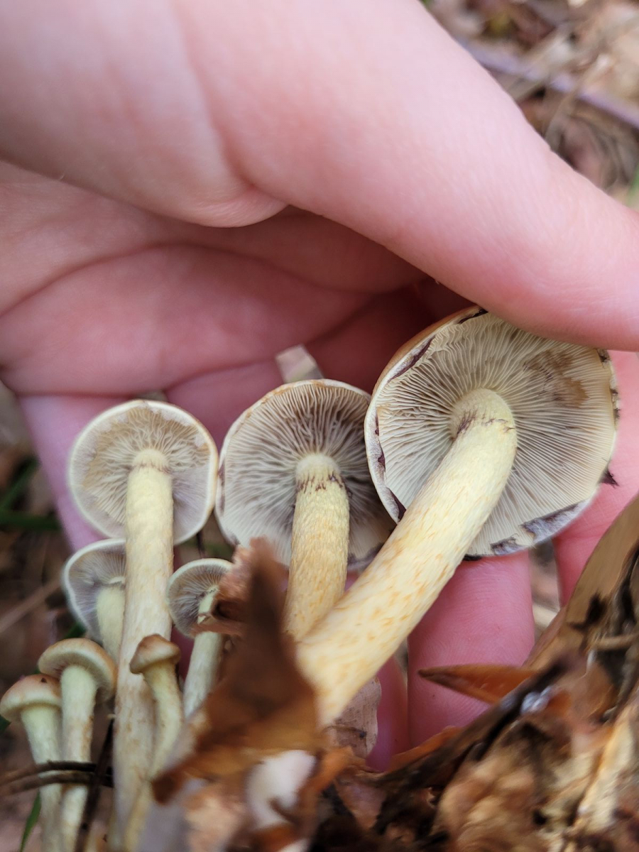 Ich habe gerade noch Fotos aus dem September gefunden, die ich noch nicht bestimmt hatte. Könnt ihr mir hier weiterhelfen? Gefunden auf einem Laubholzstumpf. Schwanke zwischen dem grünblättrigen und rauchblättrigen Schwefelkopf. Vielen lieben Dank!