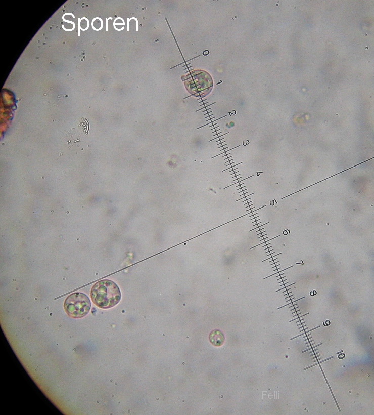 Leider war der Fruchtkörperteil den ich mitnahm nicht reif, so dass ich keine reifen Sporen zur Kontrolle hatte.