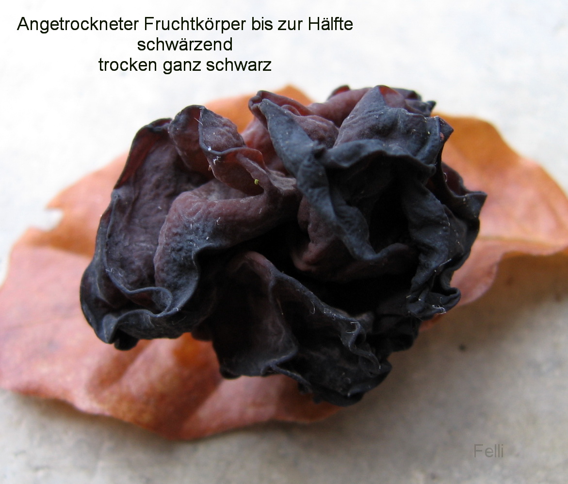 auf Grund der schwärzenden Fruchtkörpern bei Phaeotremella fimbriata.