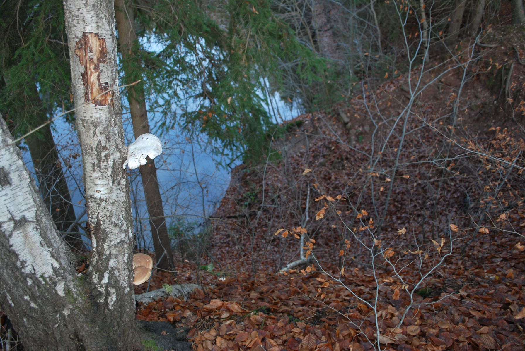 Birkenporling am Steinbruch-Teich, an der Hangkante (näher ran ging nicht...)