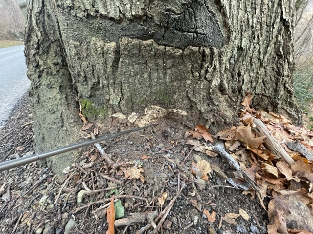 Bild 1: Der Sondierstab verschwindet zu etwa 10 cm in der Fäule des Stammes. Aber auch nur an der Stelle bzw. unterhalb, wo ich den FK entfernt habe.
