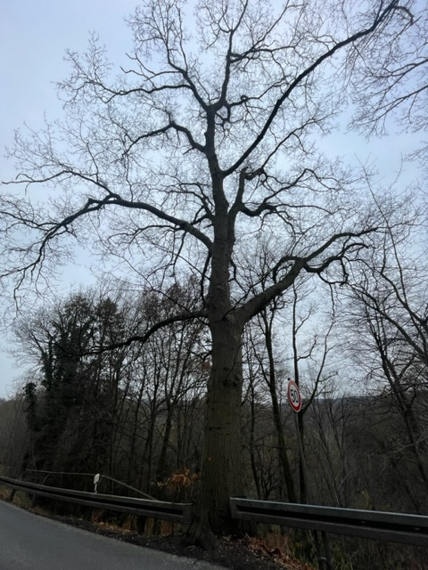 Wenn man sich die Rinde oberhalb des Pilzes anguckst und auch die Struktur um den Pilz herum, sieht man, das es hier eine Verletzung des Baumes gegeben haben muss. Das kann dann natürlich ein Einfallstor für Parasitäre Organismen sein. Die Leitplanke spricht für die Nähe einer Straße, was für ungünstige Lebenssituationen steht. Abgase, Streusalz, Leichtflüssigkeiten (Öl, Benzin) ggf. Hundeurin etc. Das kann alles einen Baum zusätzlich schwächen und würde die Folgen der beschriebenen Verletzung sicherlich verschlimmern.