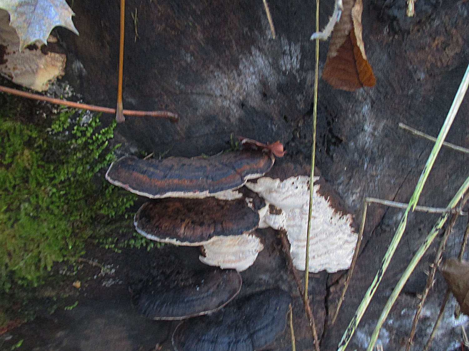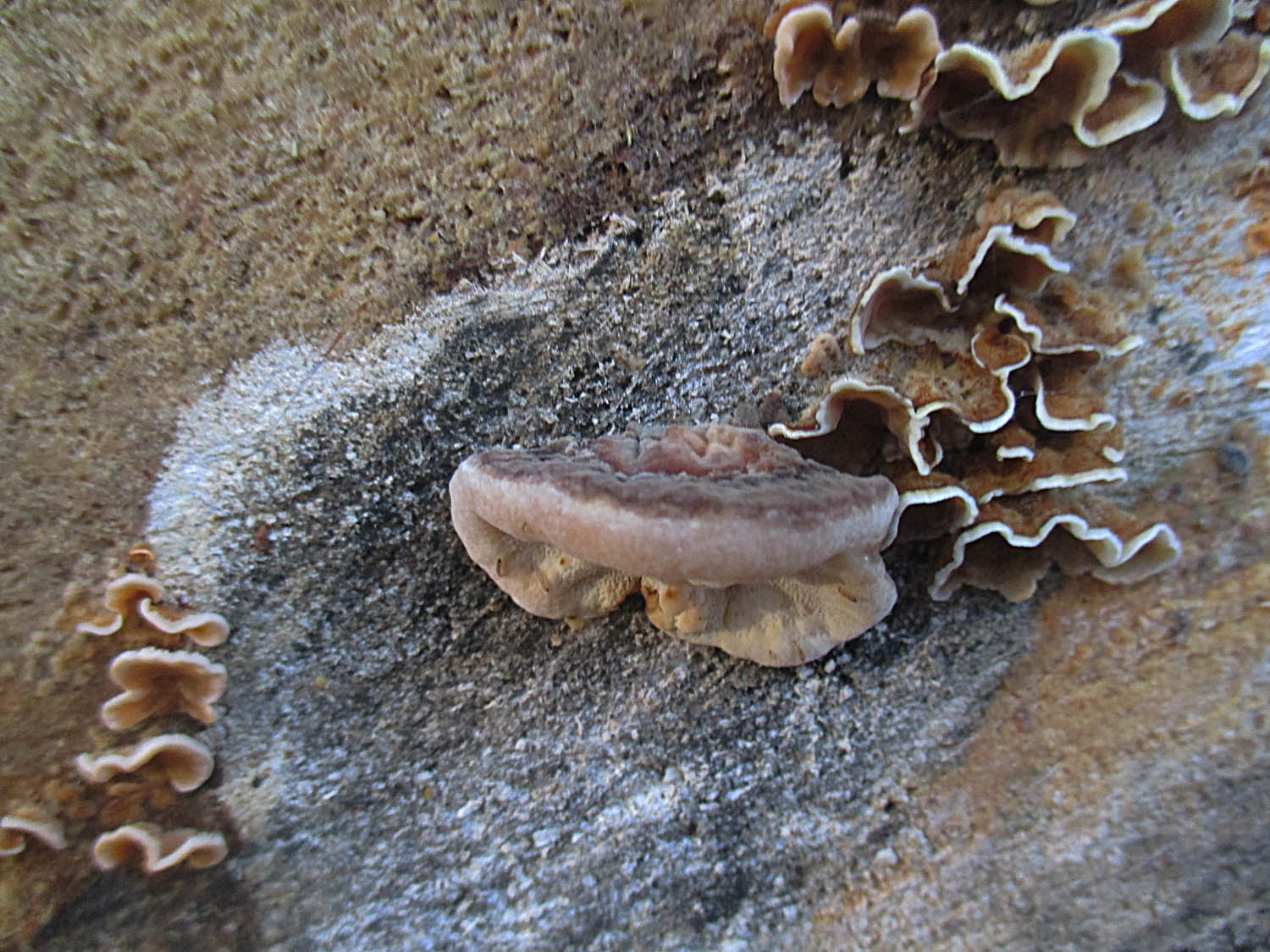 Mich deuchte, daß du mit "Phellinus" den klobigeren fruchtkörper in der Mitte meinst (auf Bild 3), und mit "???" die Schichtpilze drum herum.